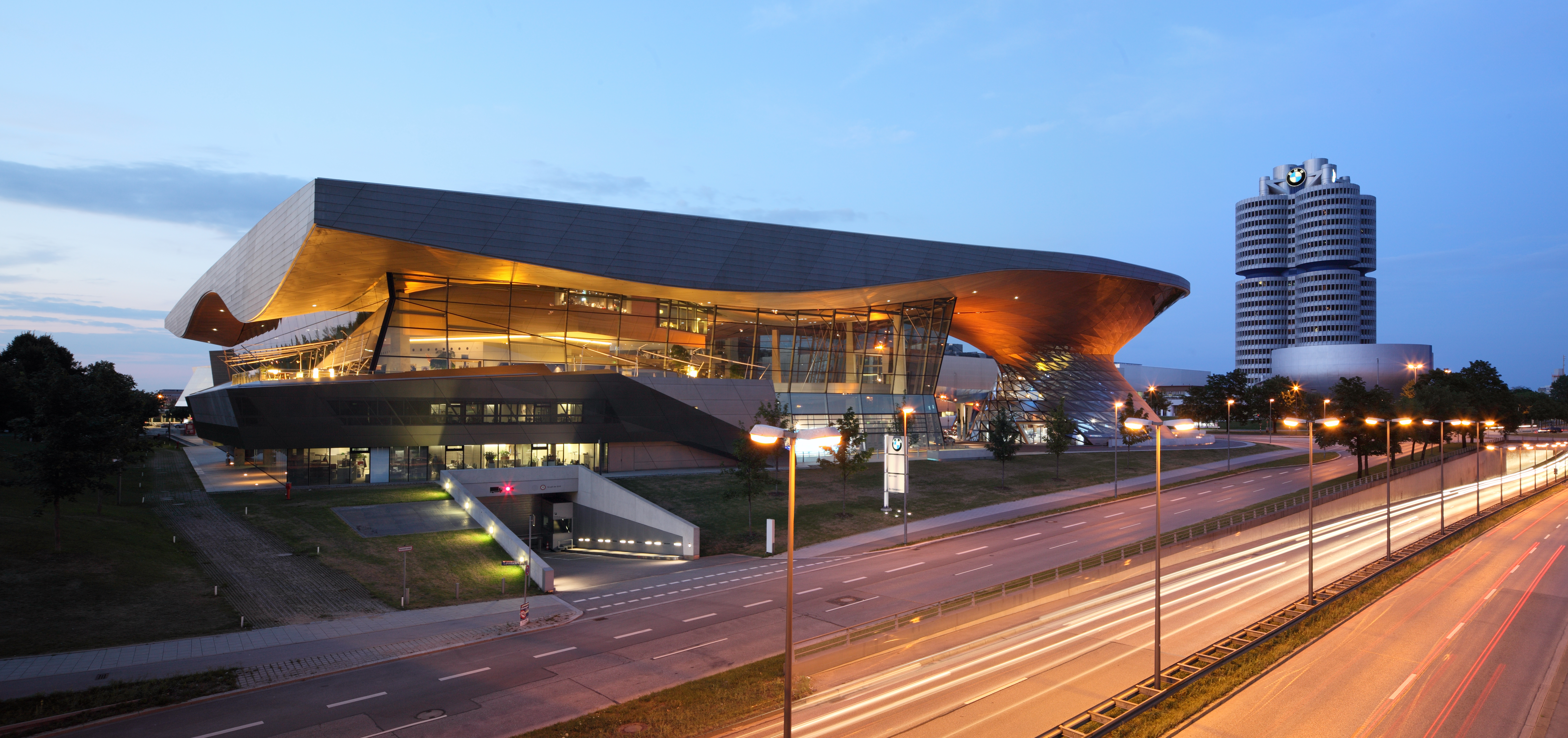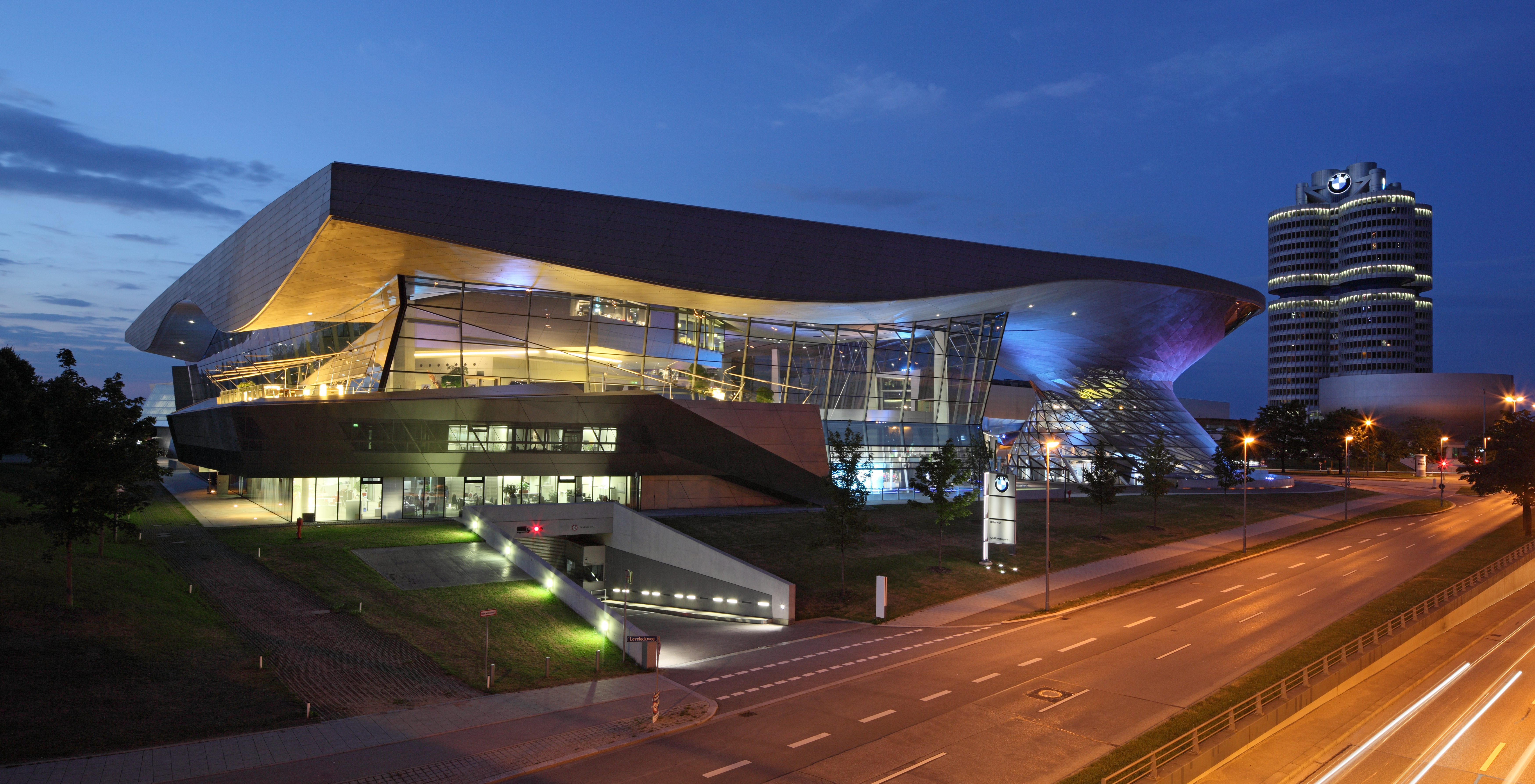 BMW Welt - Exterior view (south side): Night shot (03/2011)