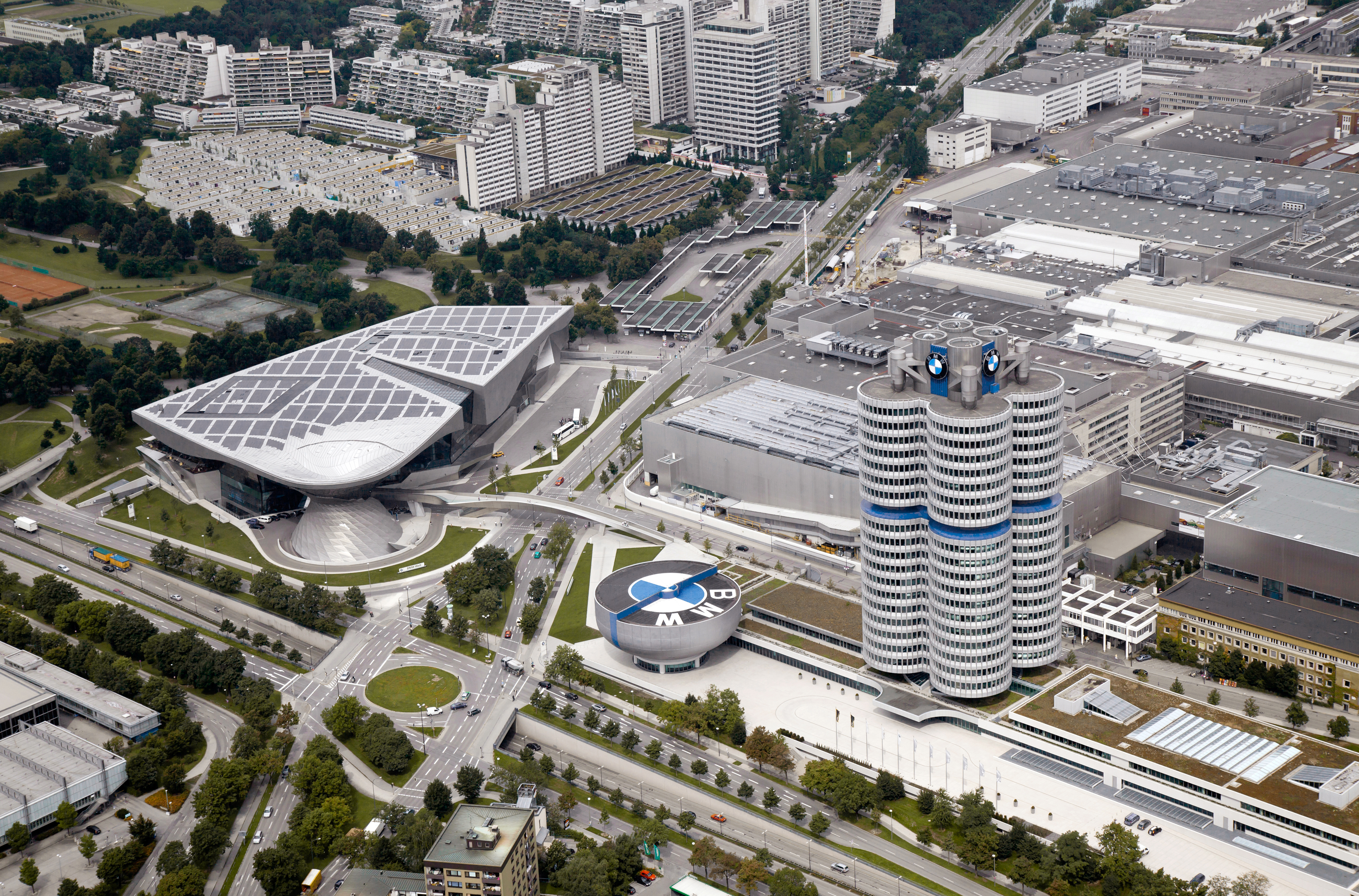 BMW Welt, BMW Museum, BMW Plant Munich and Corporate Headquarters - Aerial view (03/2011)