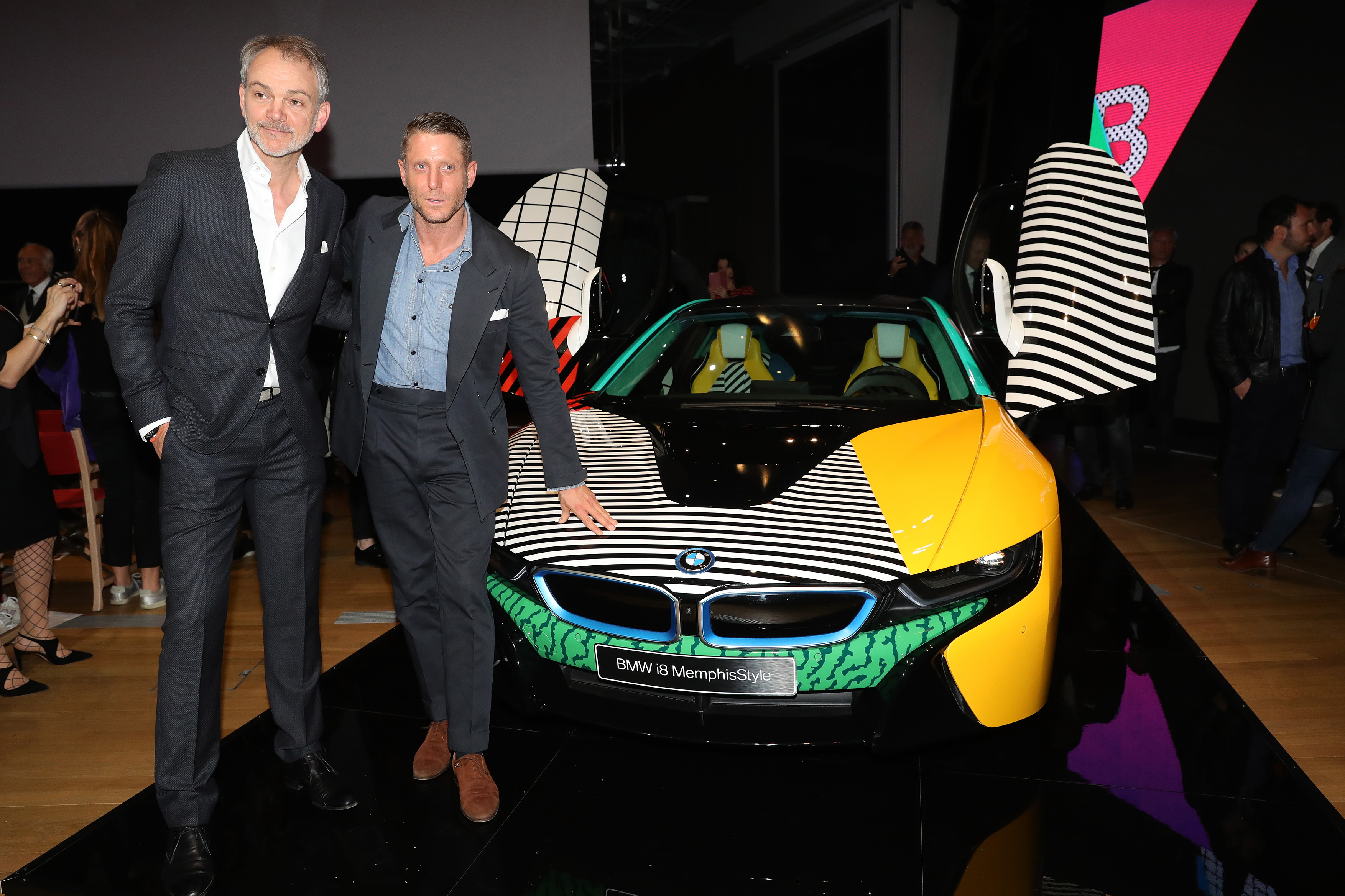 Adrian van Hooydonk and Lapo Elkann (from left) at the BMW i MemphisStyle World Premiere; BMW i8. (04/17)