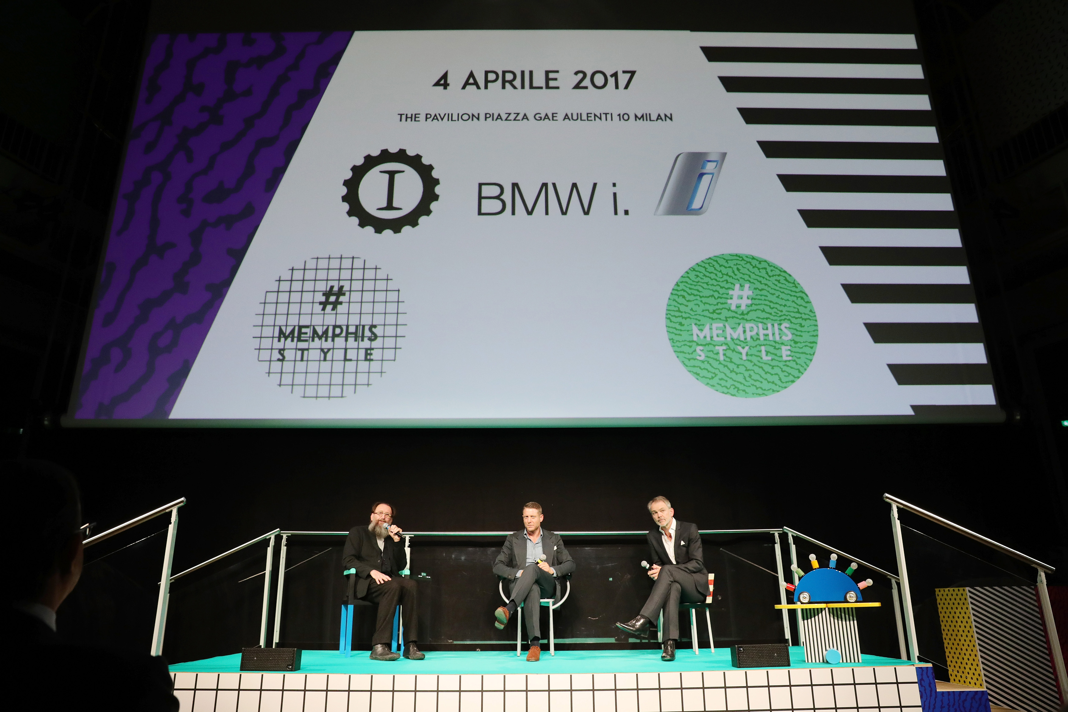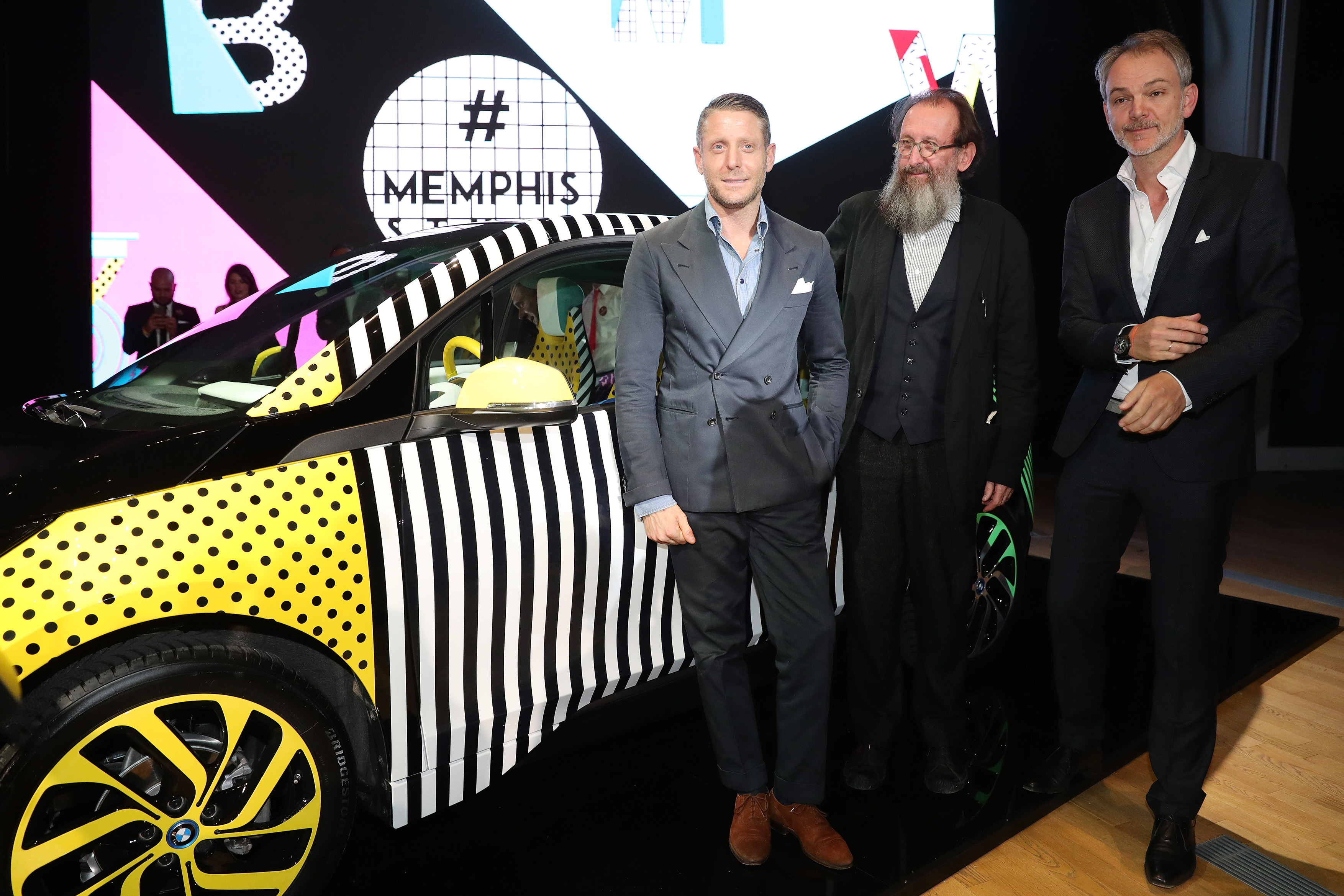 Michele de Lucchi, Adrian van Hooydonk and Lapo Elkann (from left) at the BMW i MemphisStyle World Premiere. (04/17)