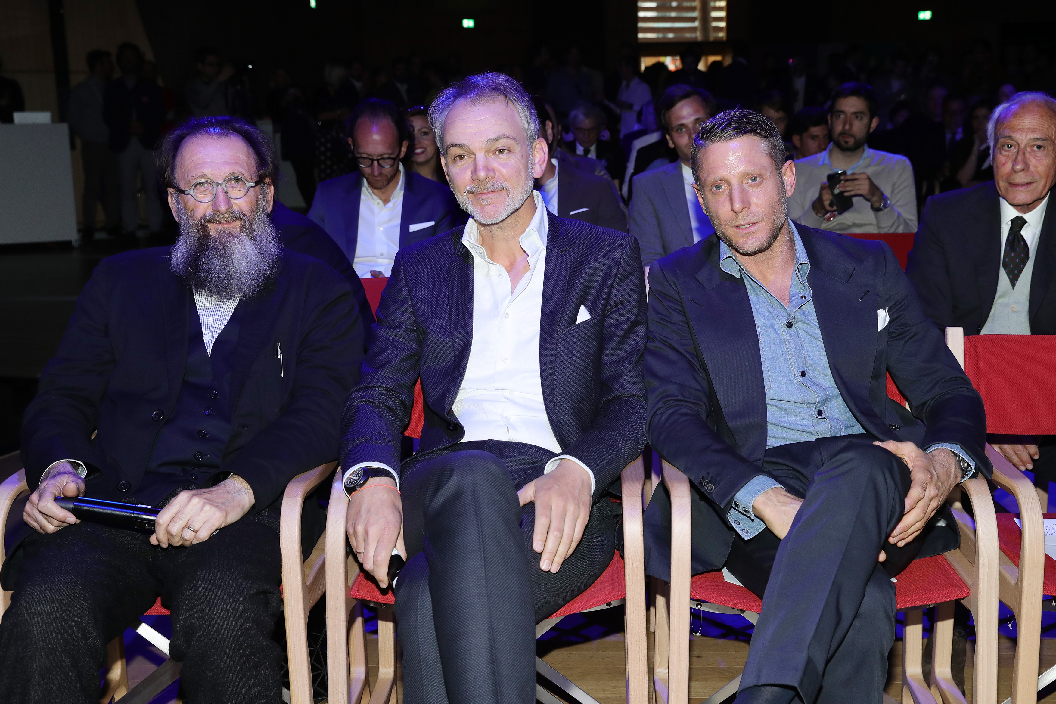 Lapo Elkann, Michele de Lucchi and Adrian van Hooydonk (from left) at the BMW i MemphisStyle World Premiere. (04/17)