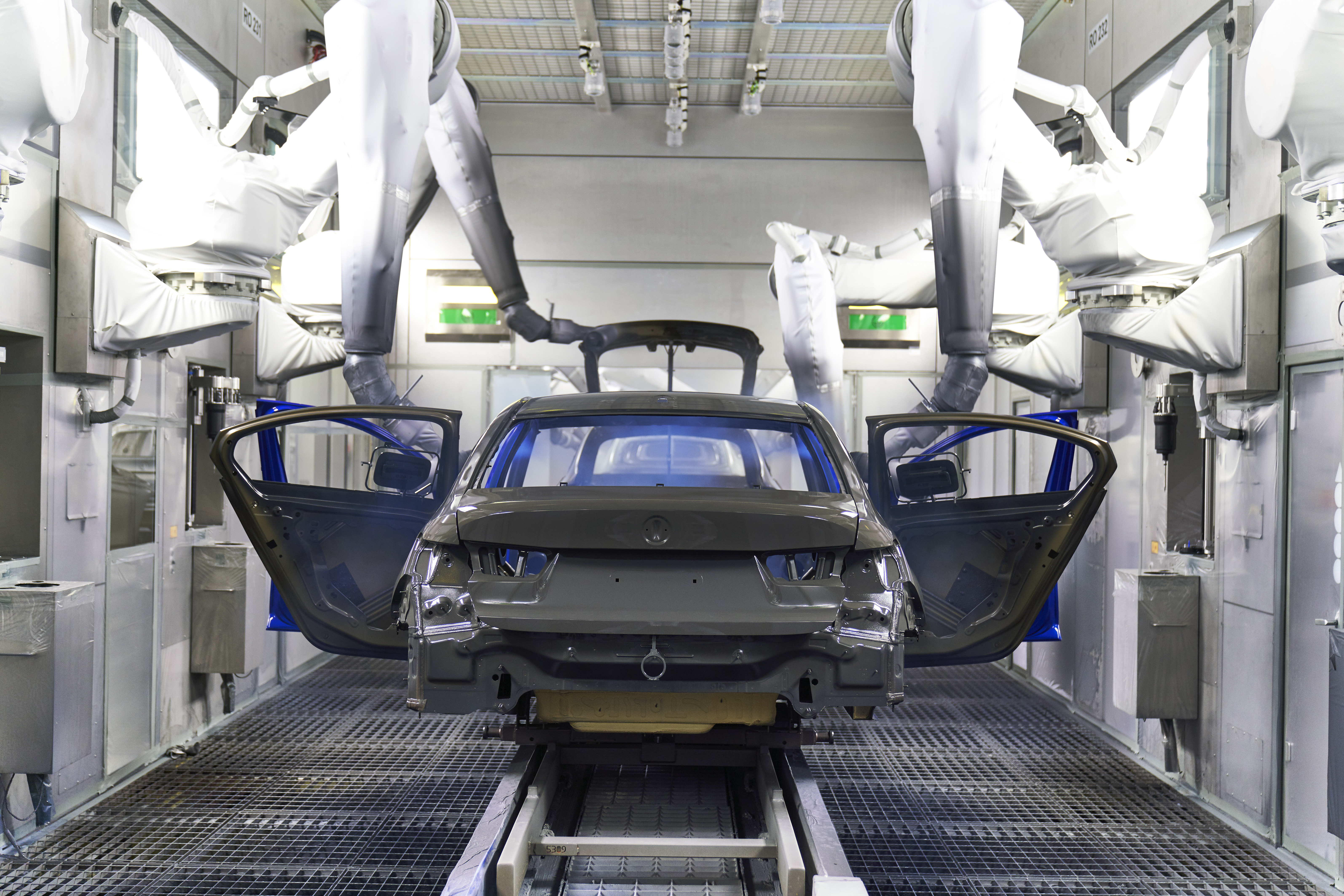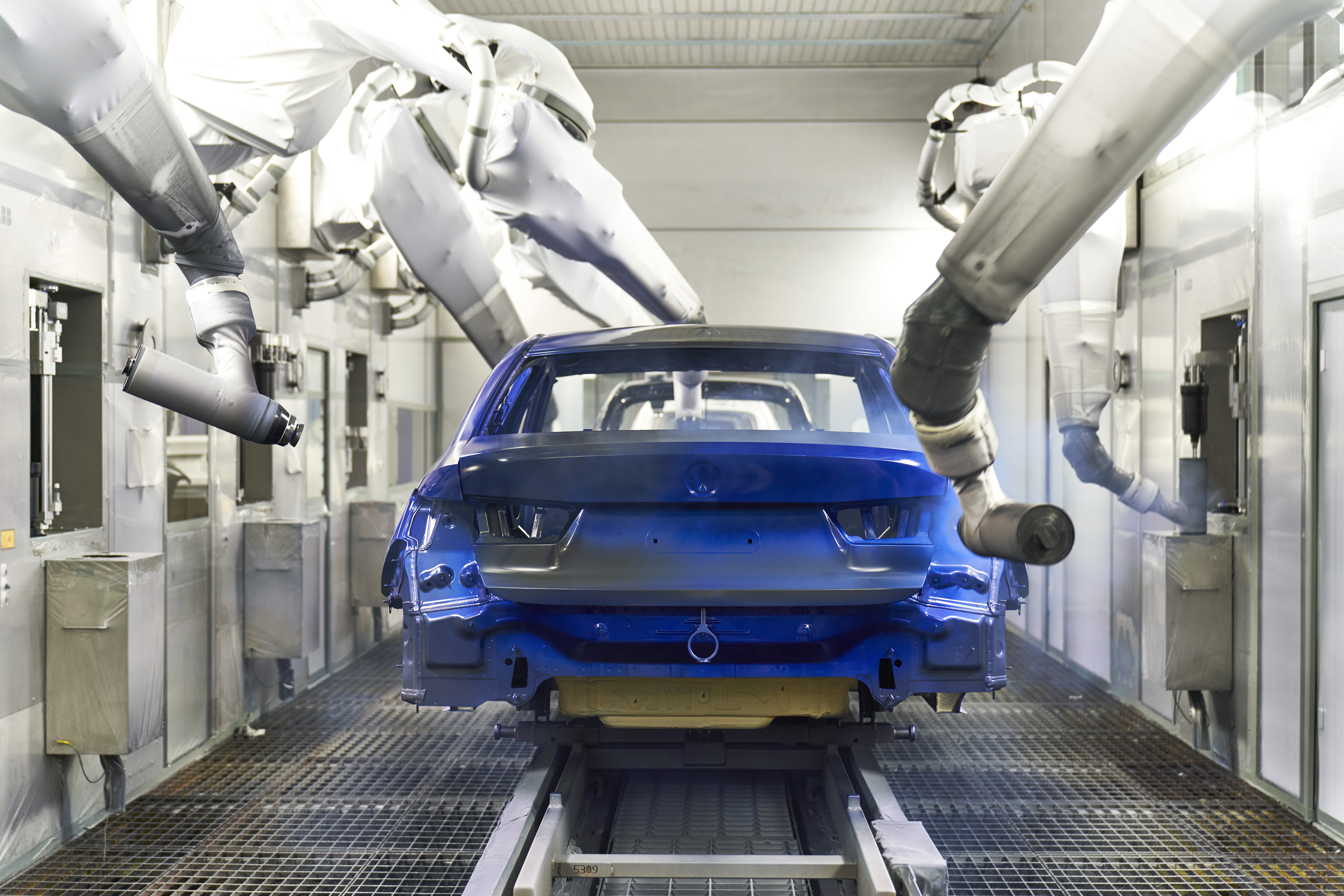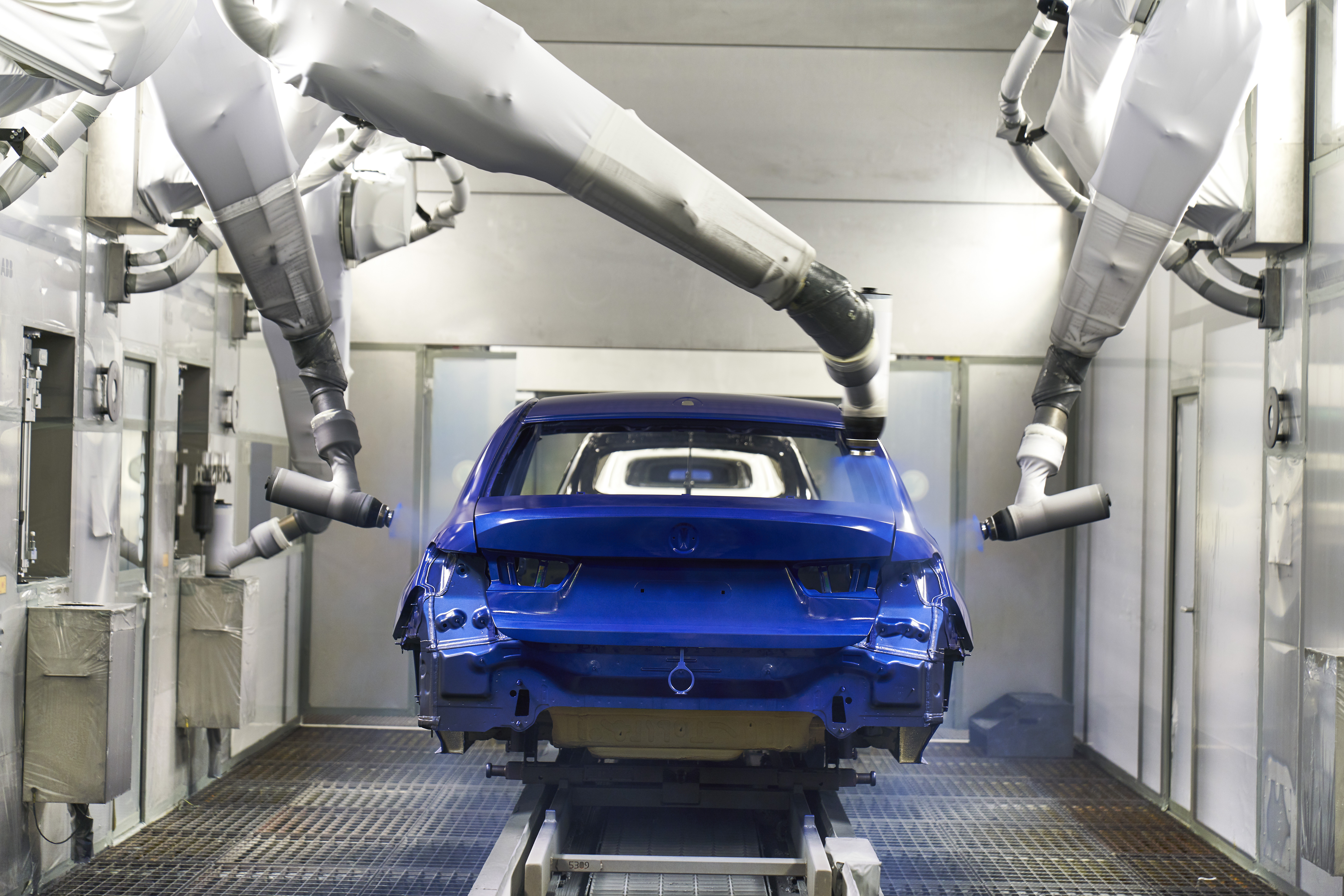 Application of base coat to the all-new BMW 3 series at paint shop, BMW Group Plant Munich (11/2018)