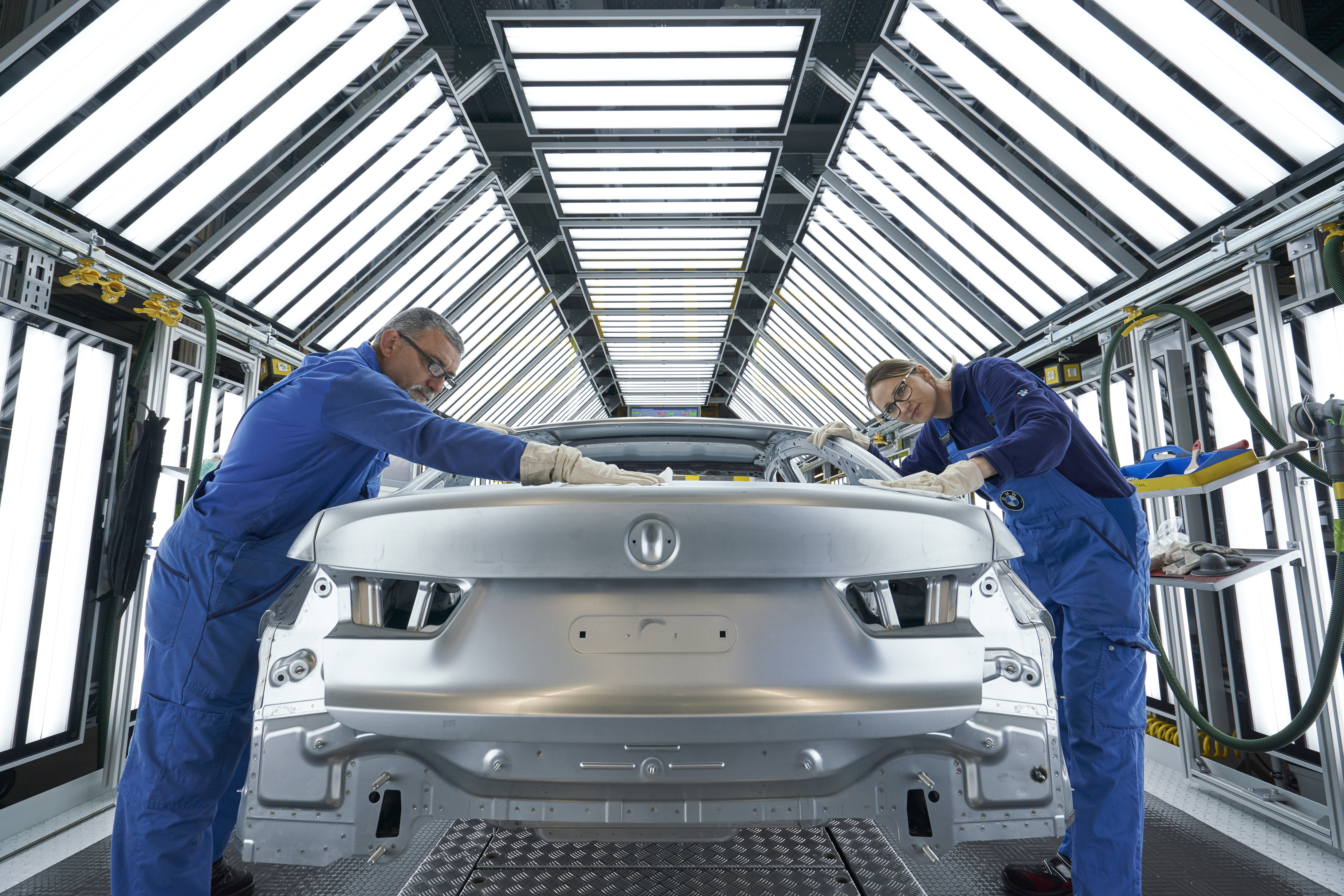 Final quality checks of the body-in-white. The all-new BMW 3 series at paint shop, BMW Group Plant Munich (11/2018)