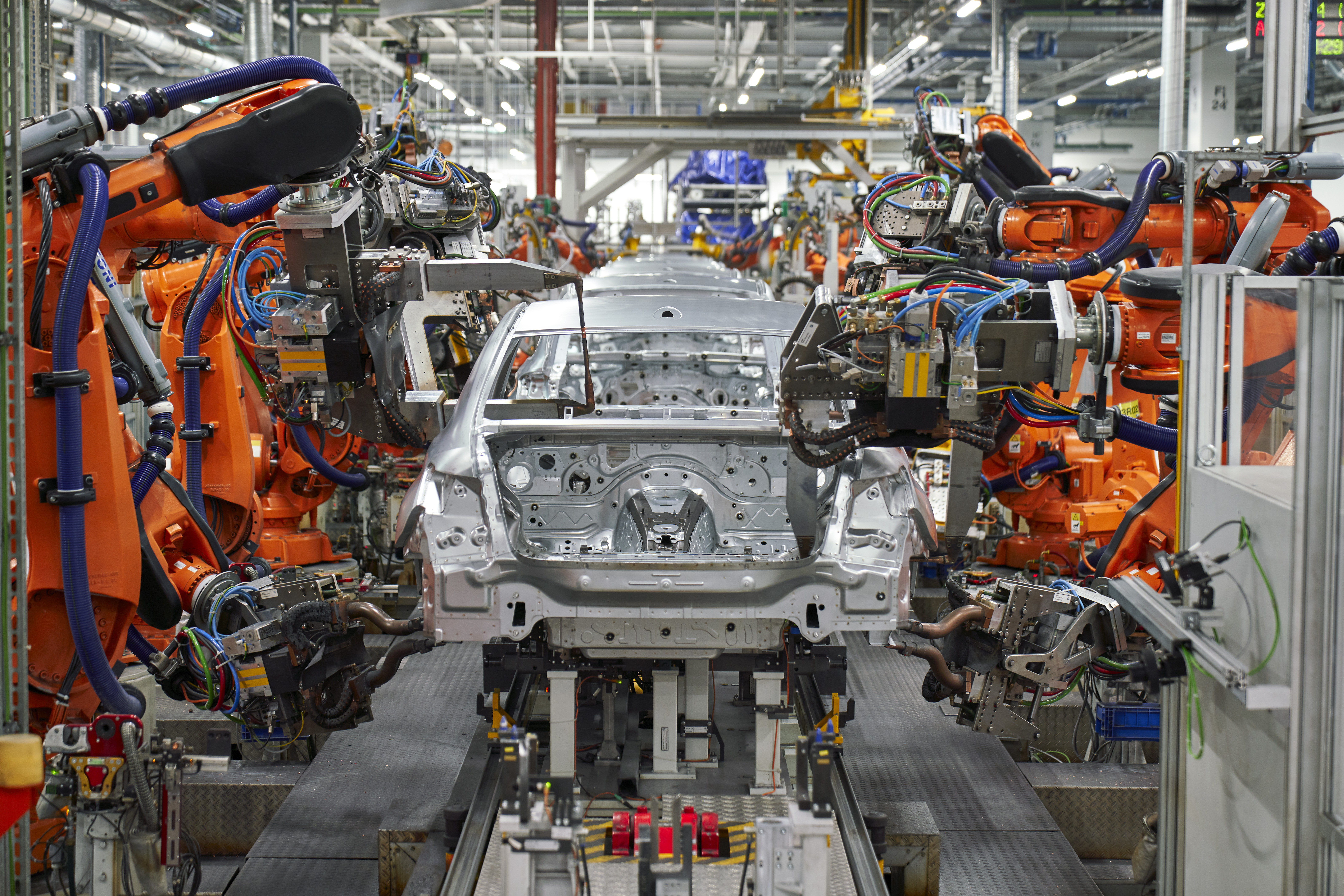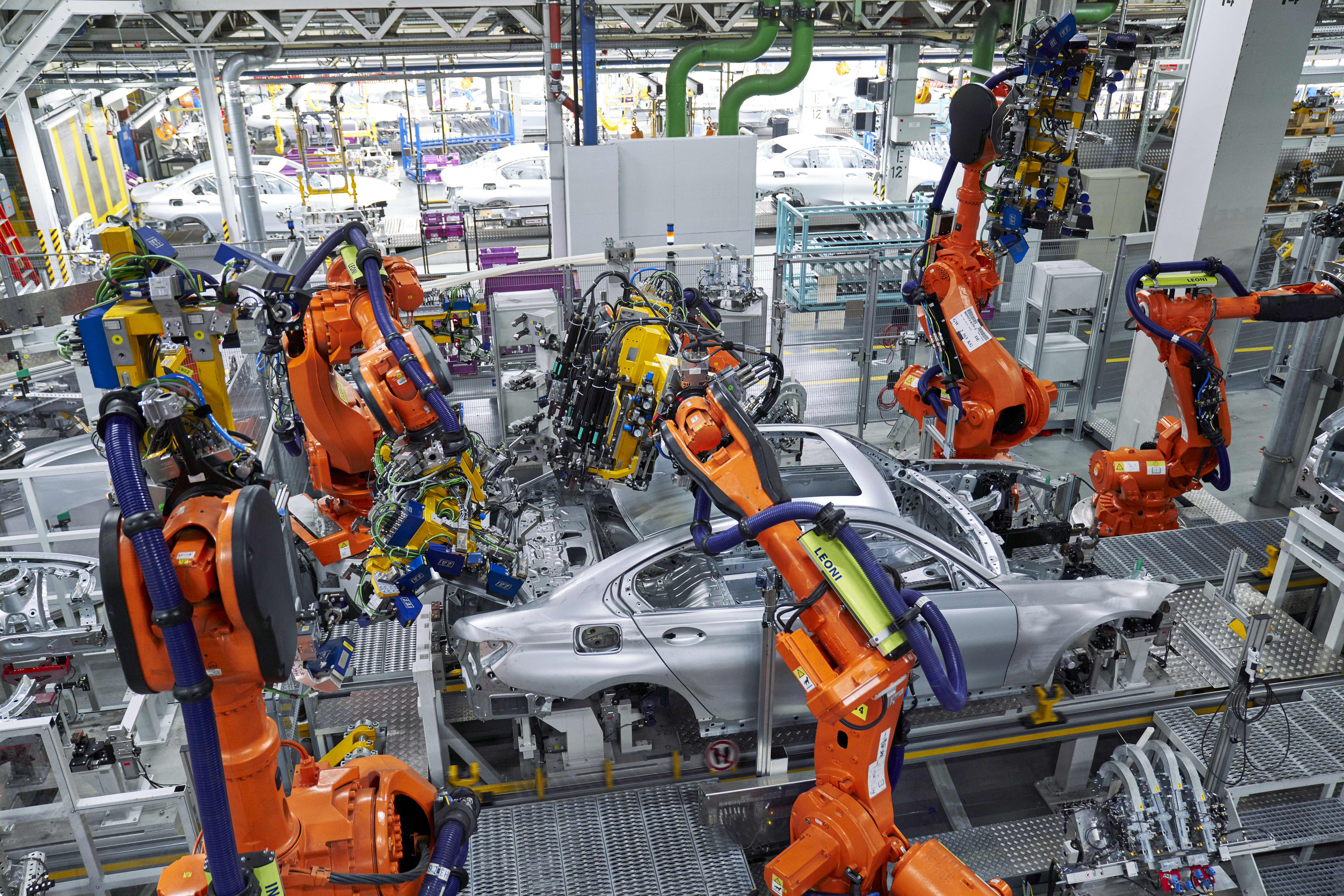 Welding car body of the all-new BMW 3 series at body shop, BMW Group Plant Munich (11/2018)