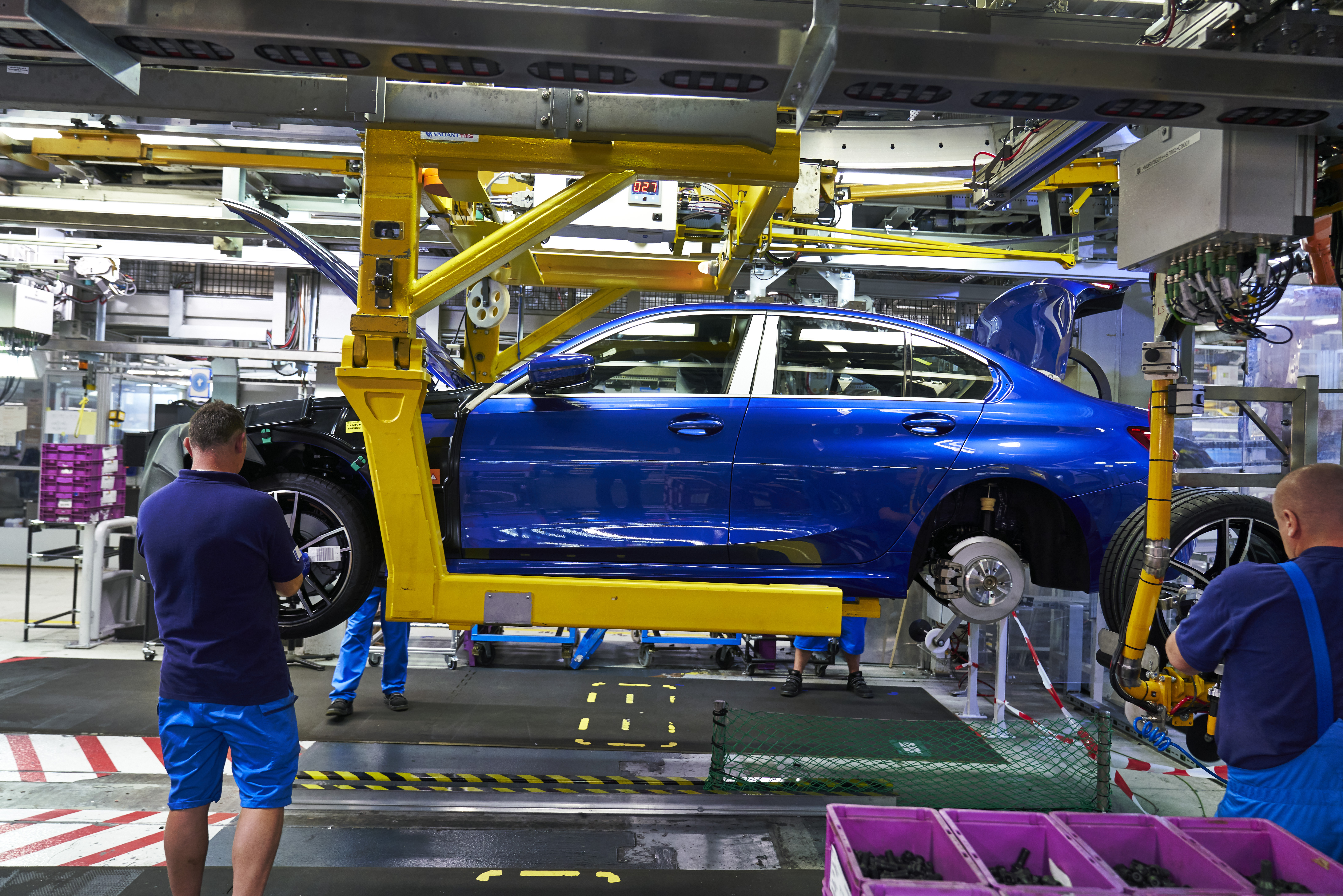 Assembly of the all-new BMW 3 series, fixation of wheels, BMW Group plant Munich (11/2018)