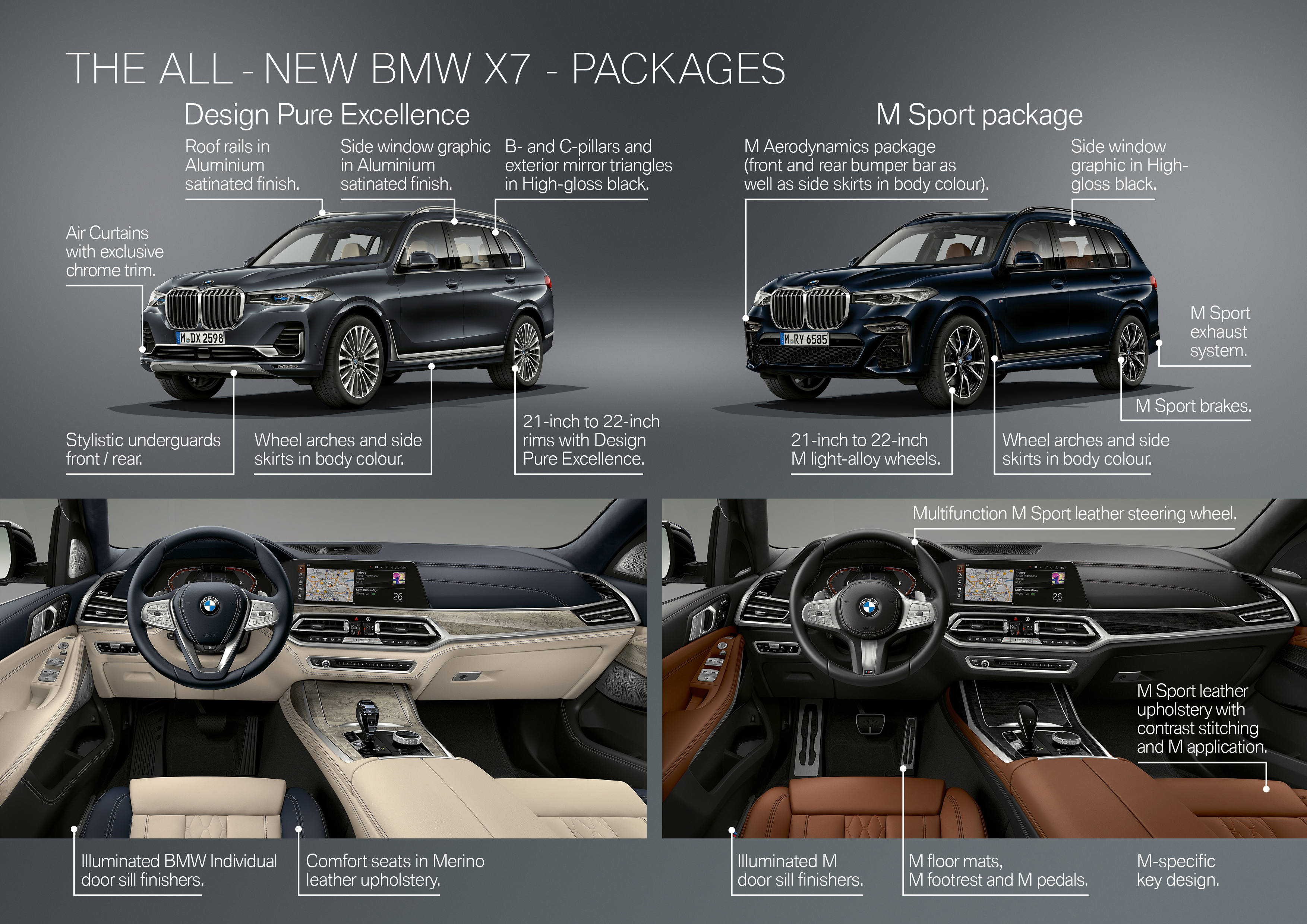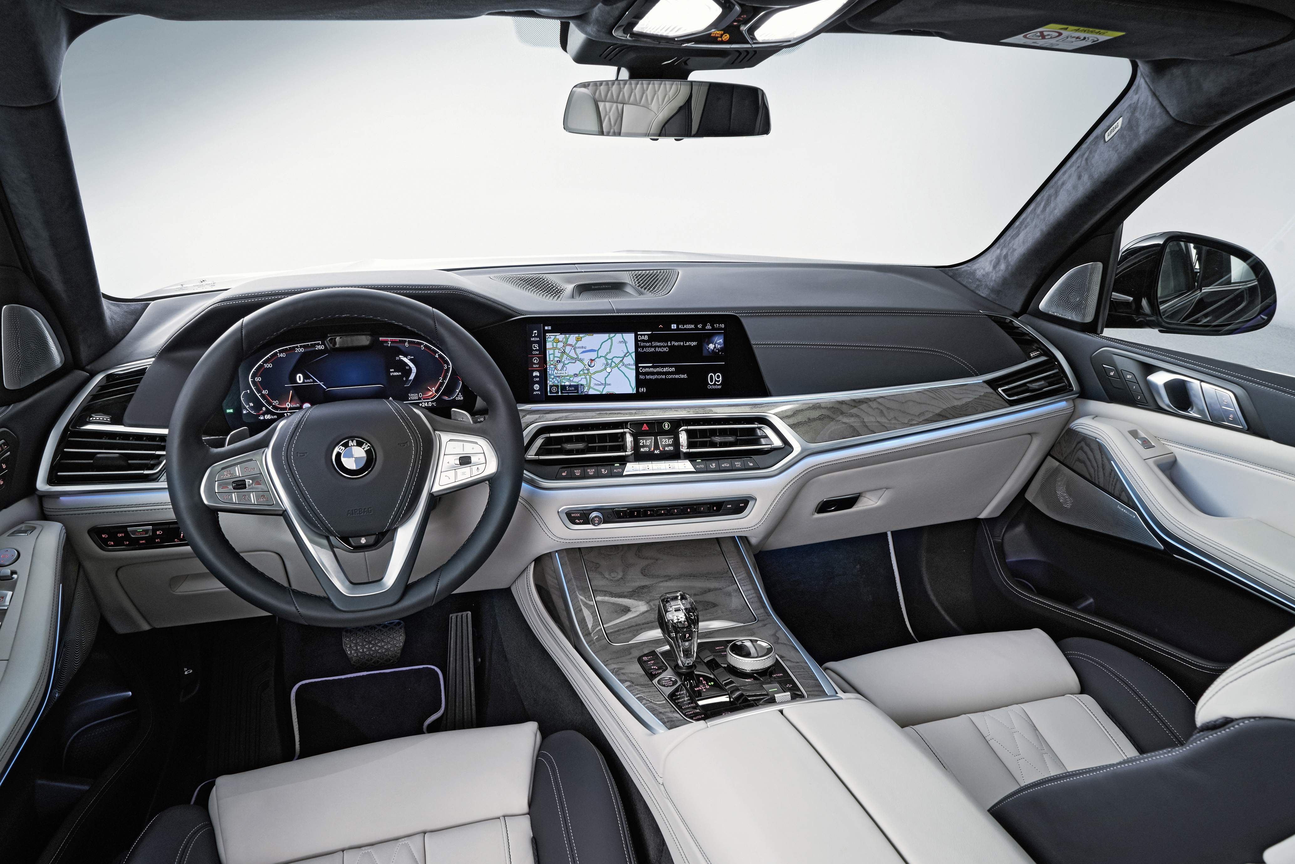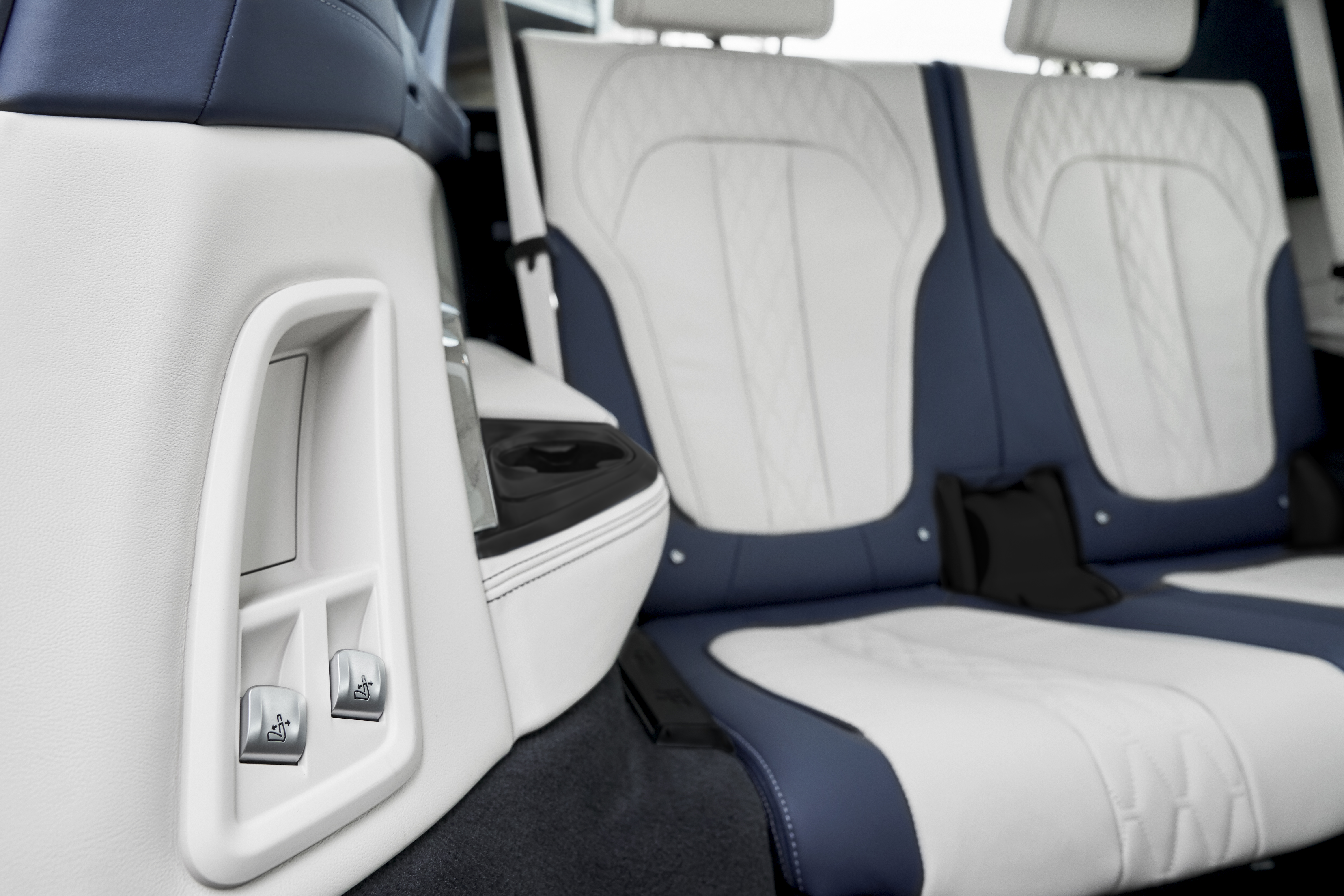 The first-ever BMW X7 with BMW Individual full leather Merino Ivory White/Night Blue (10/2018).