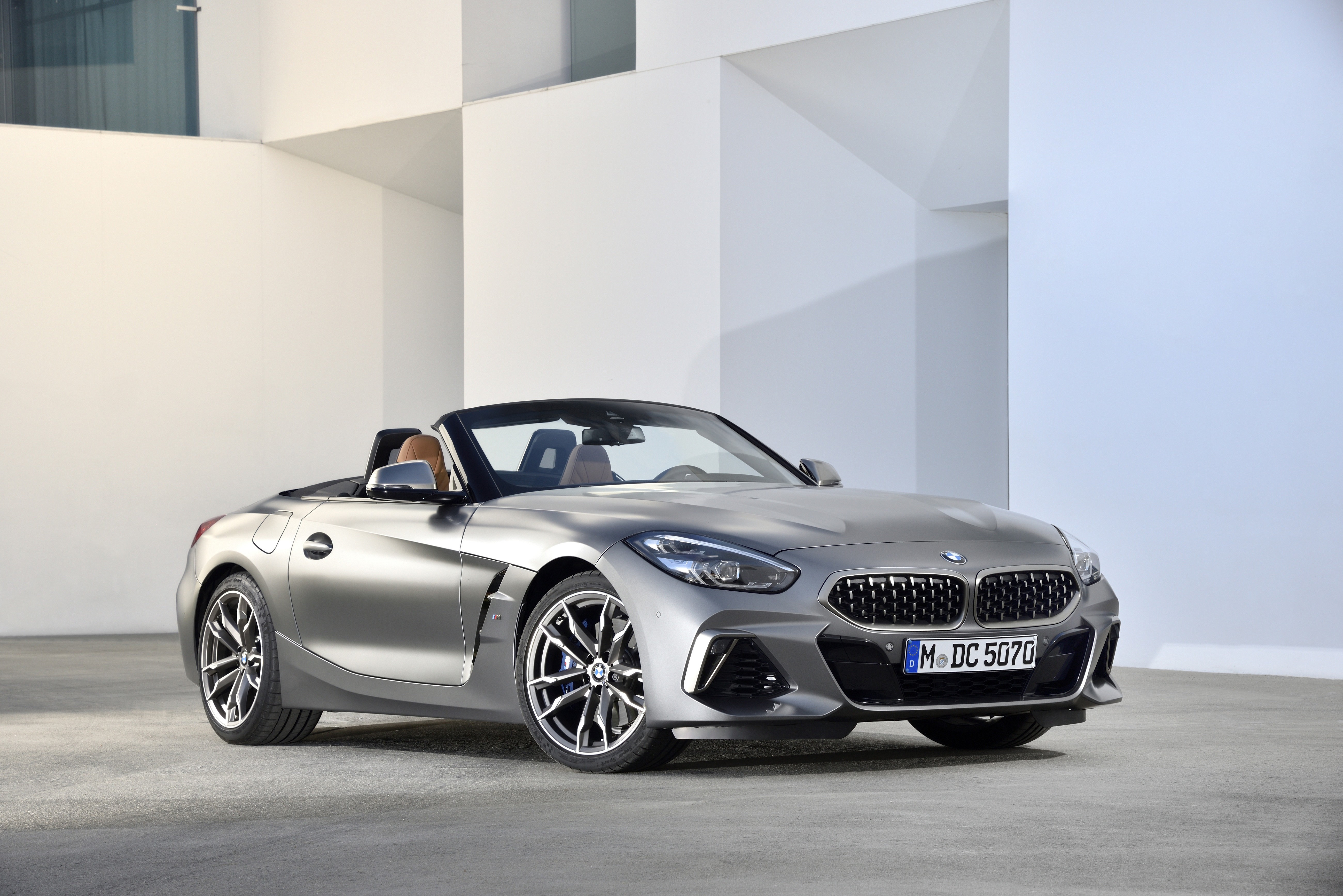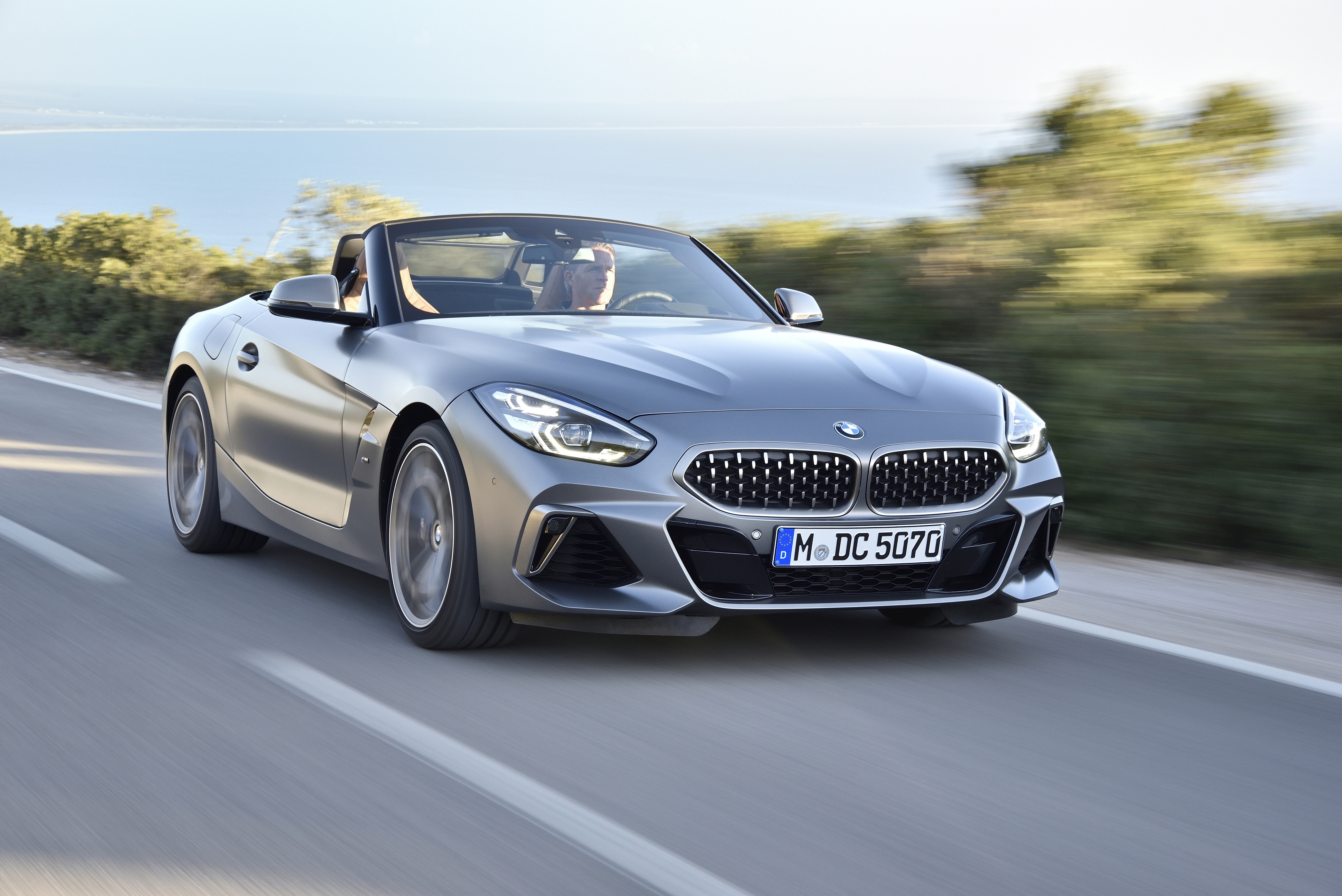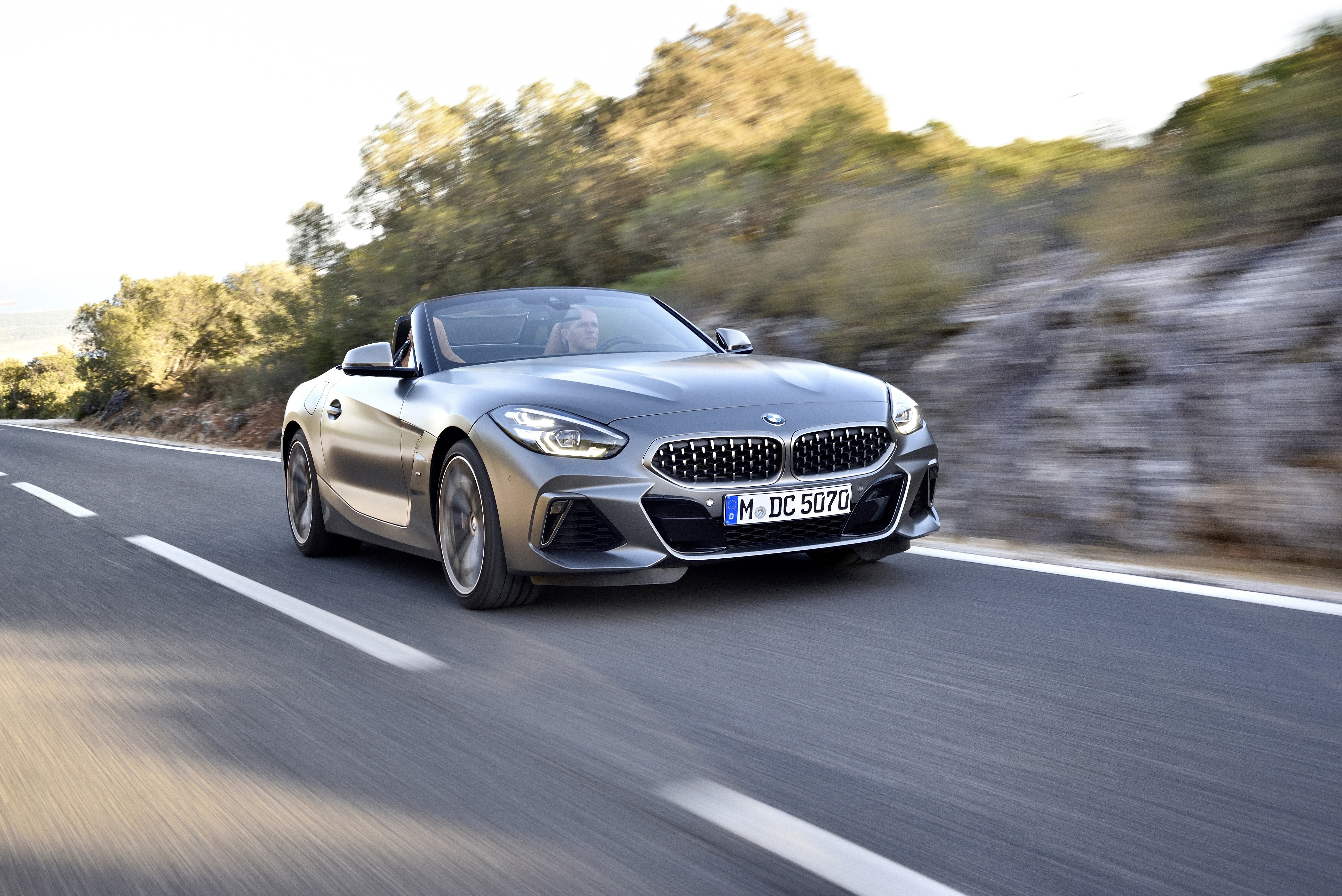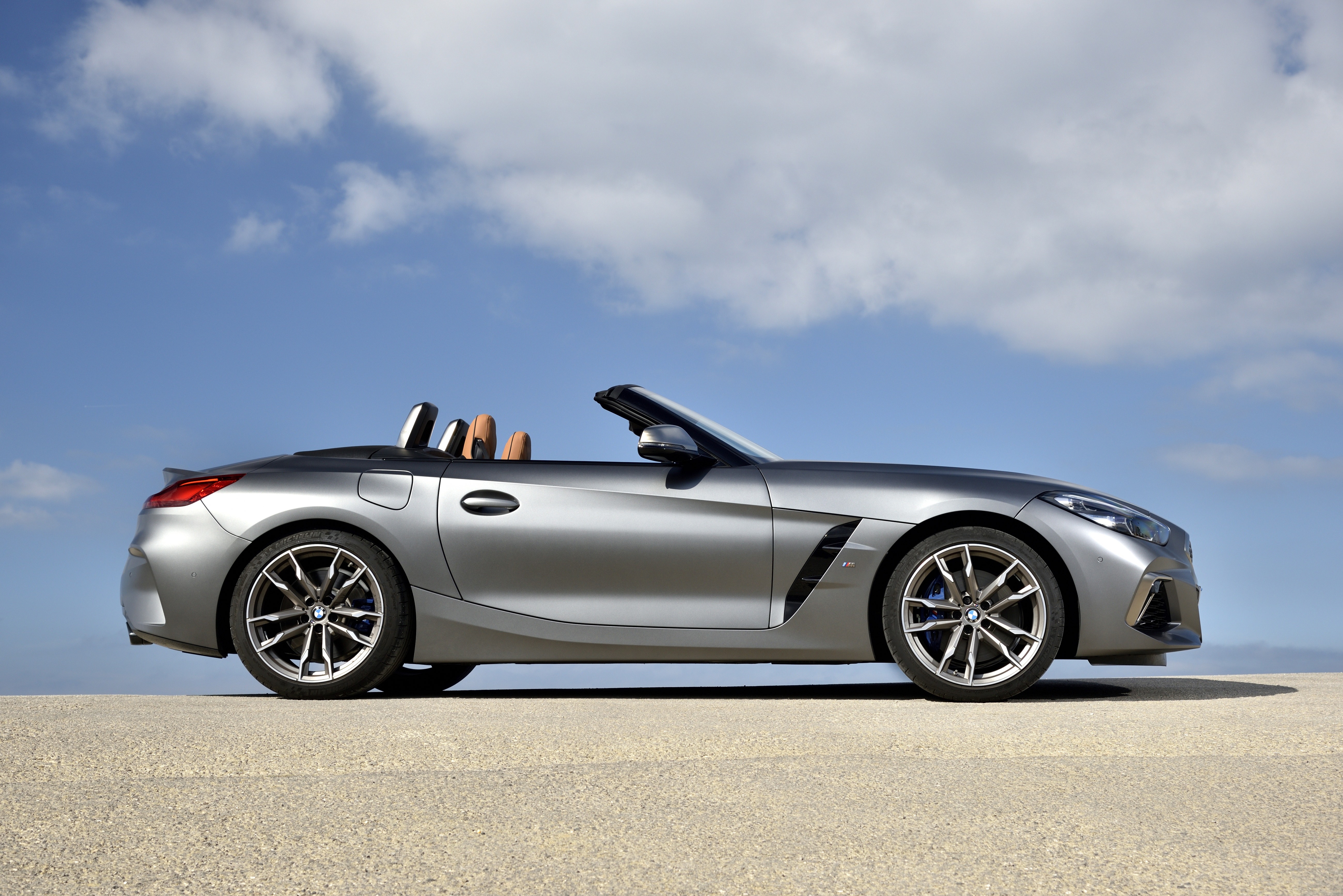 The new BMW Z4 M40i Roadster in color Frozen Grey II metallic and 19" M light alloy wheels Double-spoke style 800 M Bicolour - Lissabon / Sintra (11/ 2018).