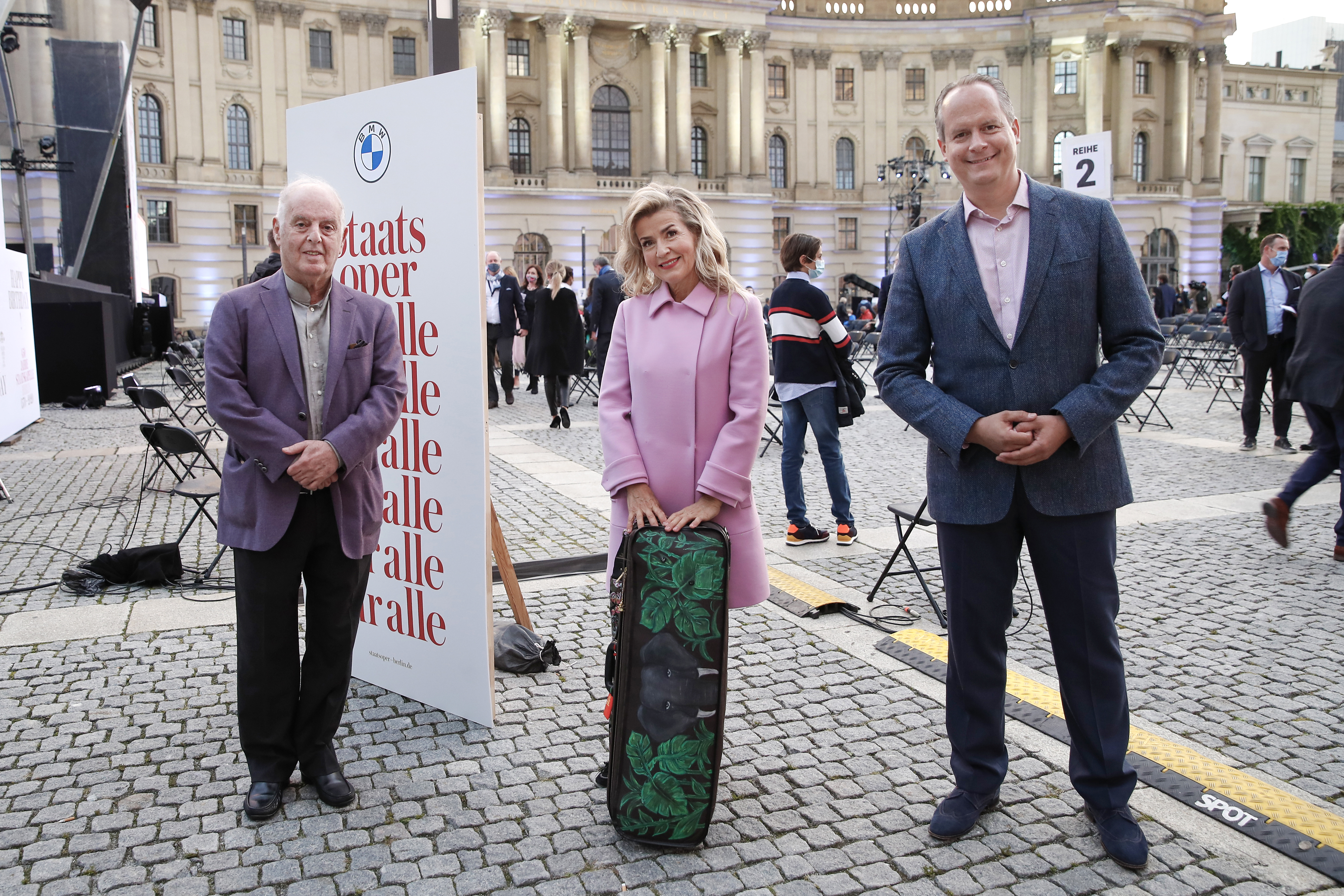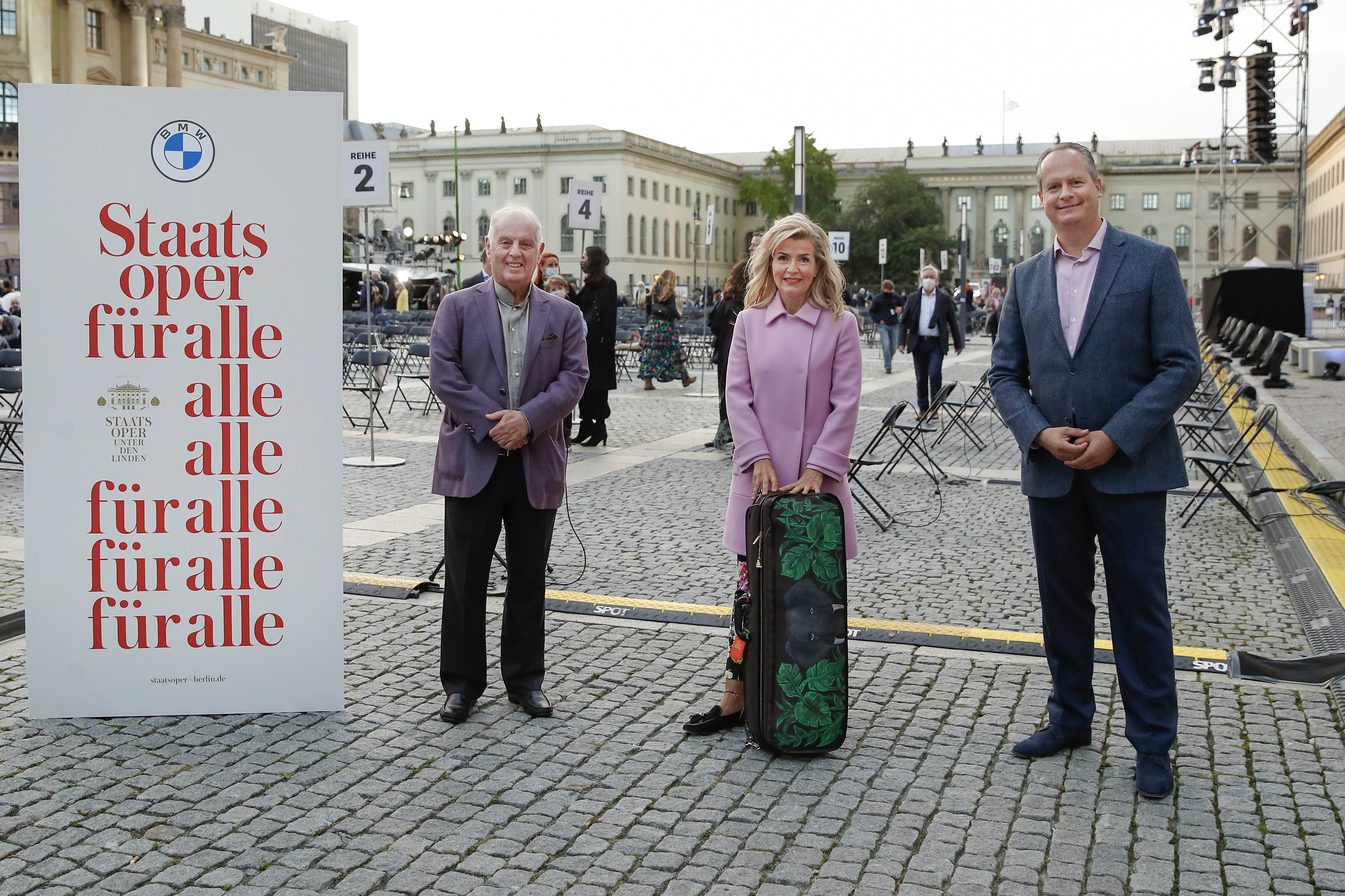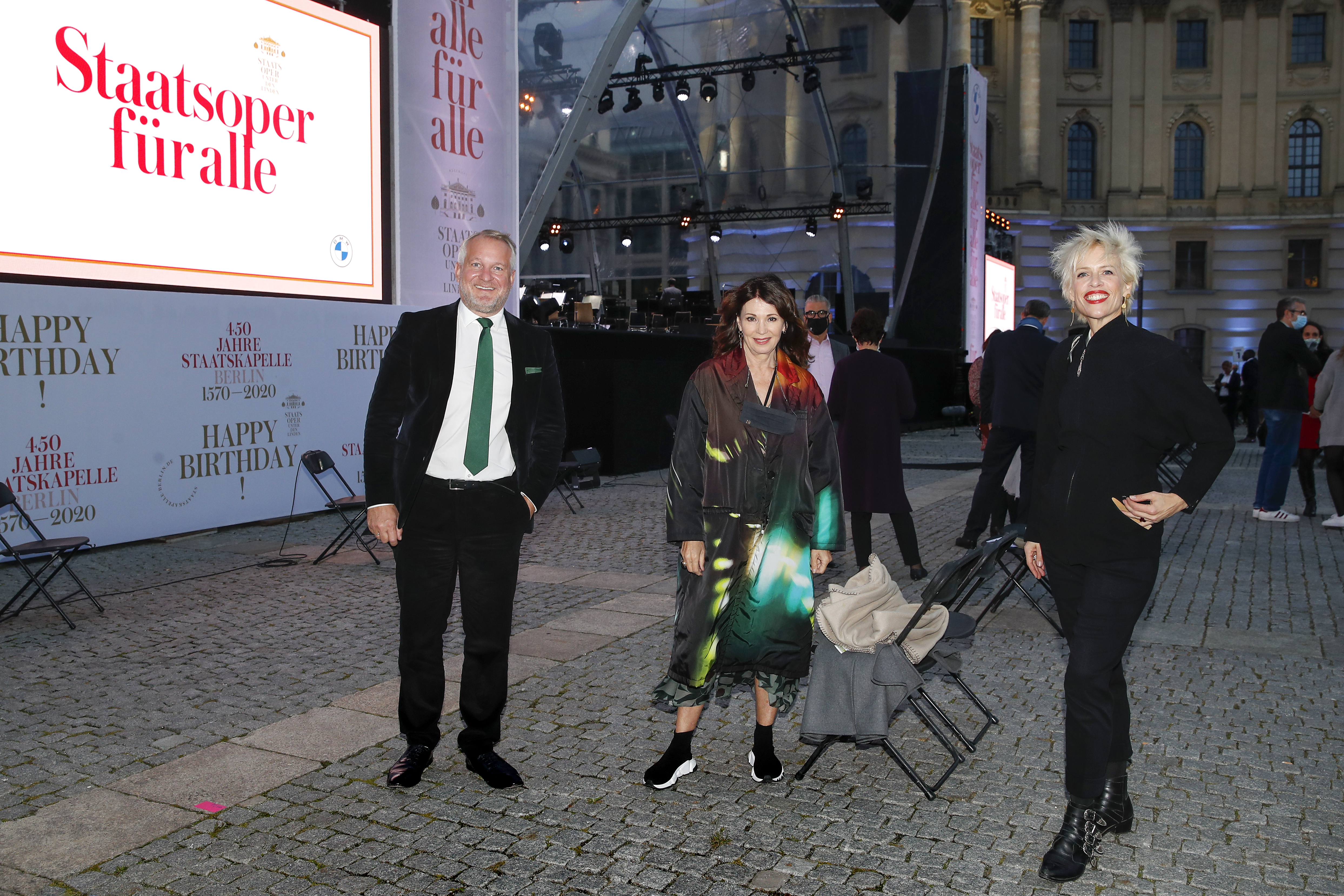 “State Opera for All” 2020: Prof. Dr Thomas Girst (Head of BMW Group Cultural Engagement), Iris Berben (actress), Katja Eichinger (author) (f.l.t.r.) at the Bebelplatz in Berlin on September 6, 2020. Photo: Franziska Krug/Getty Images (09/2020)