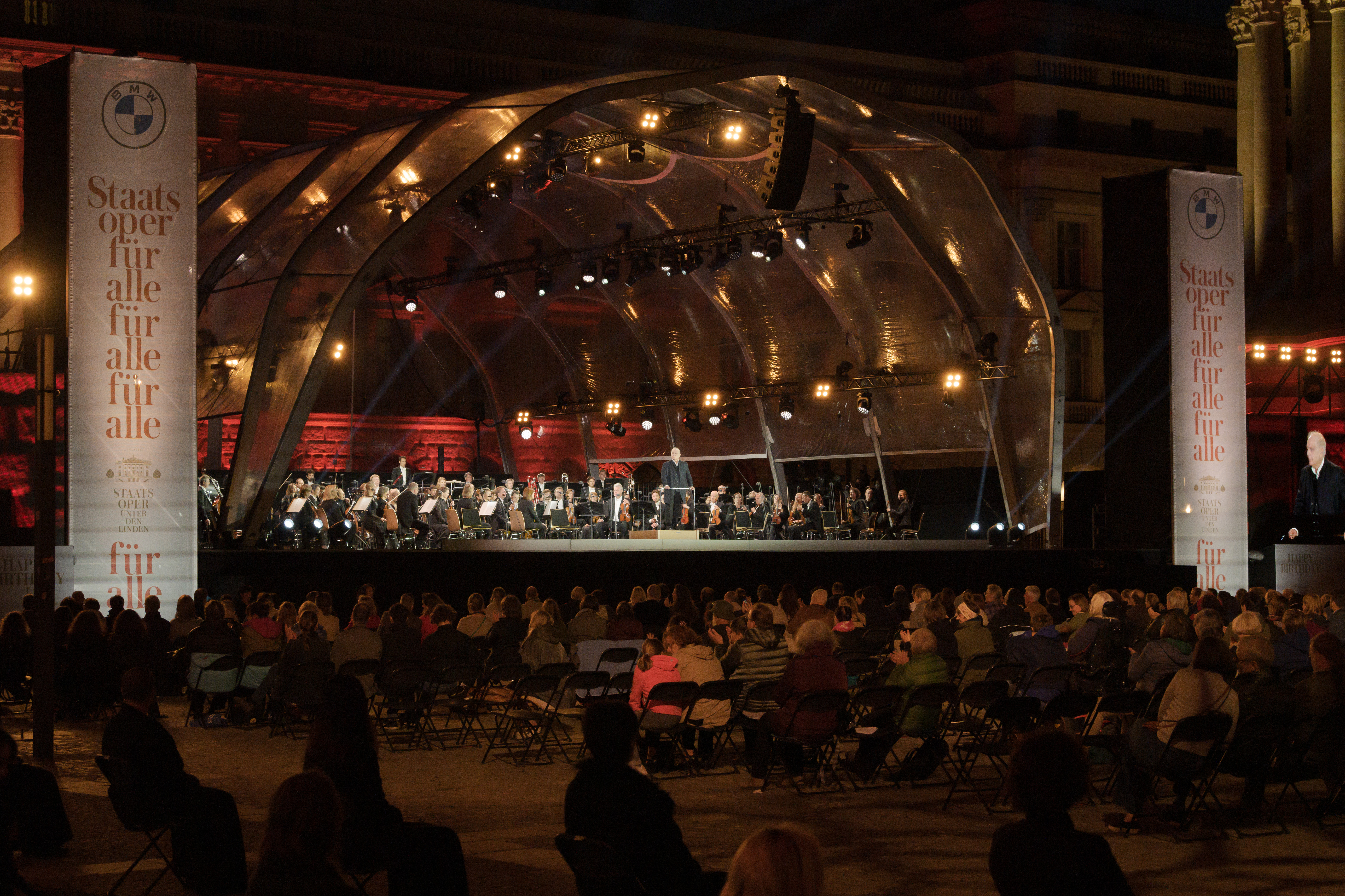 “State Opera for All” 2020: Live-concert with Daniel Barenboim, the Staatskapelle Berlin as well as Anne-Sophie Mutter, Julia Kleiter, Waltraud Meier, Andreas Schager, René Pape and the Staatsopernchor at the Bebelplatz in Berlin on September 6, 2020. Photo: Peter Adamik (09/2020)