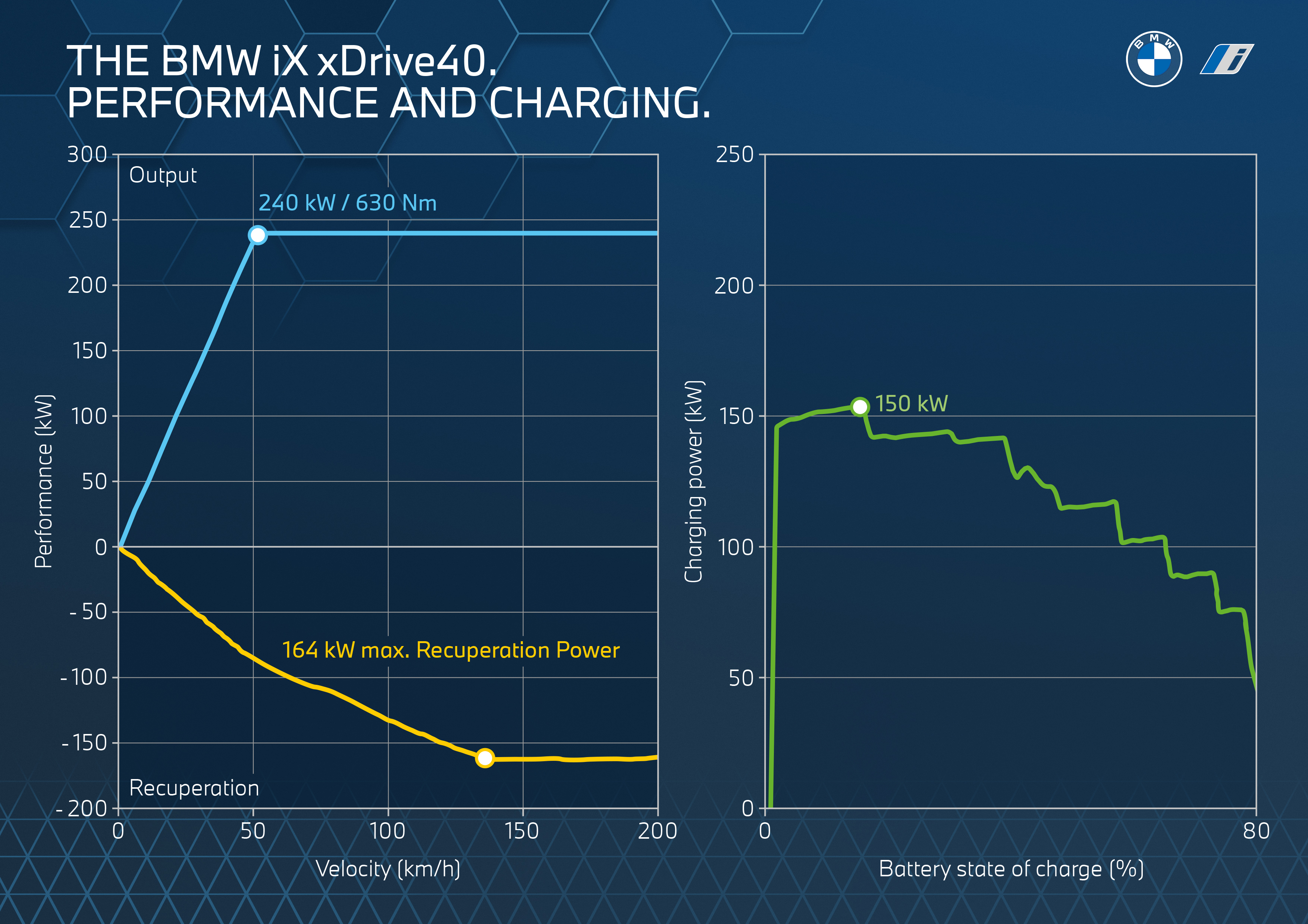 BMW iX xDrive40: Combined power consumption: 22.5 - 19.4 kWh/100km WLTP; CO2 emissions combined: 0 g/km.