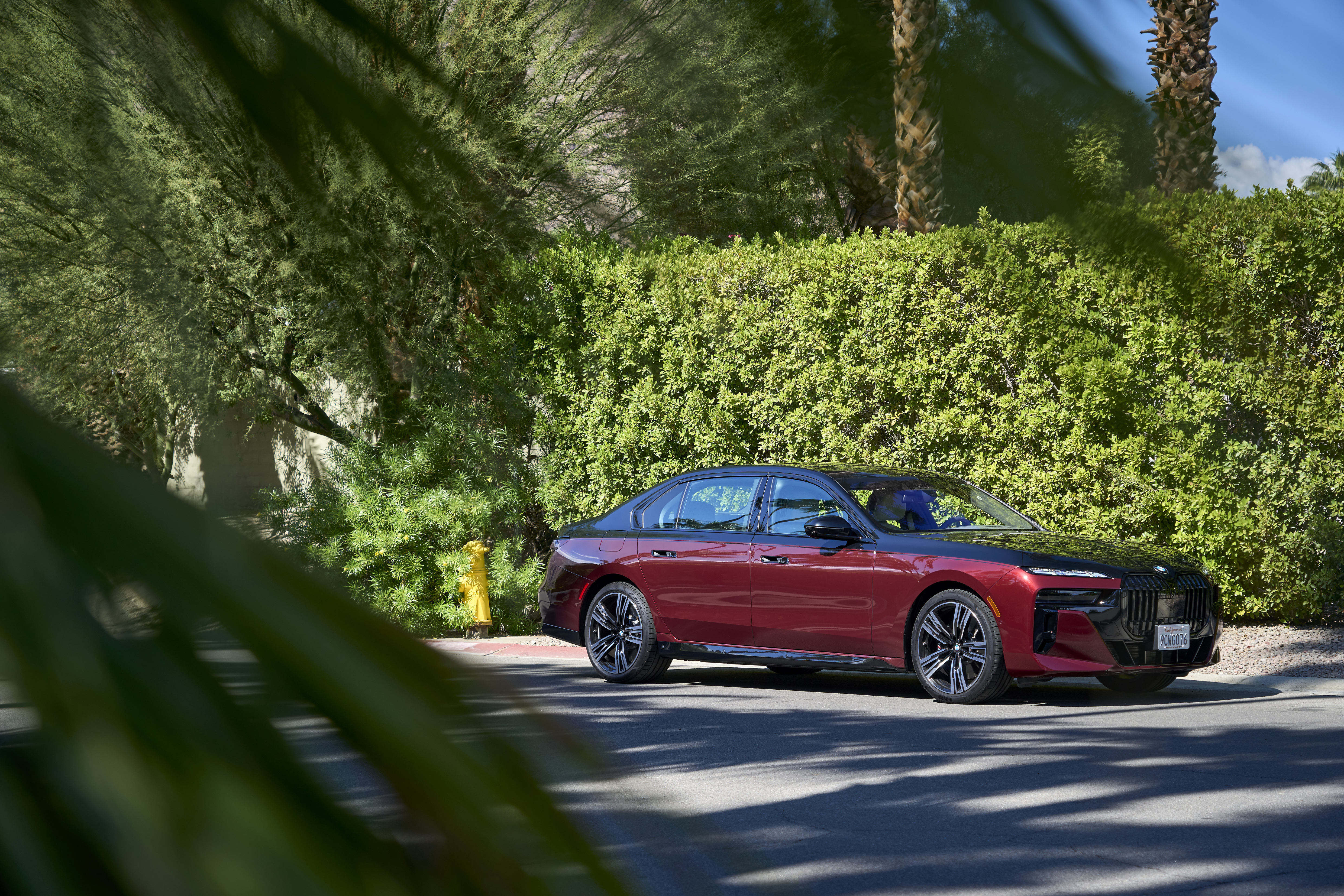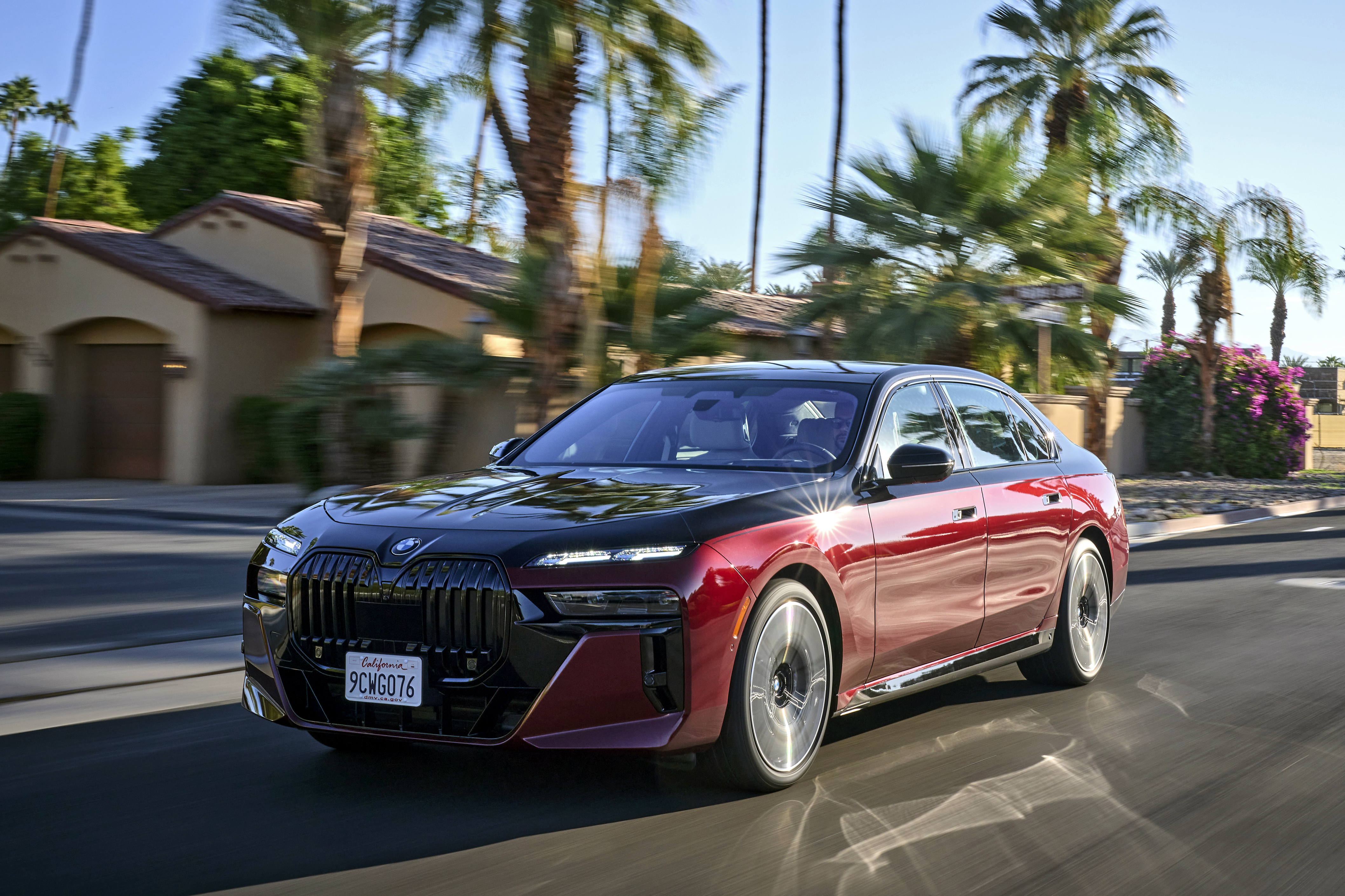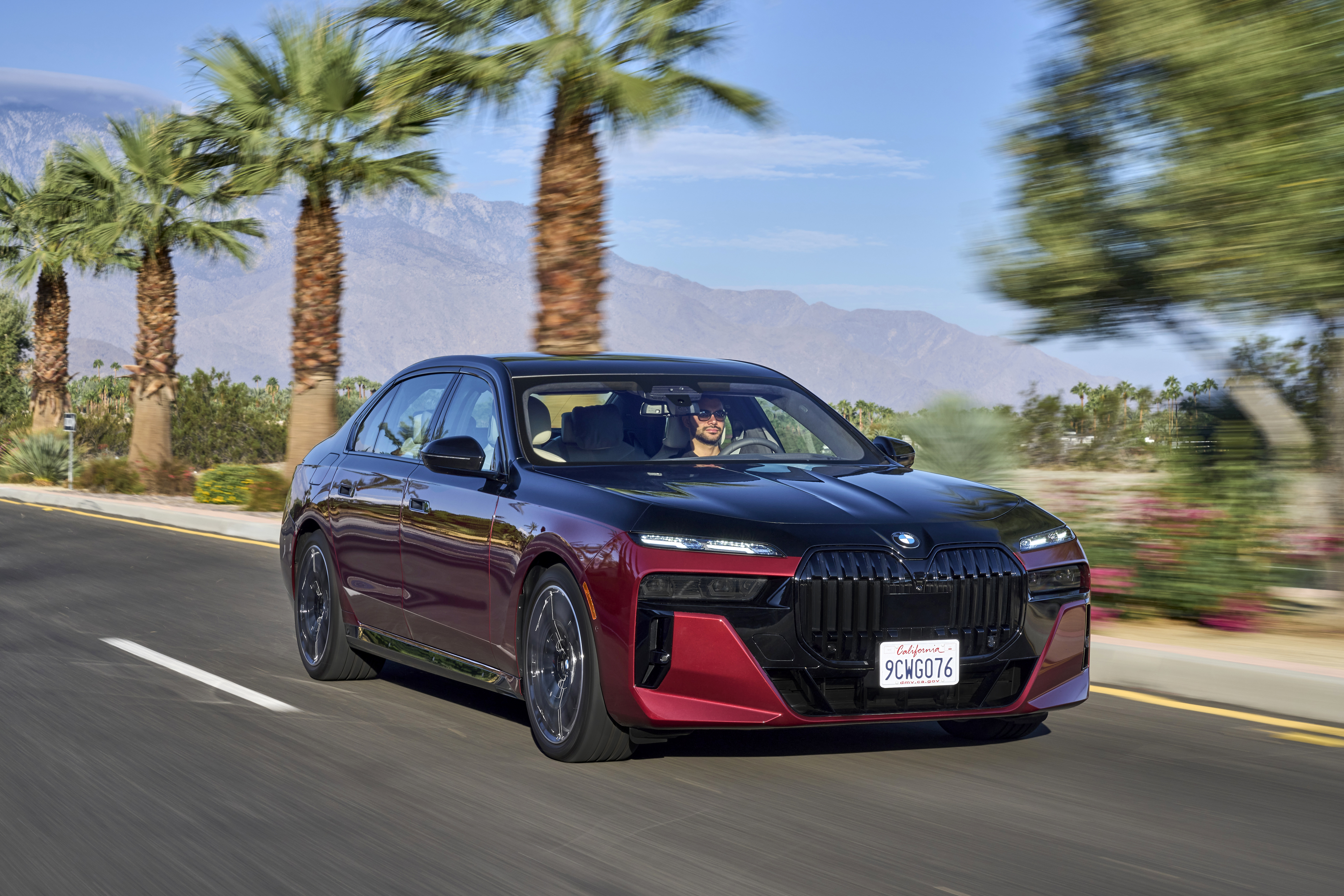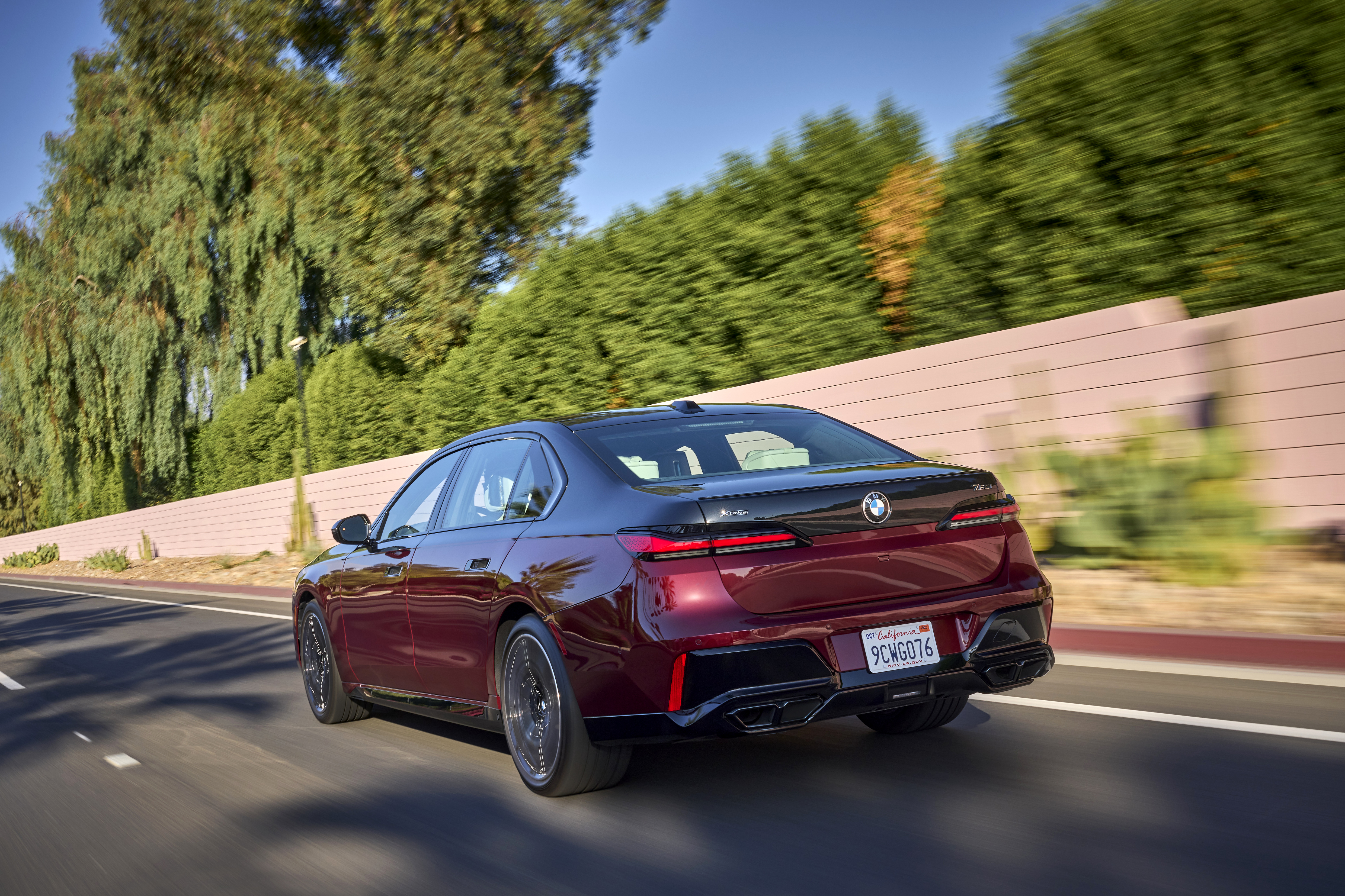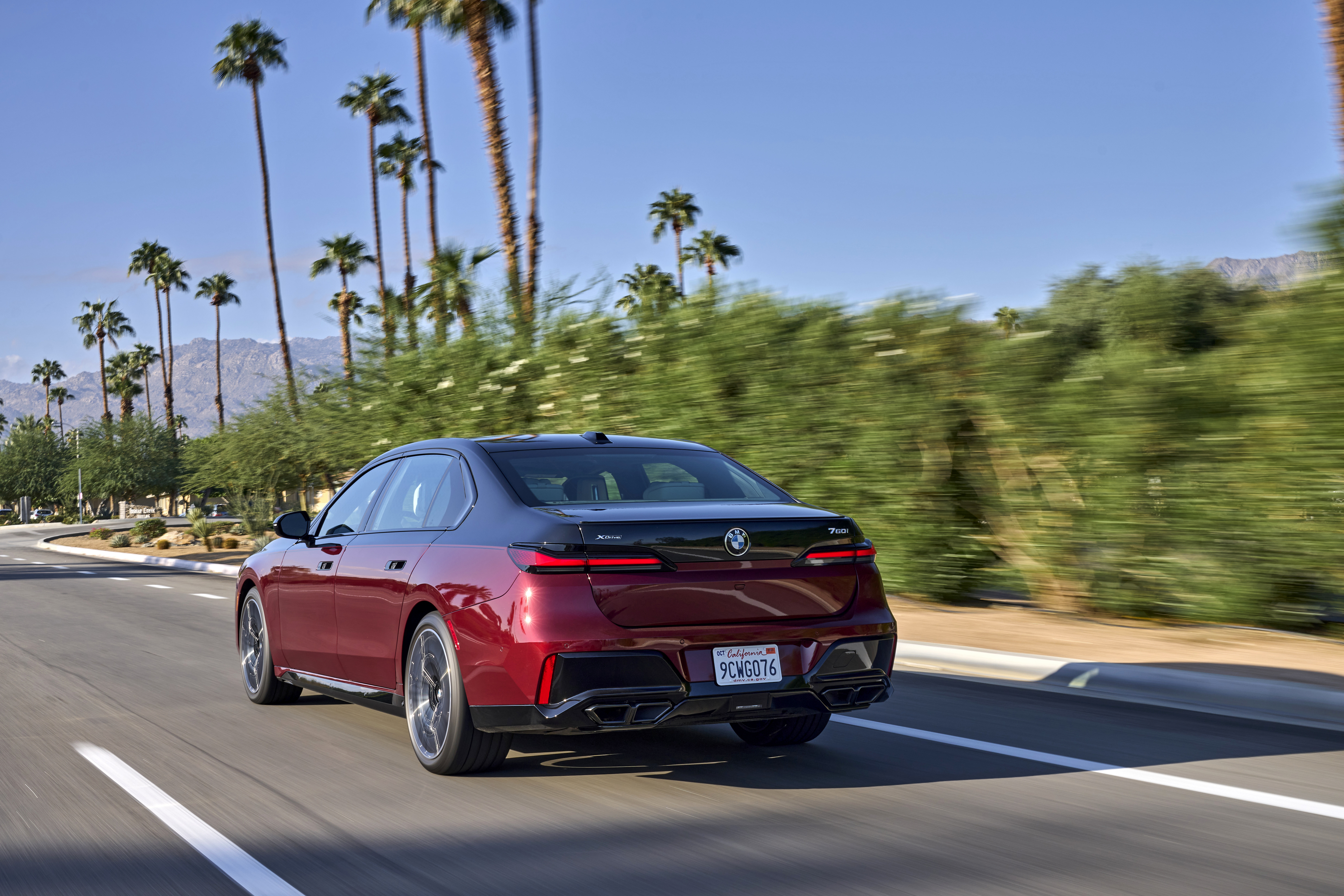 The new BMW 760i xDrive Aventurin Red Metallic Two-Tone On Location Palm Springs (10/2022).