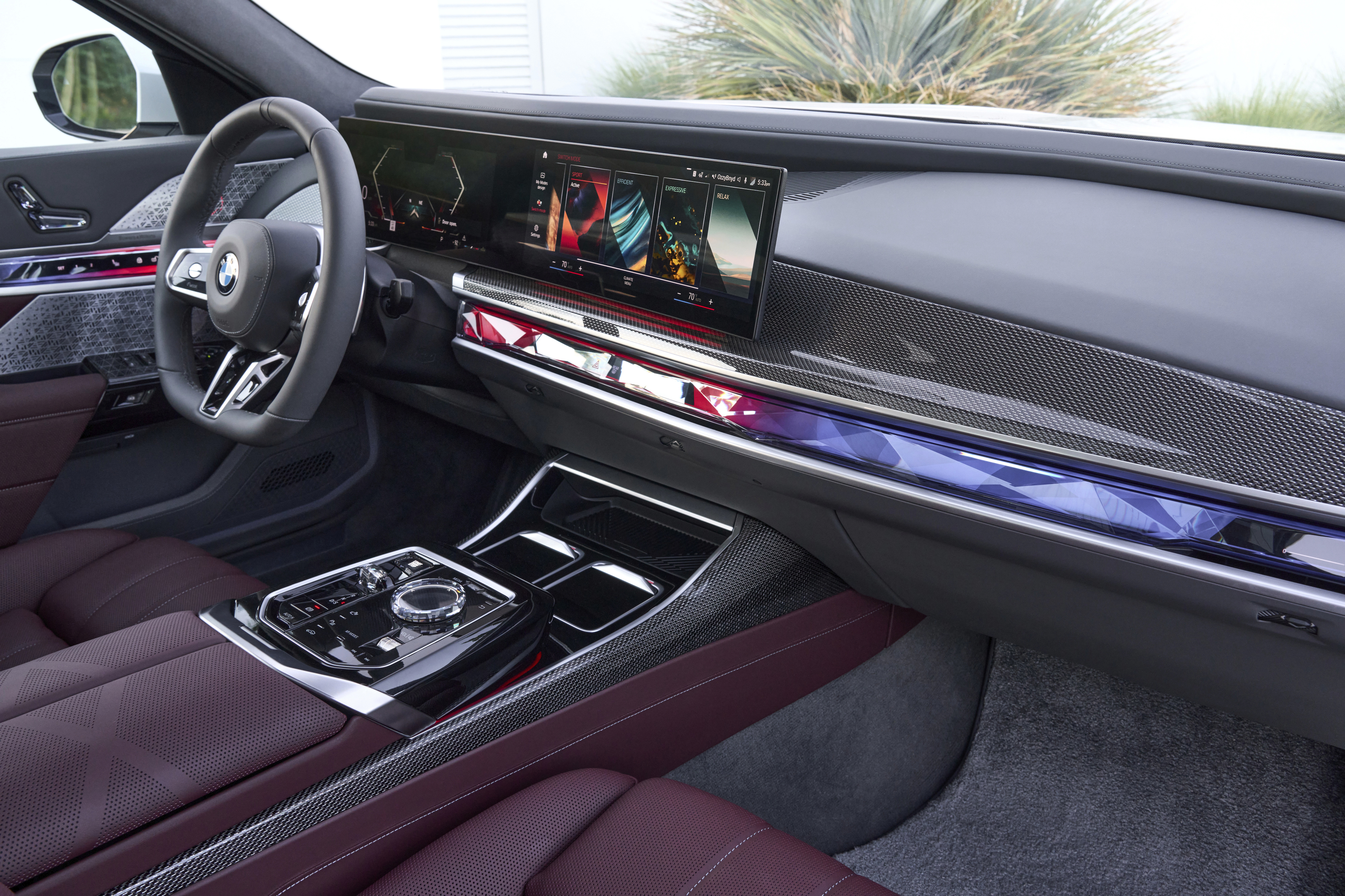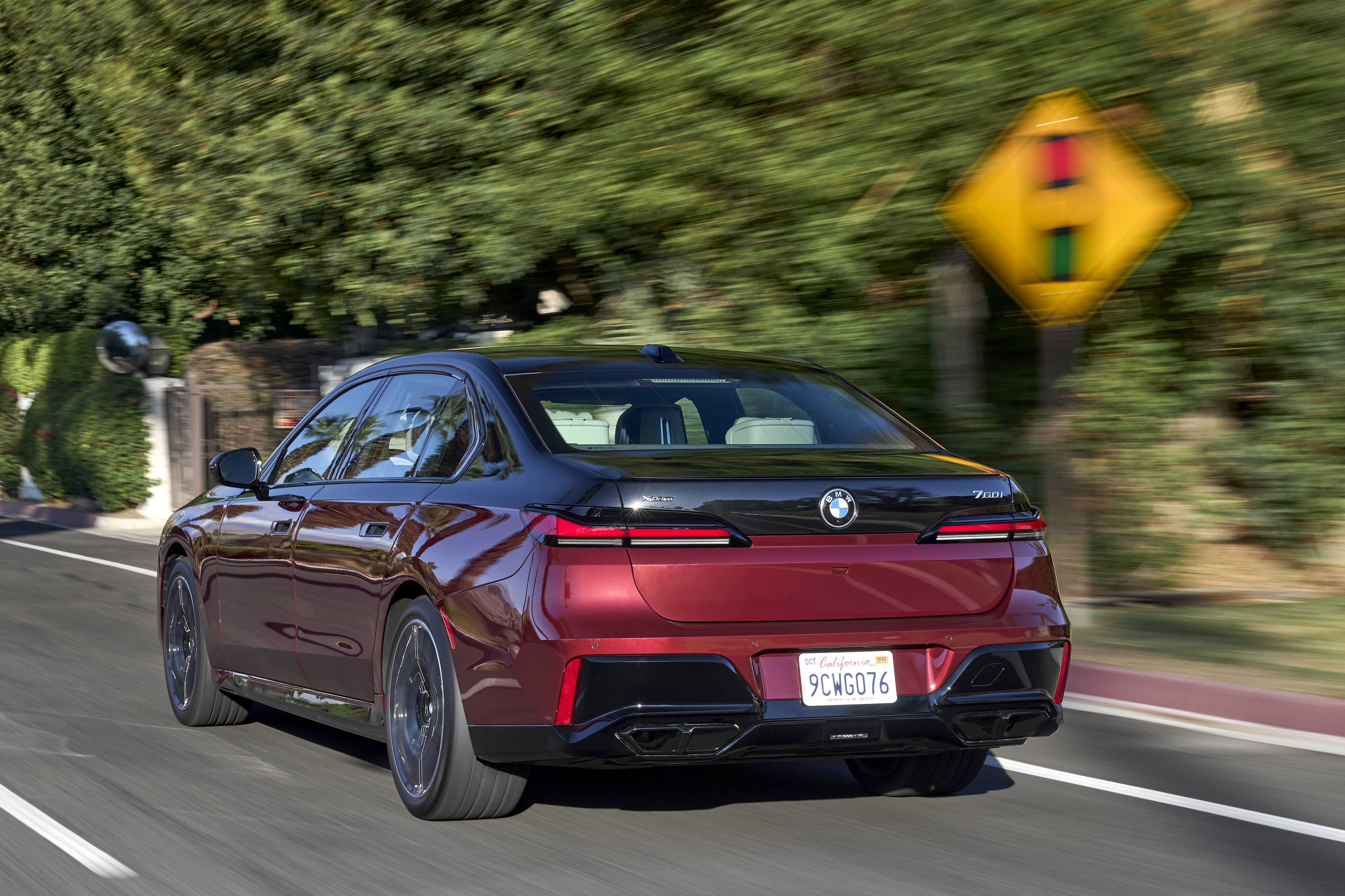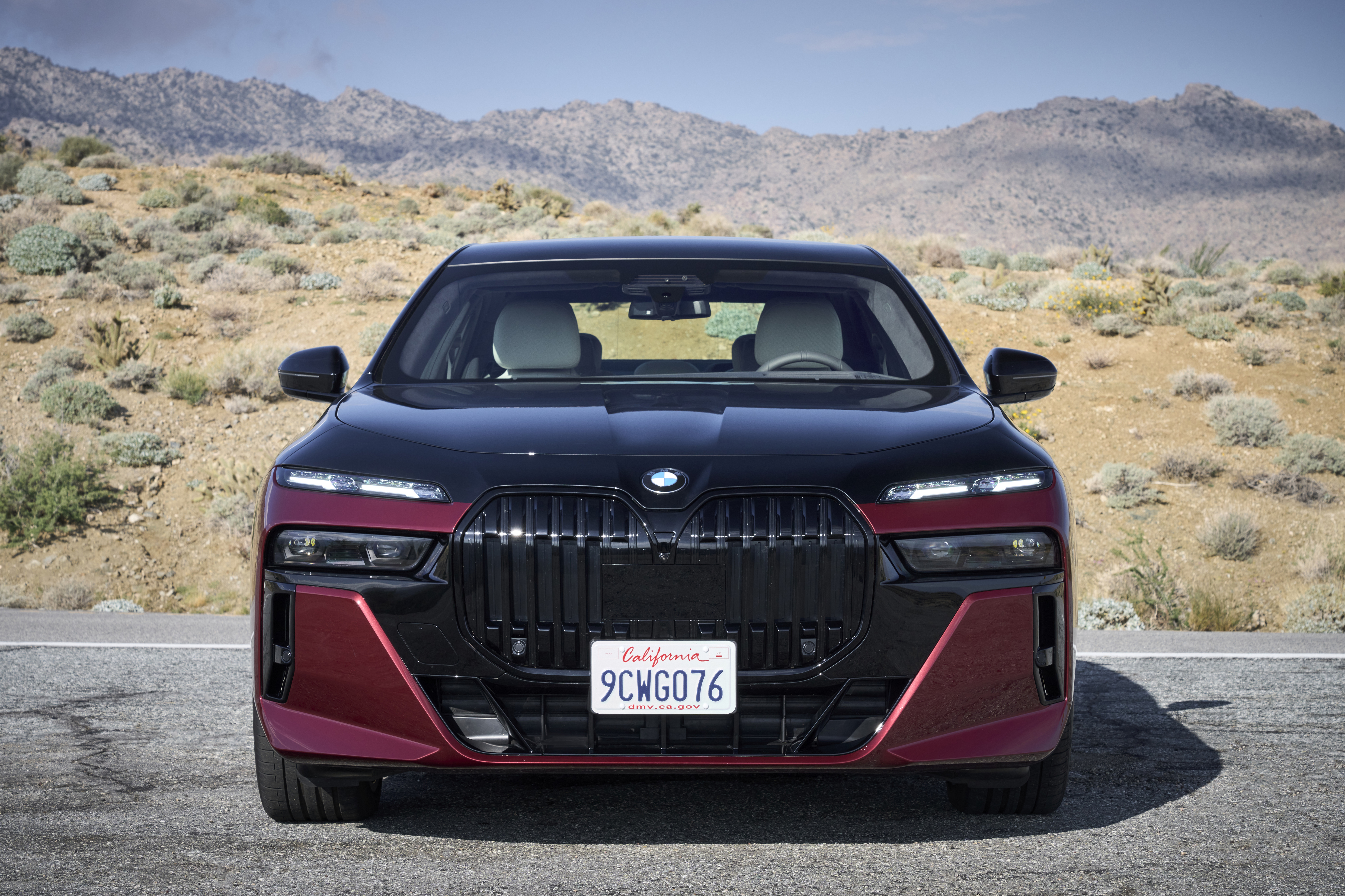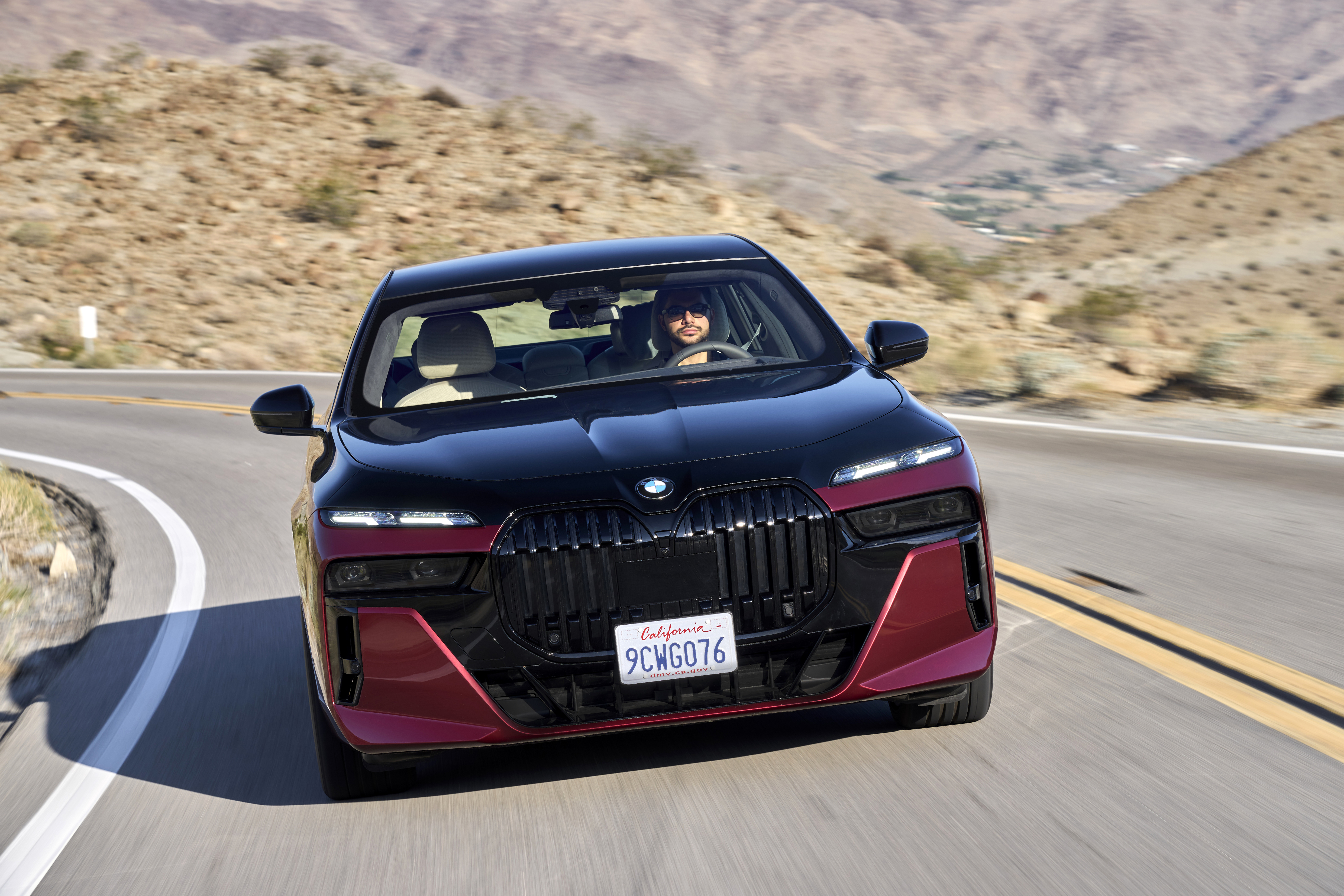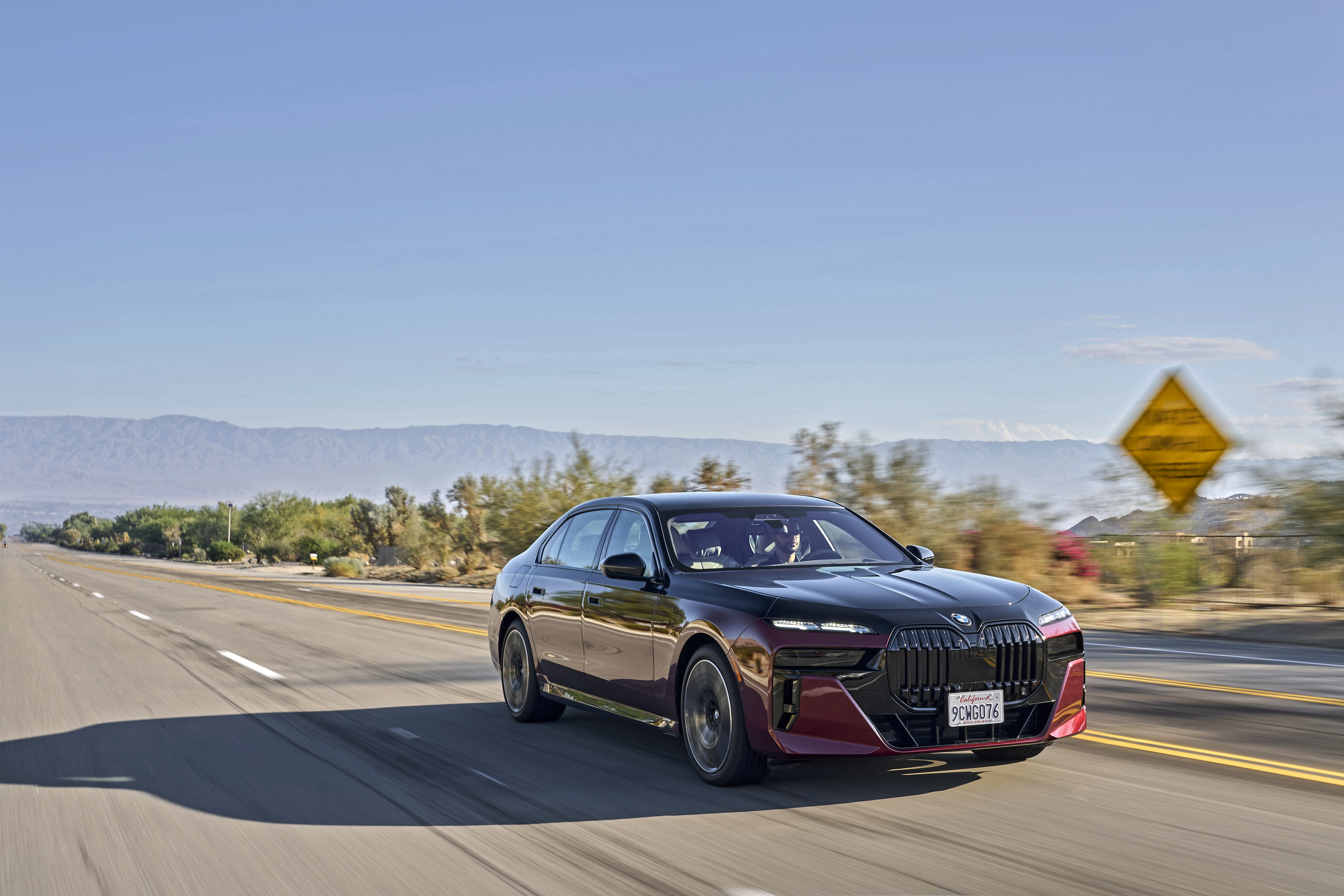 The new BMW 760i xDrive Aventurin Red Metallic Two-Tone On Location Palm Springs (10/2022).
