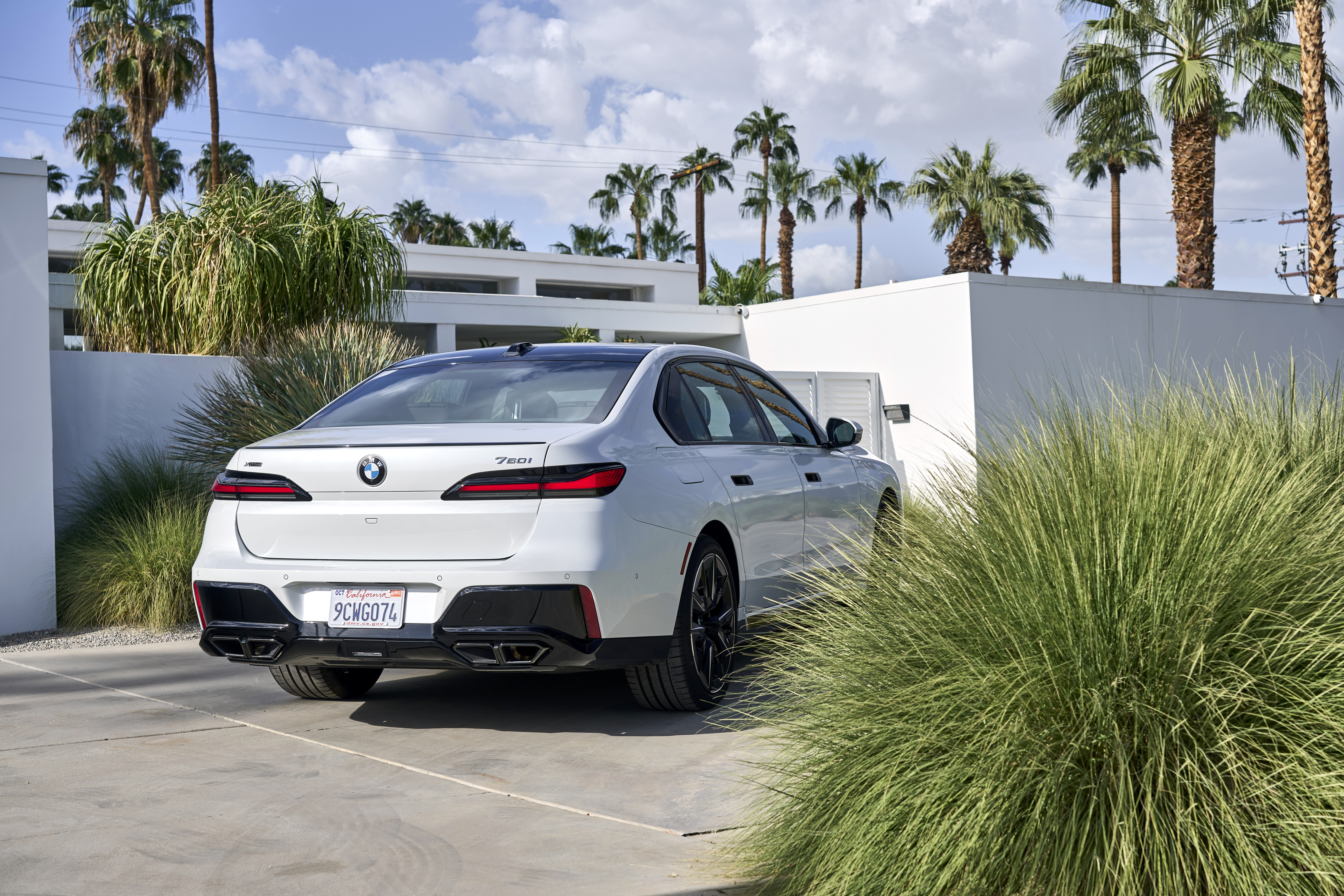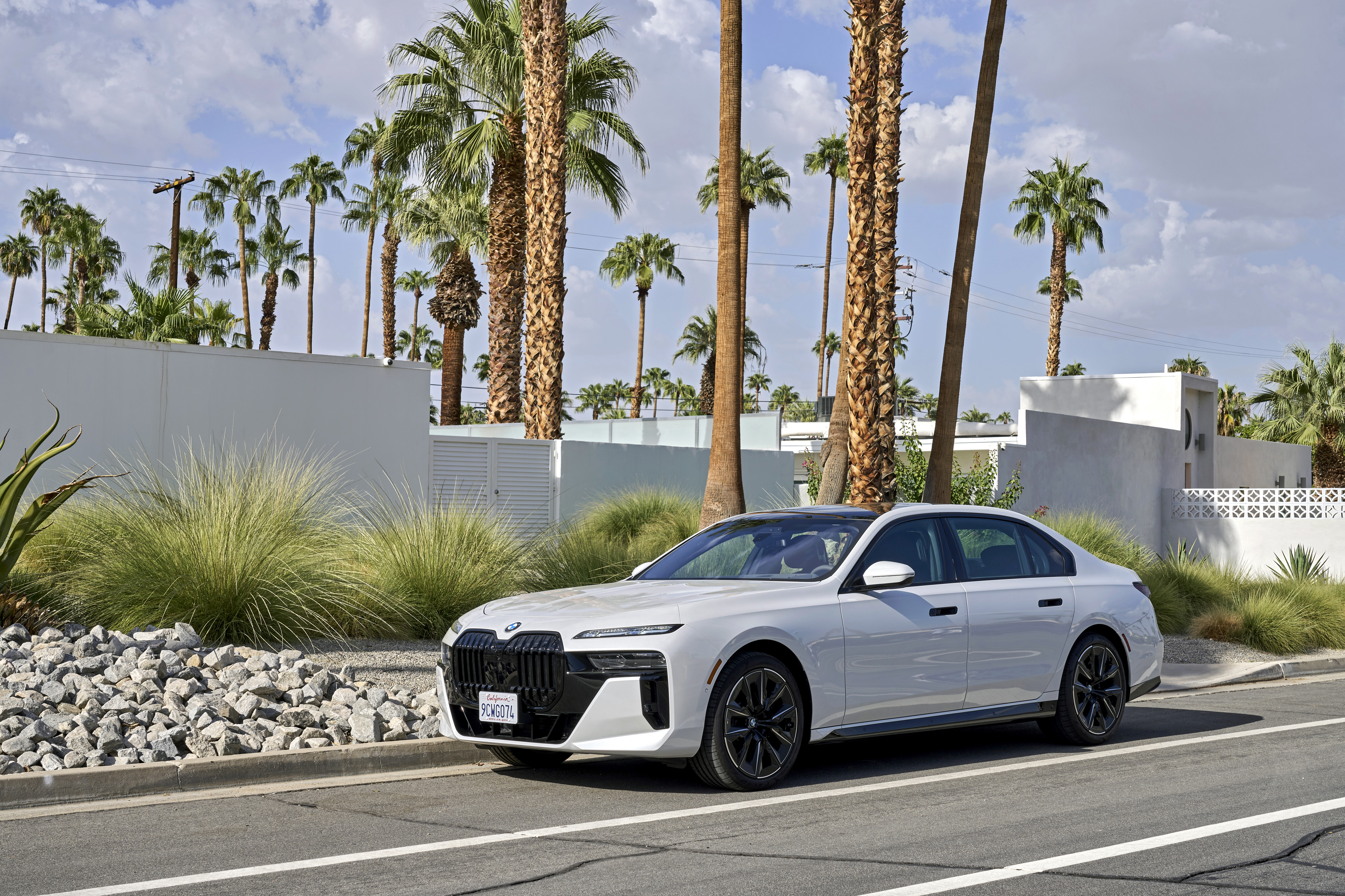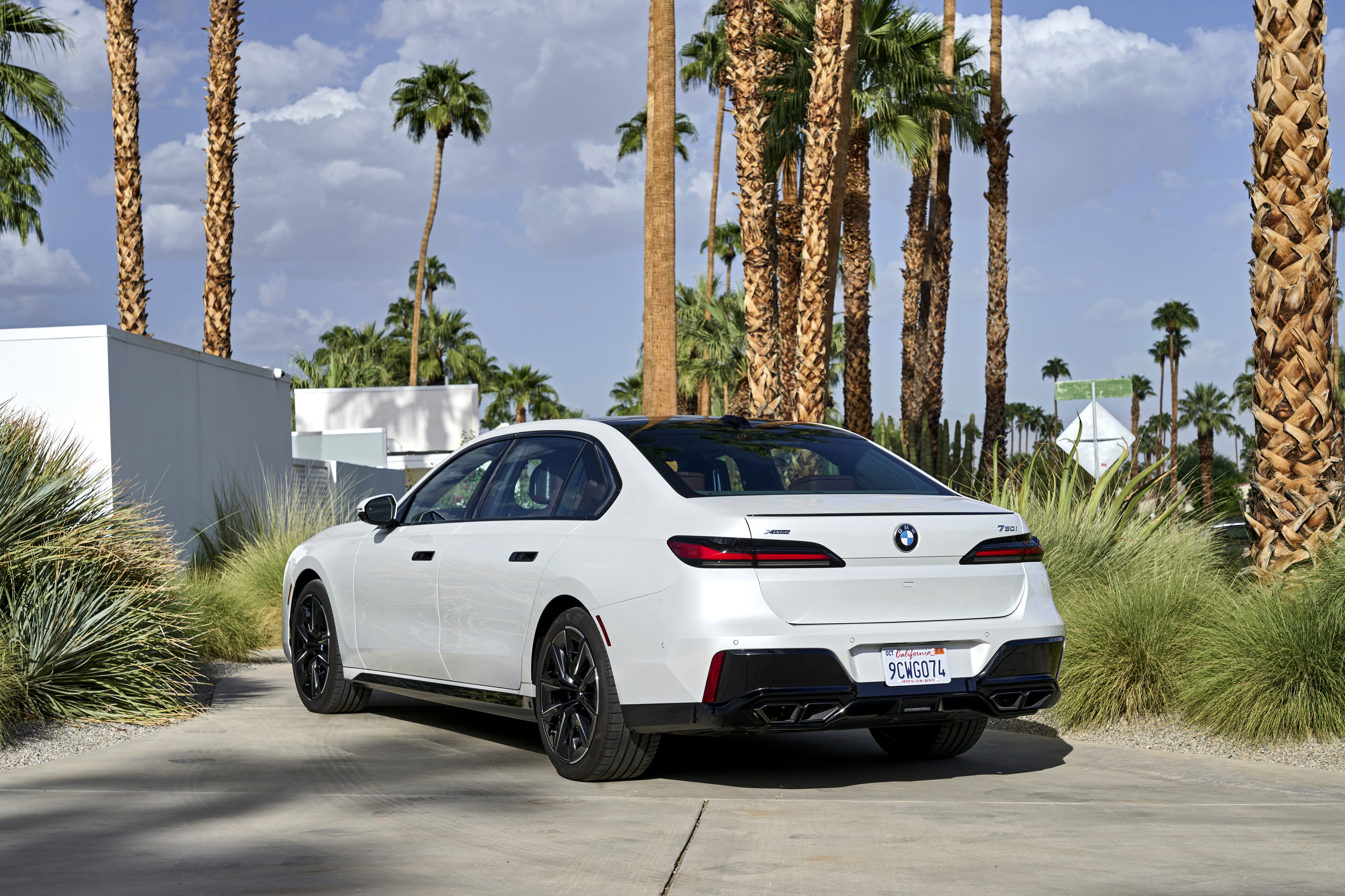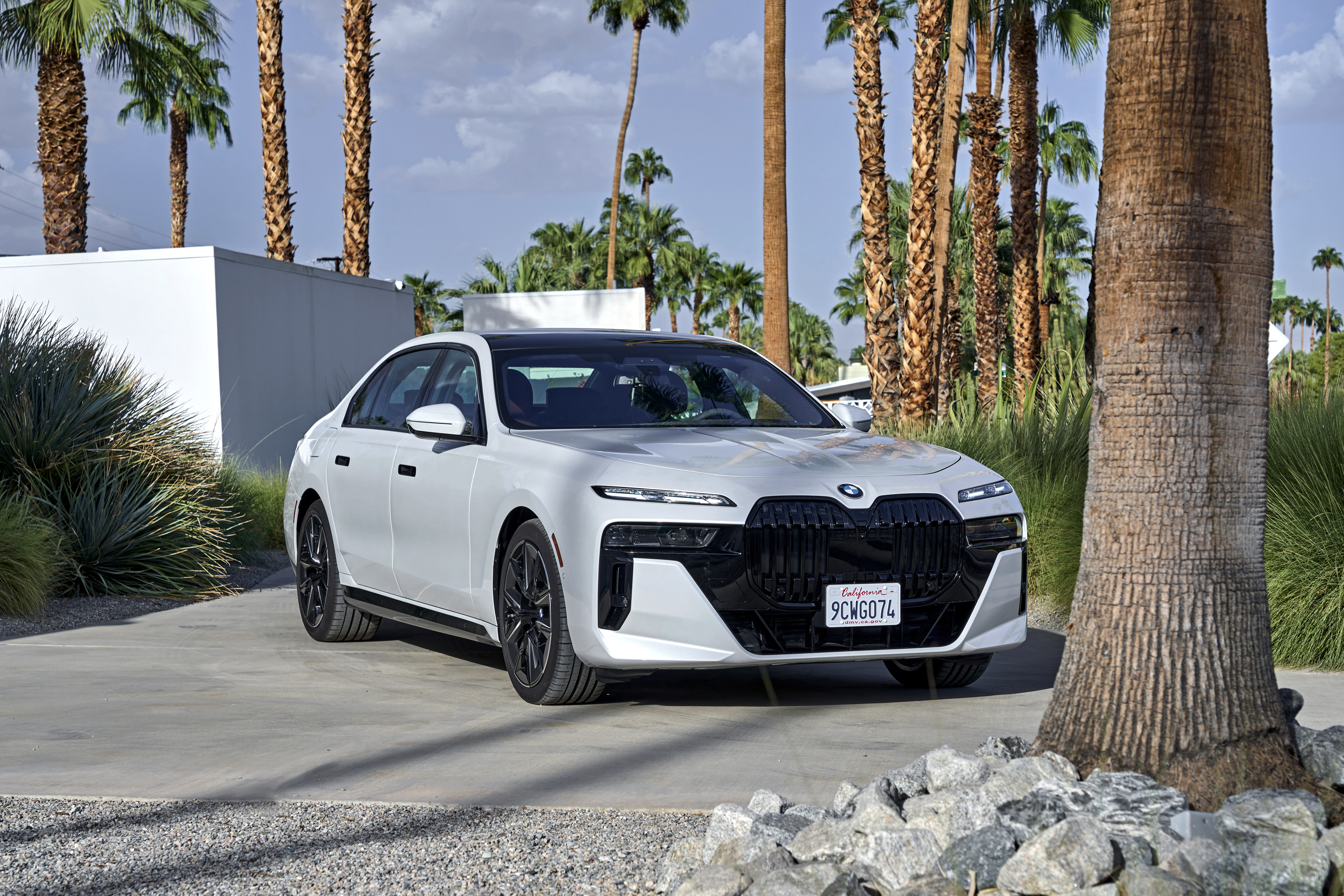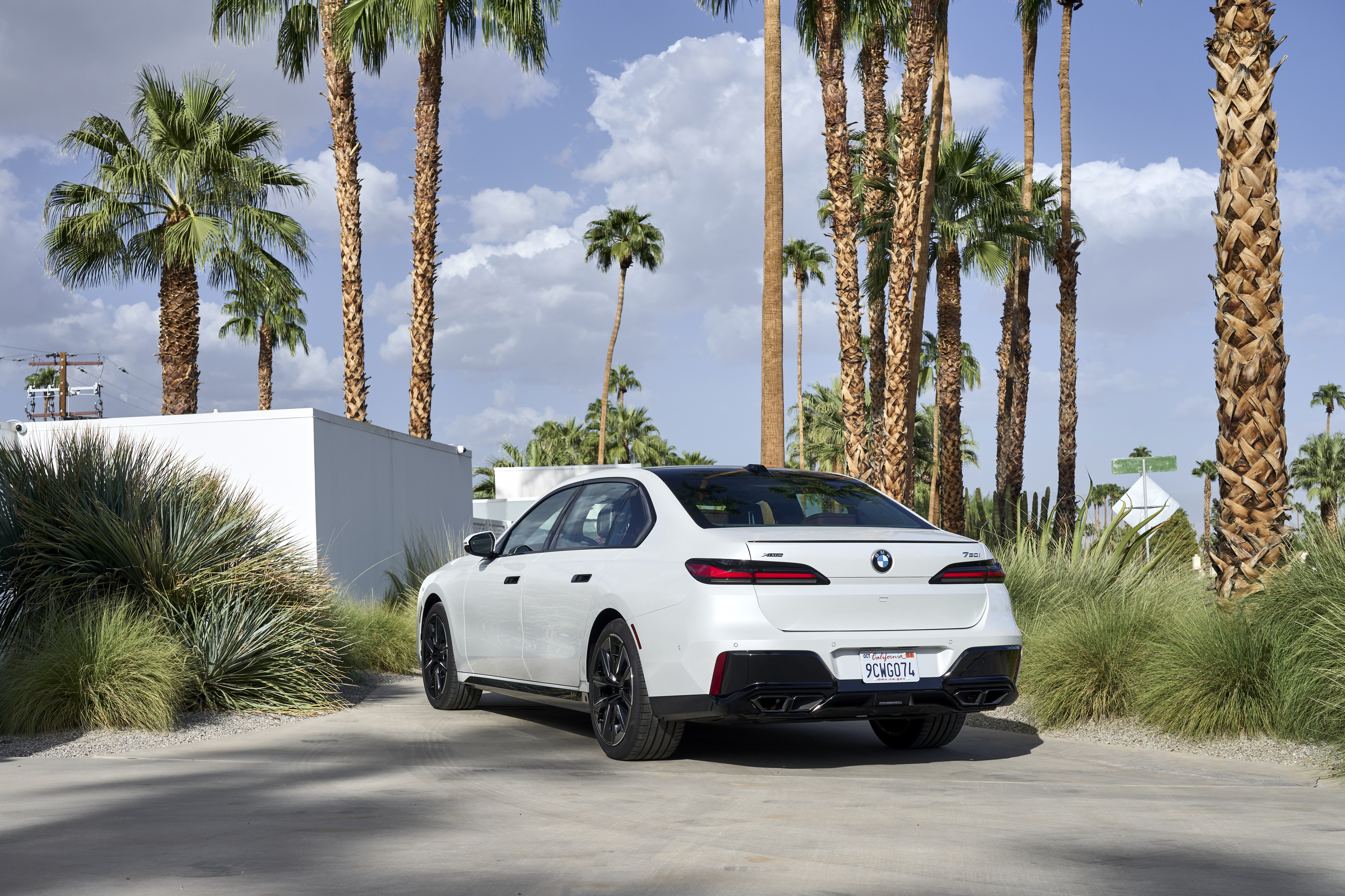 The new BMW 760i xDrive Mineral White Metallic On Location Palm Springs (10/2022).