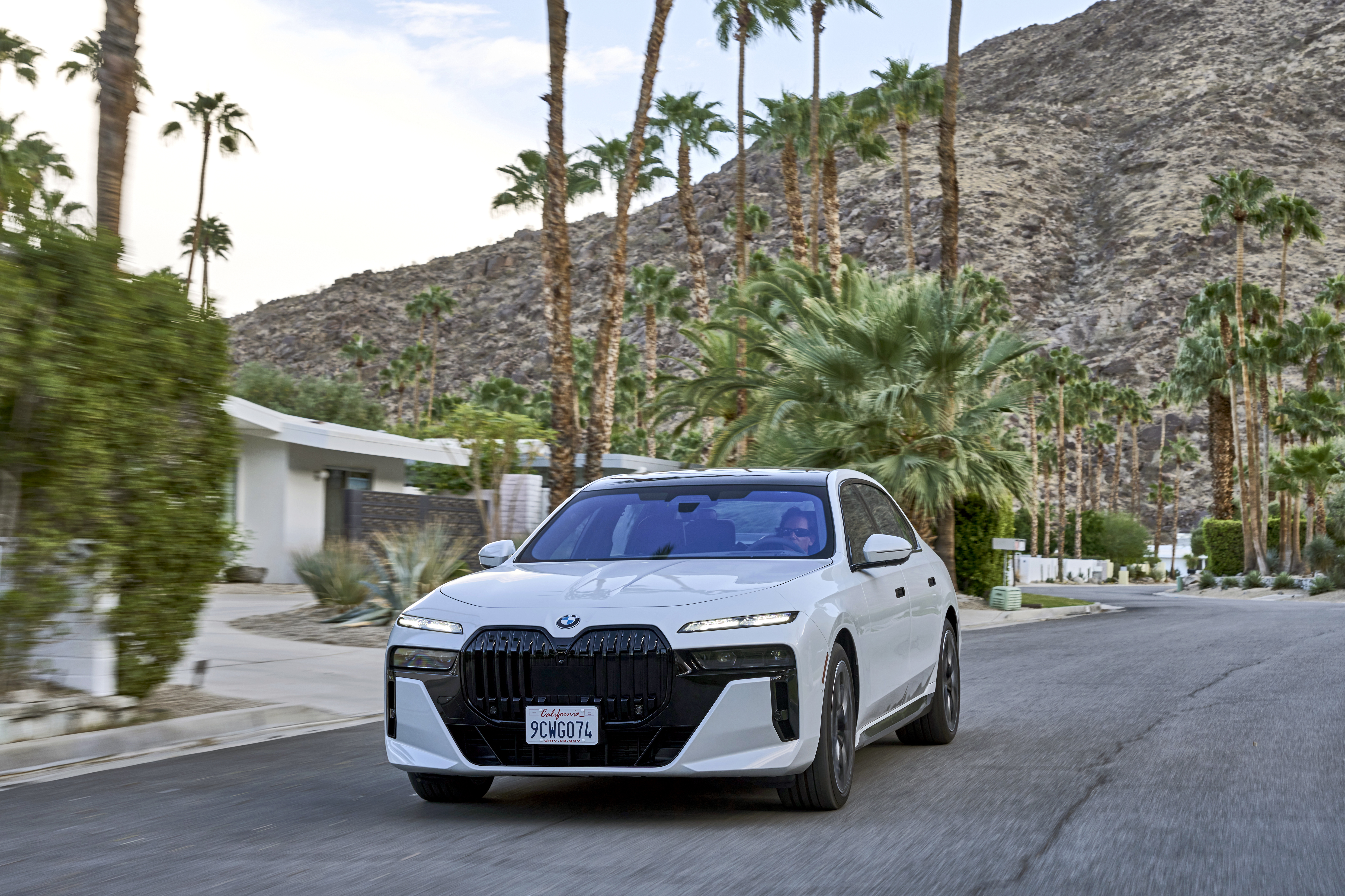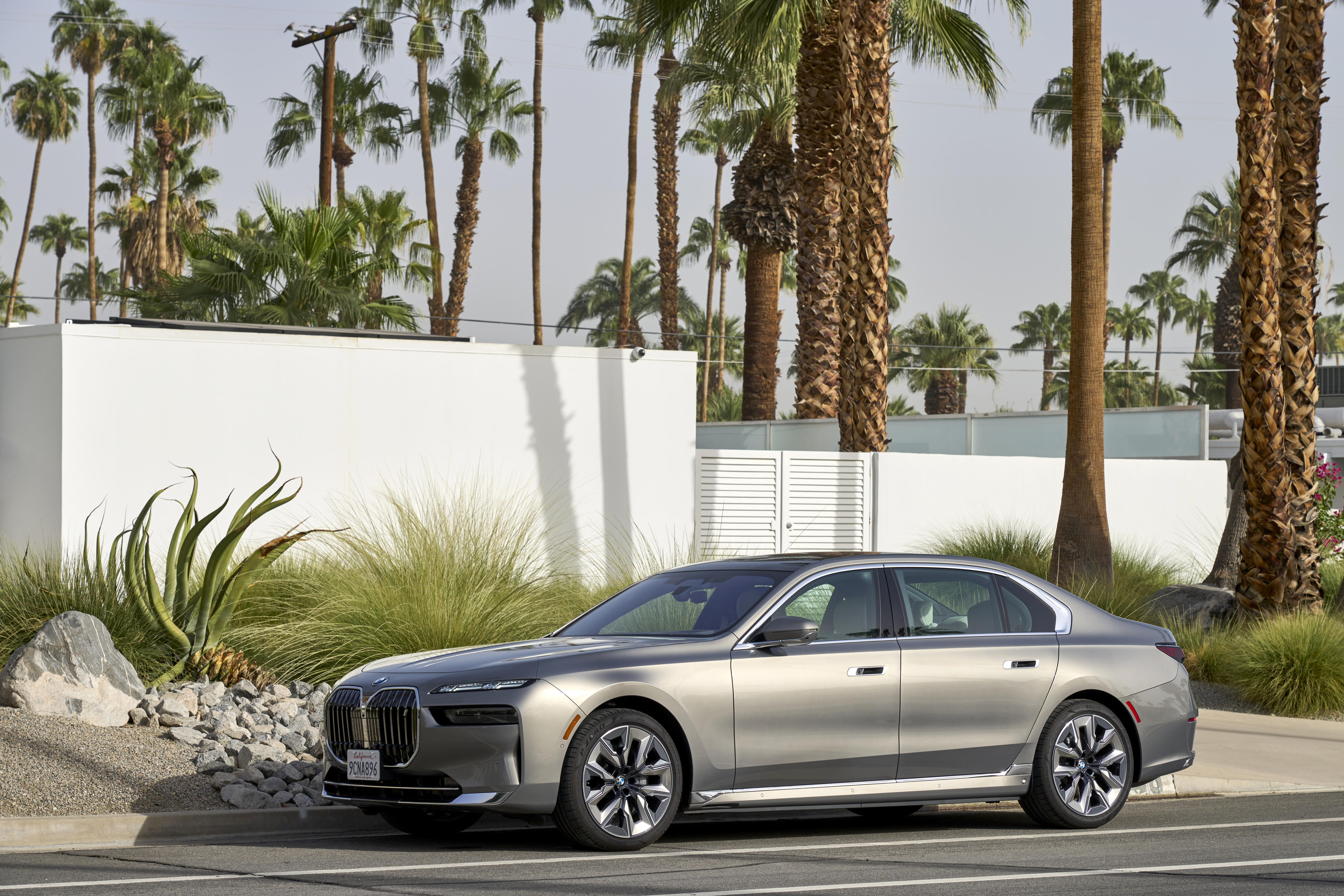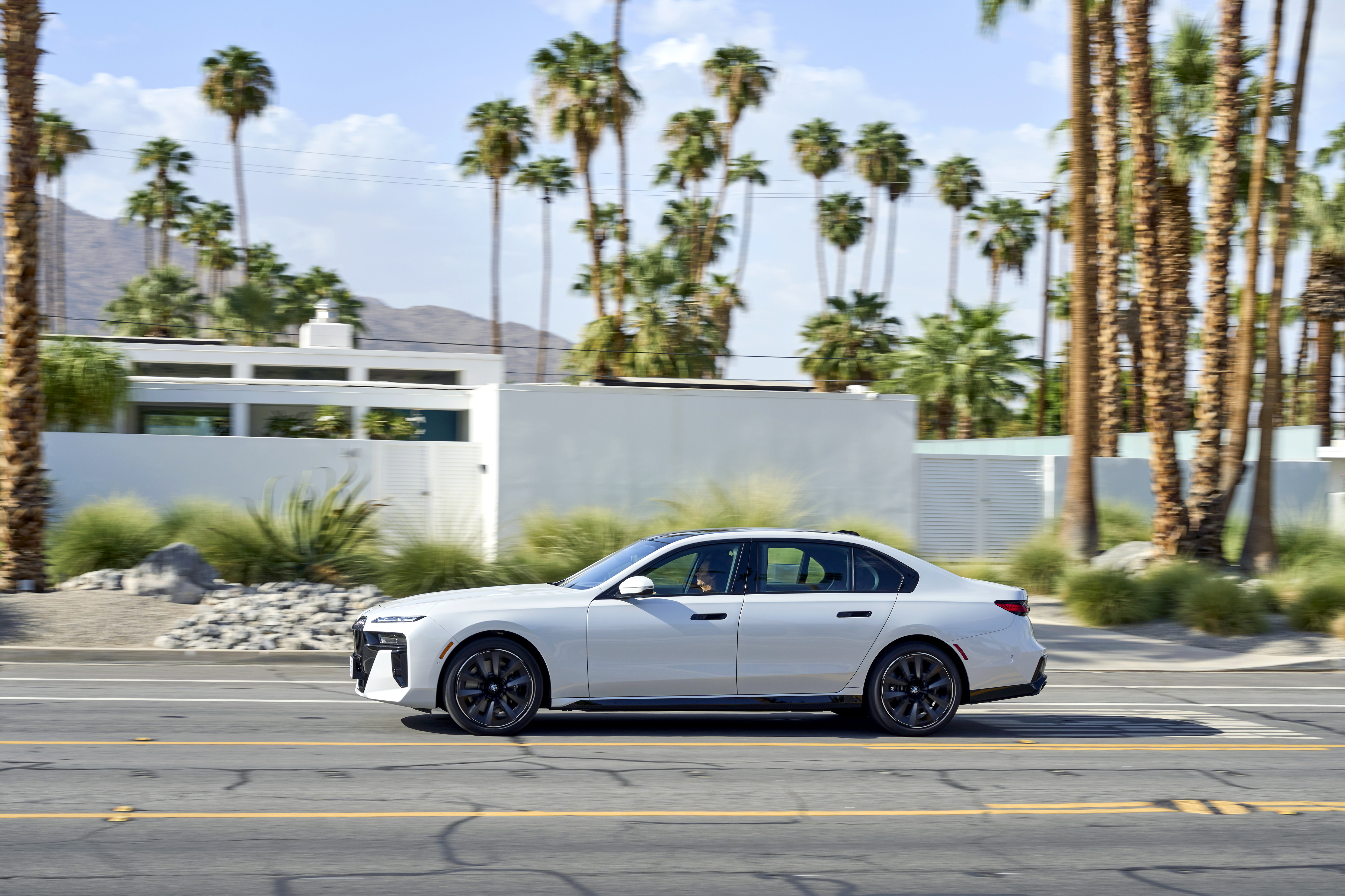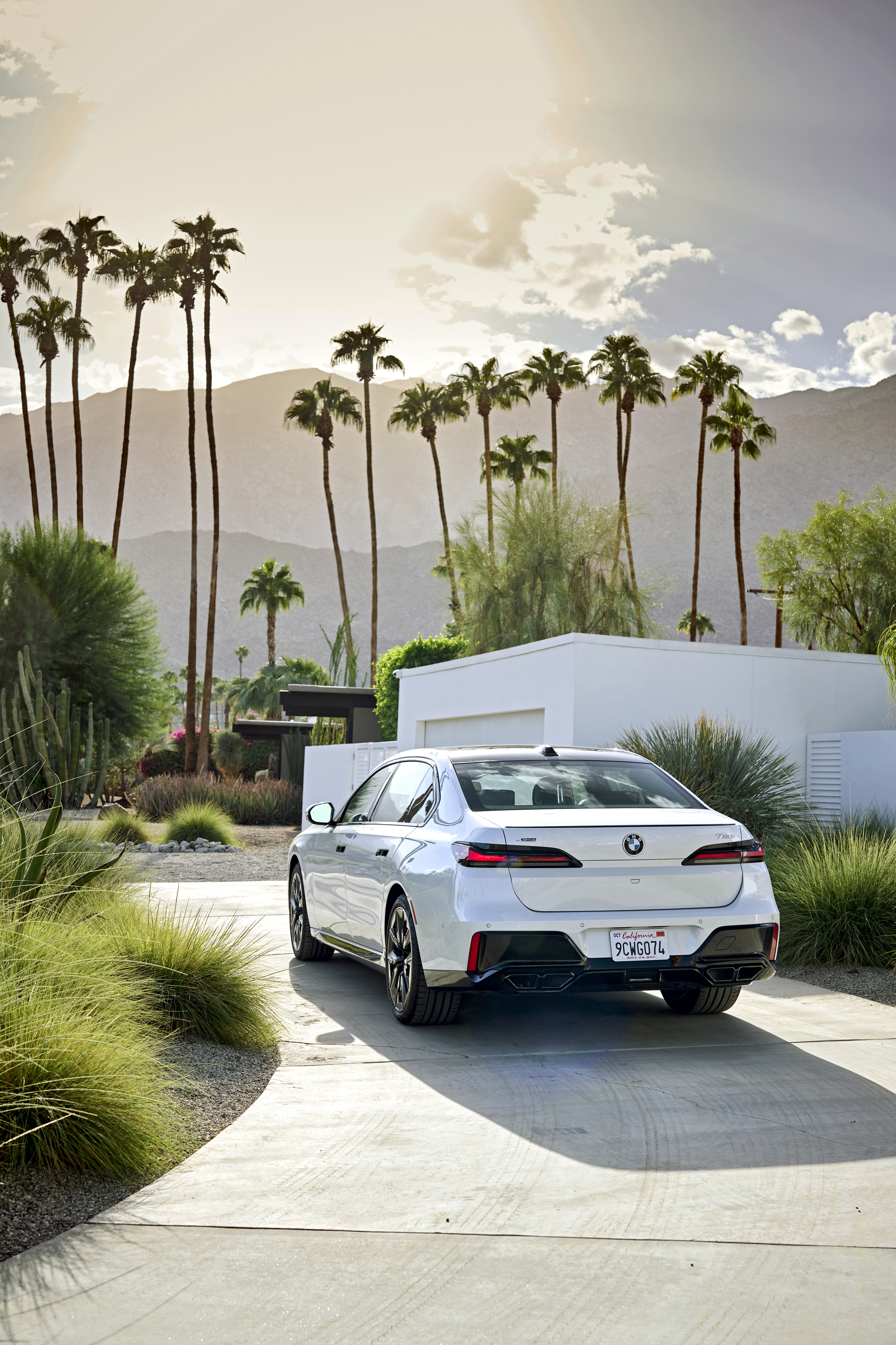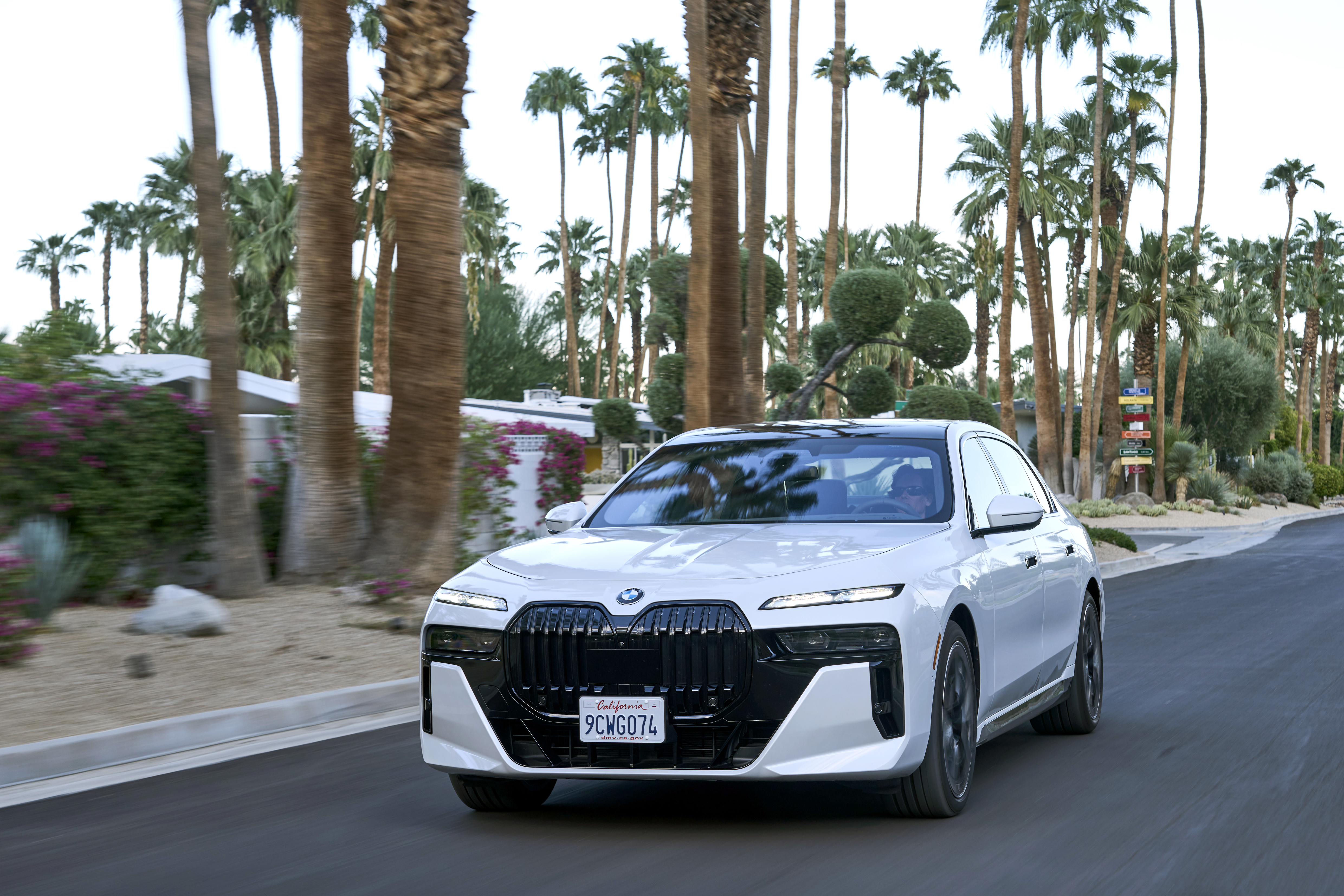 The new BMW 760i xDrive Mineral White Metallic On Location Palm Springs (10/2022).