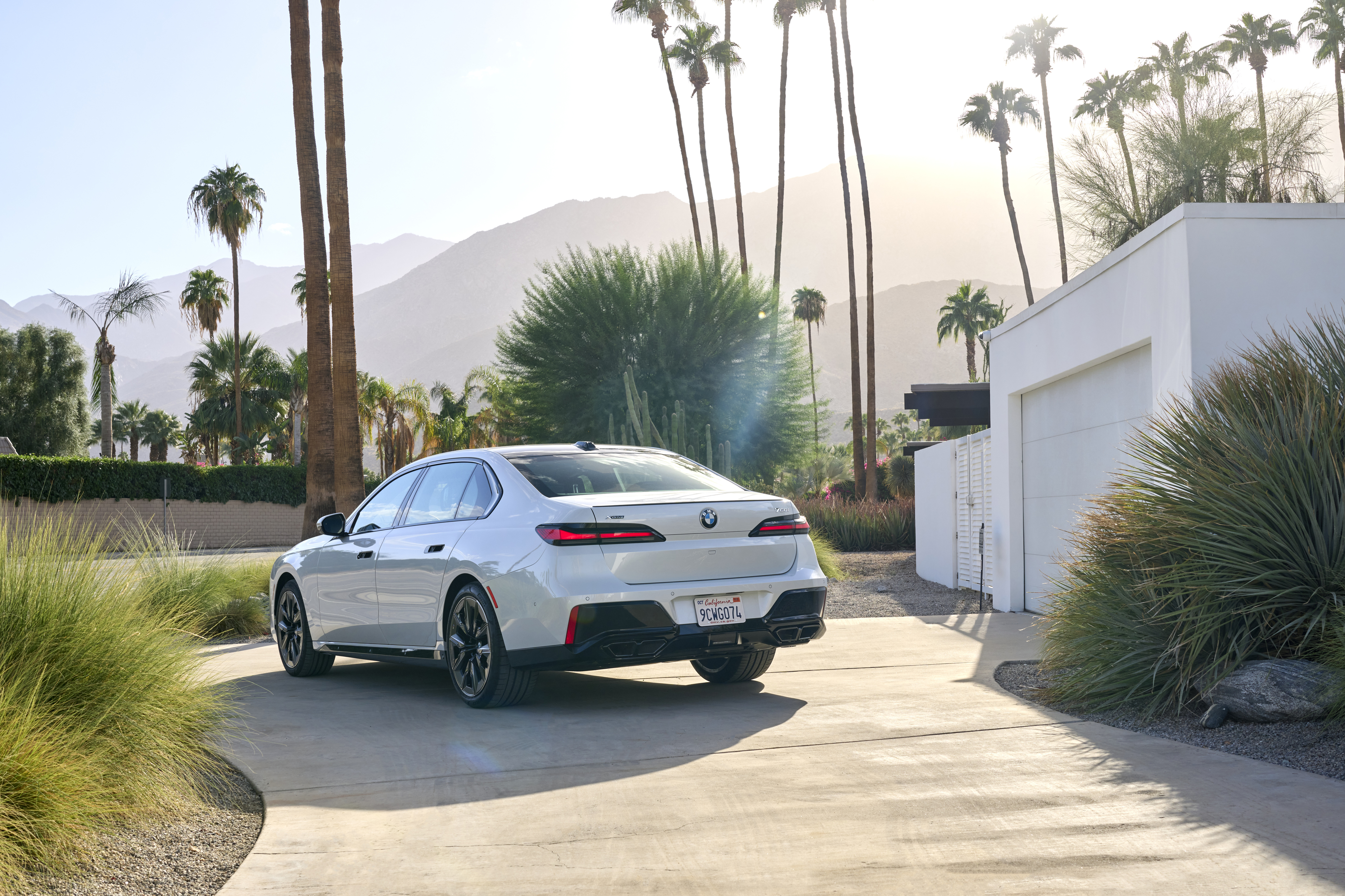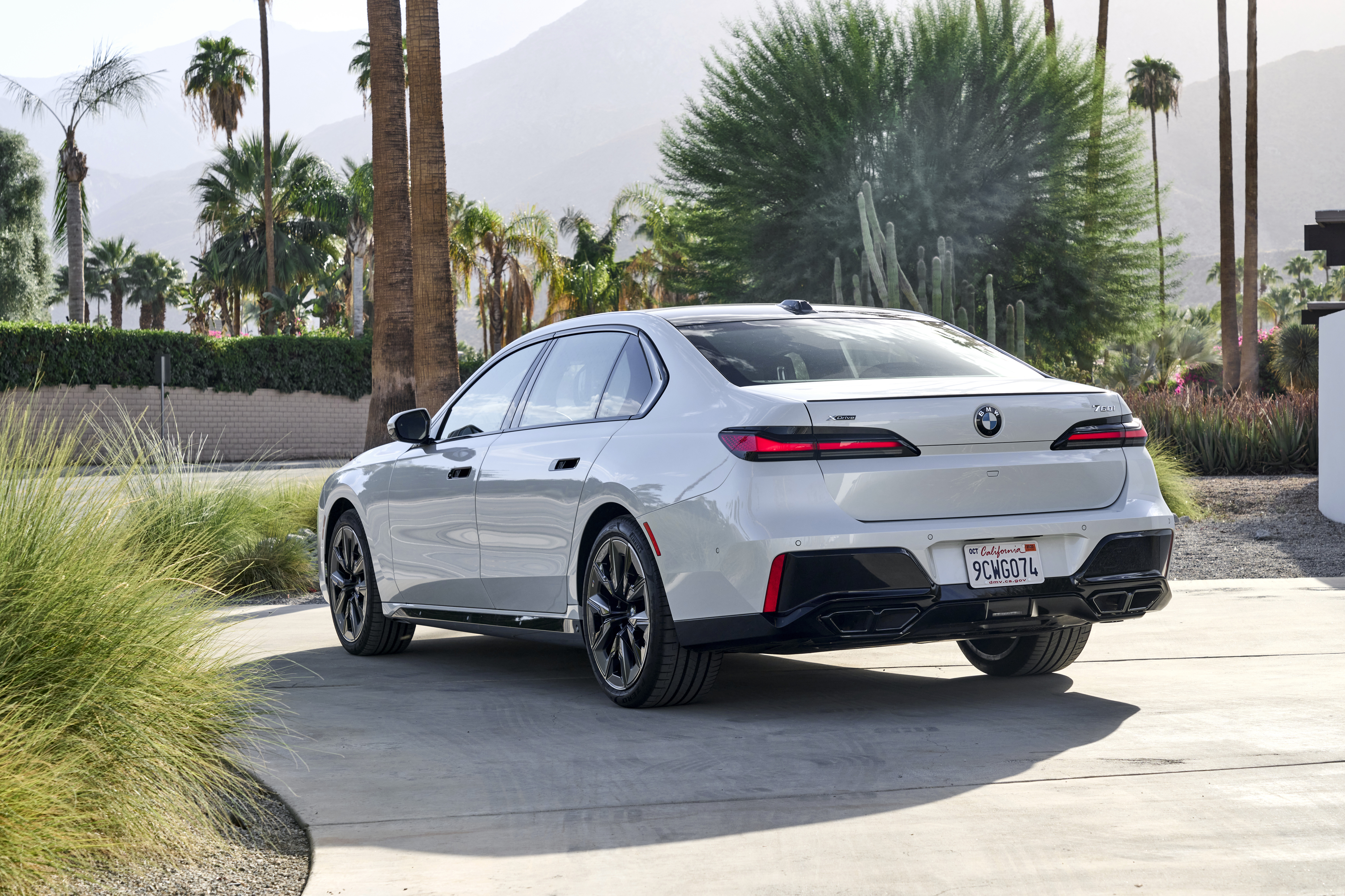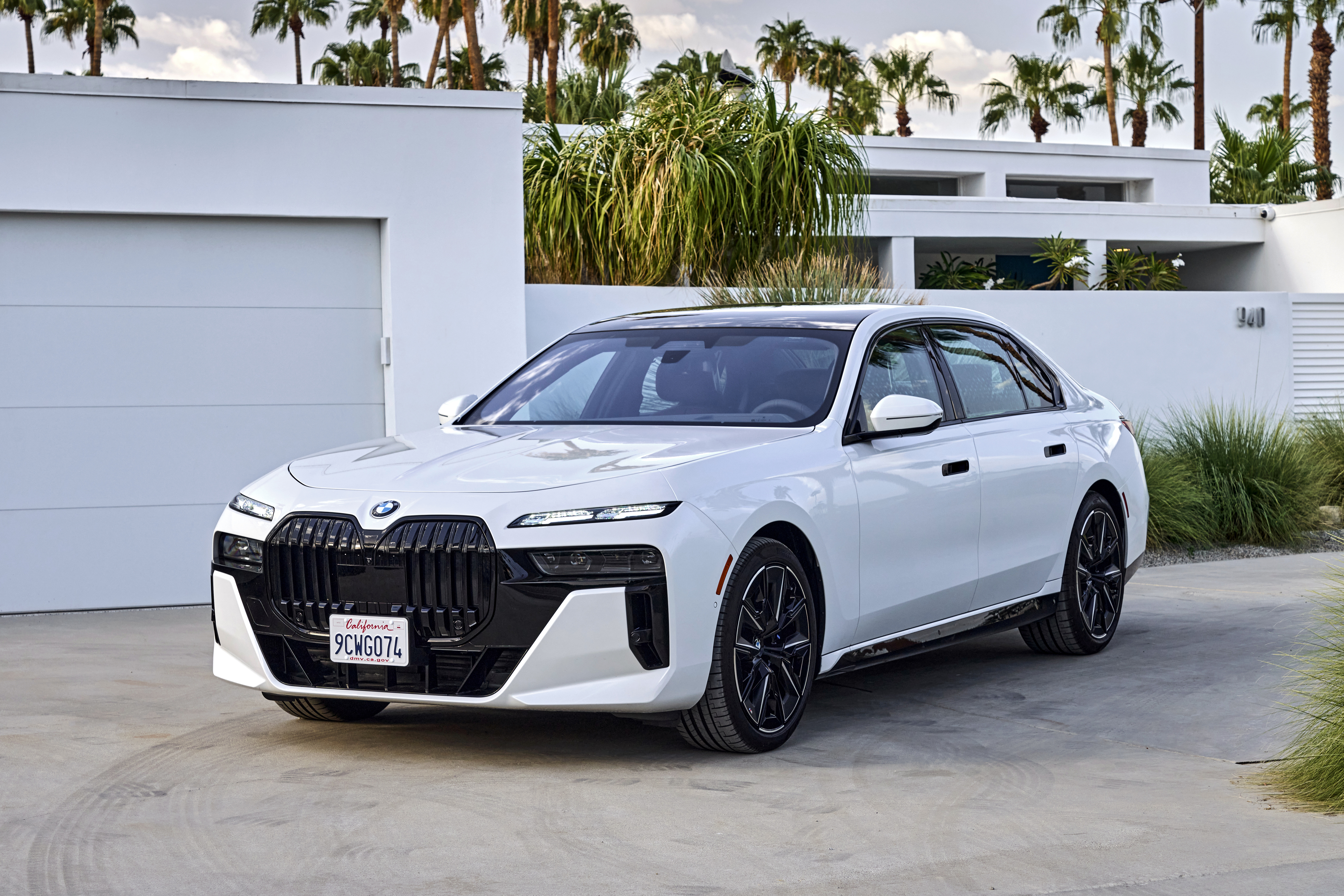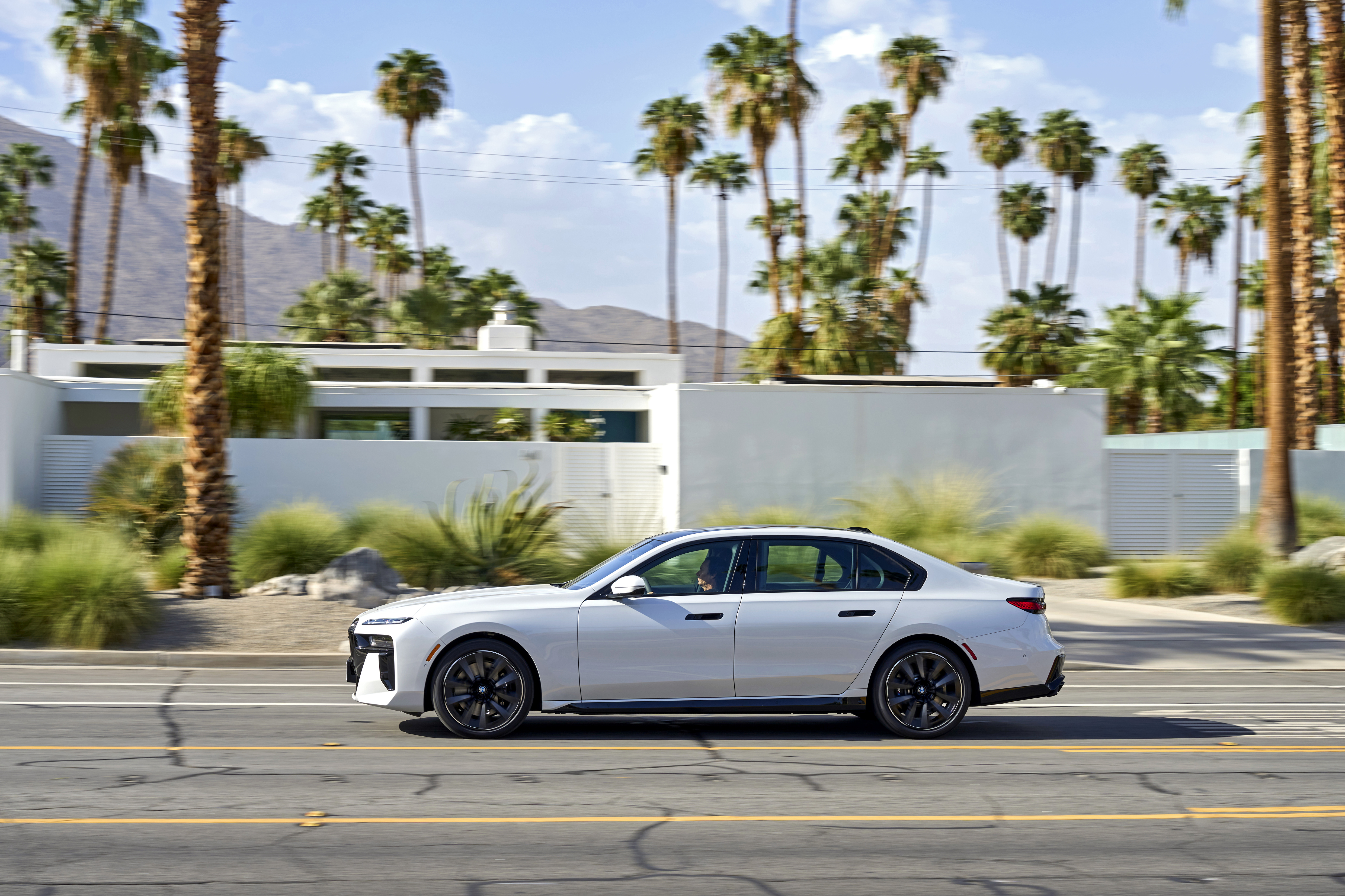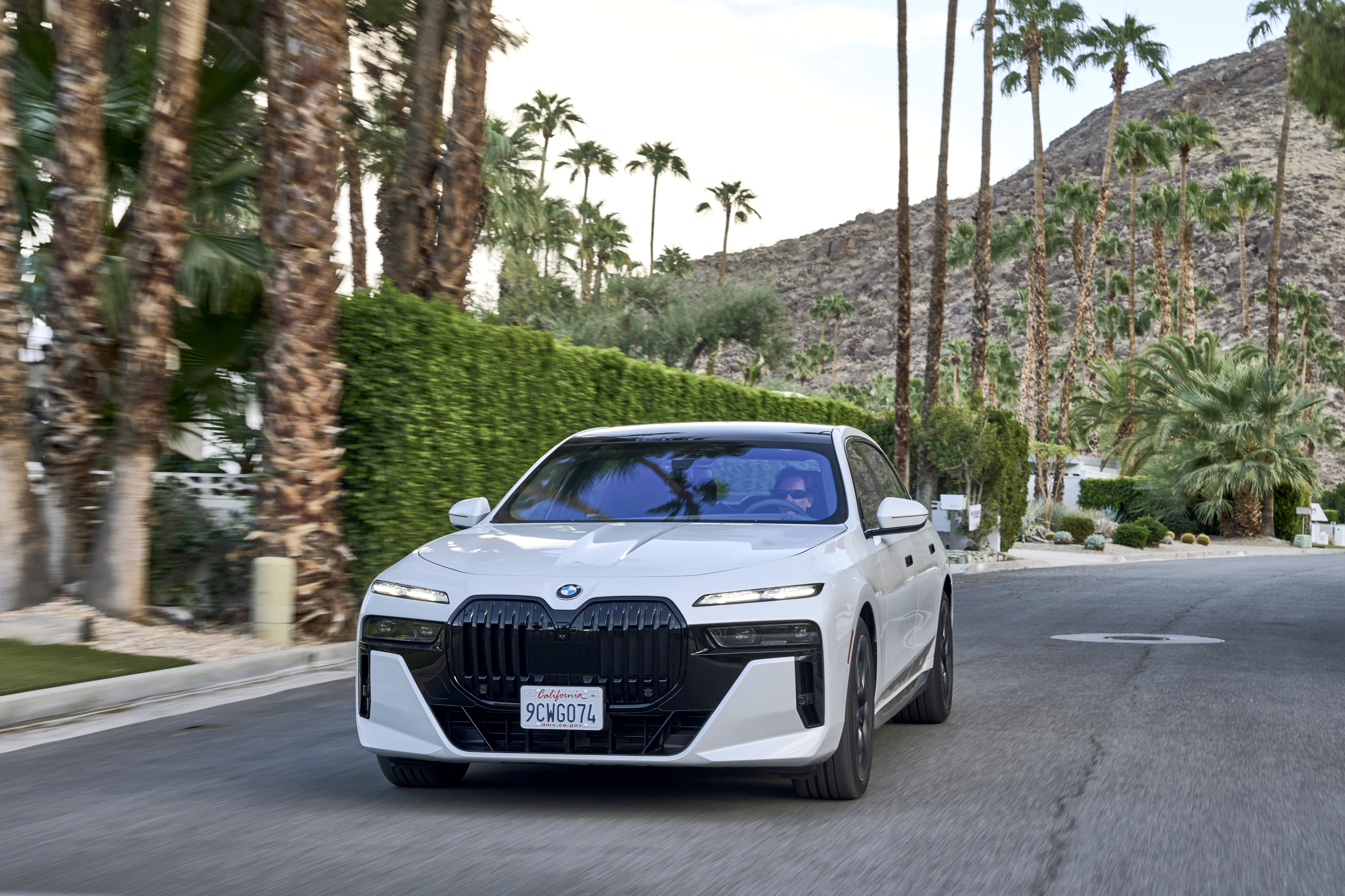 The new BMW 760i xDrive Mineral White Metallic On Location Palm Springs (10/2022).