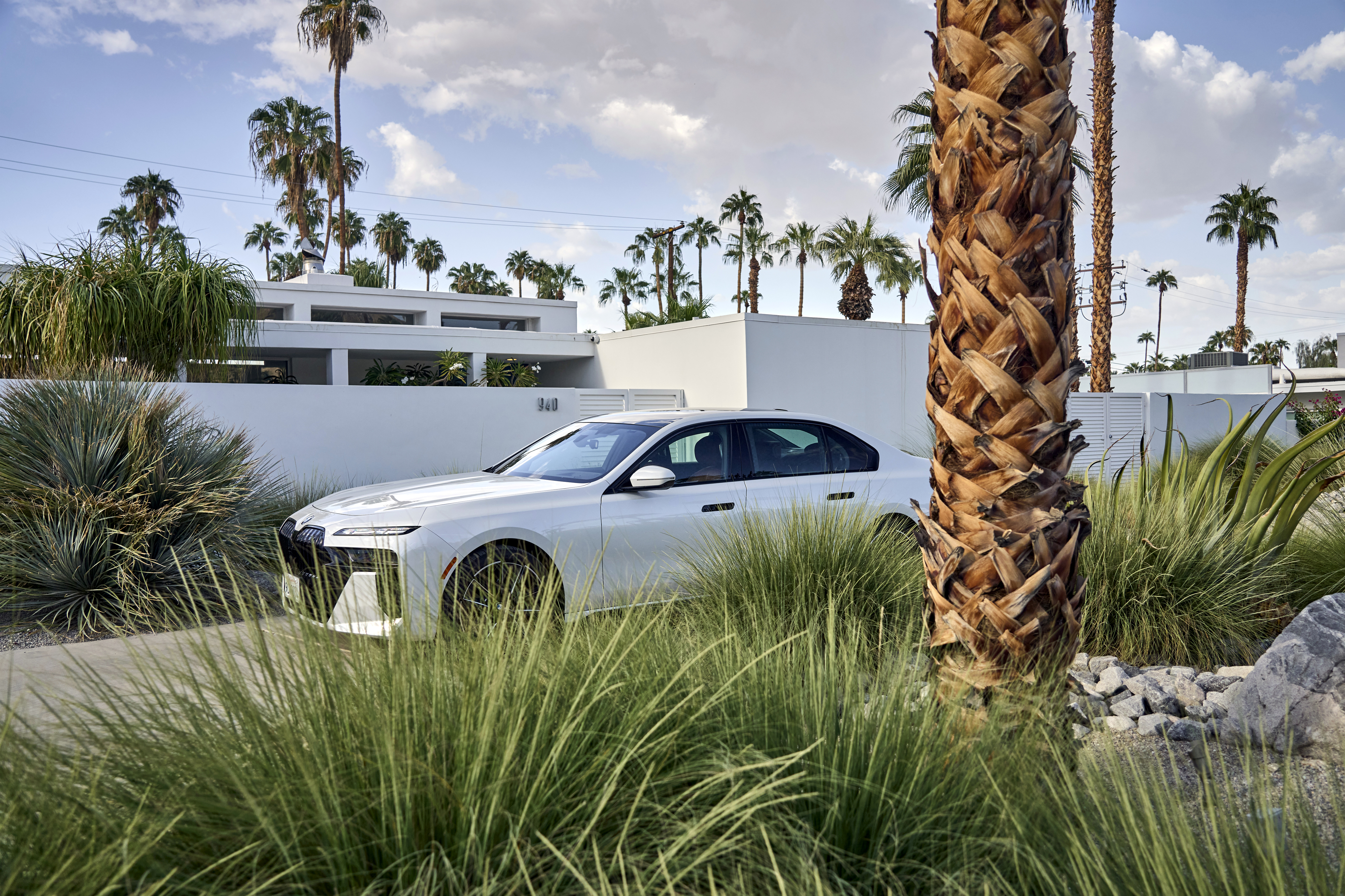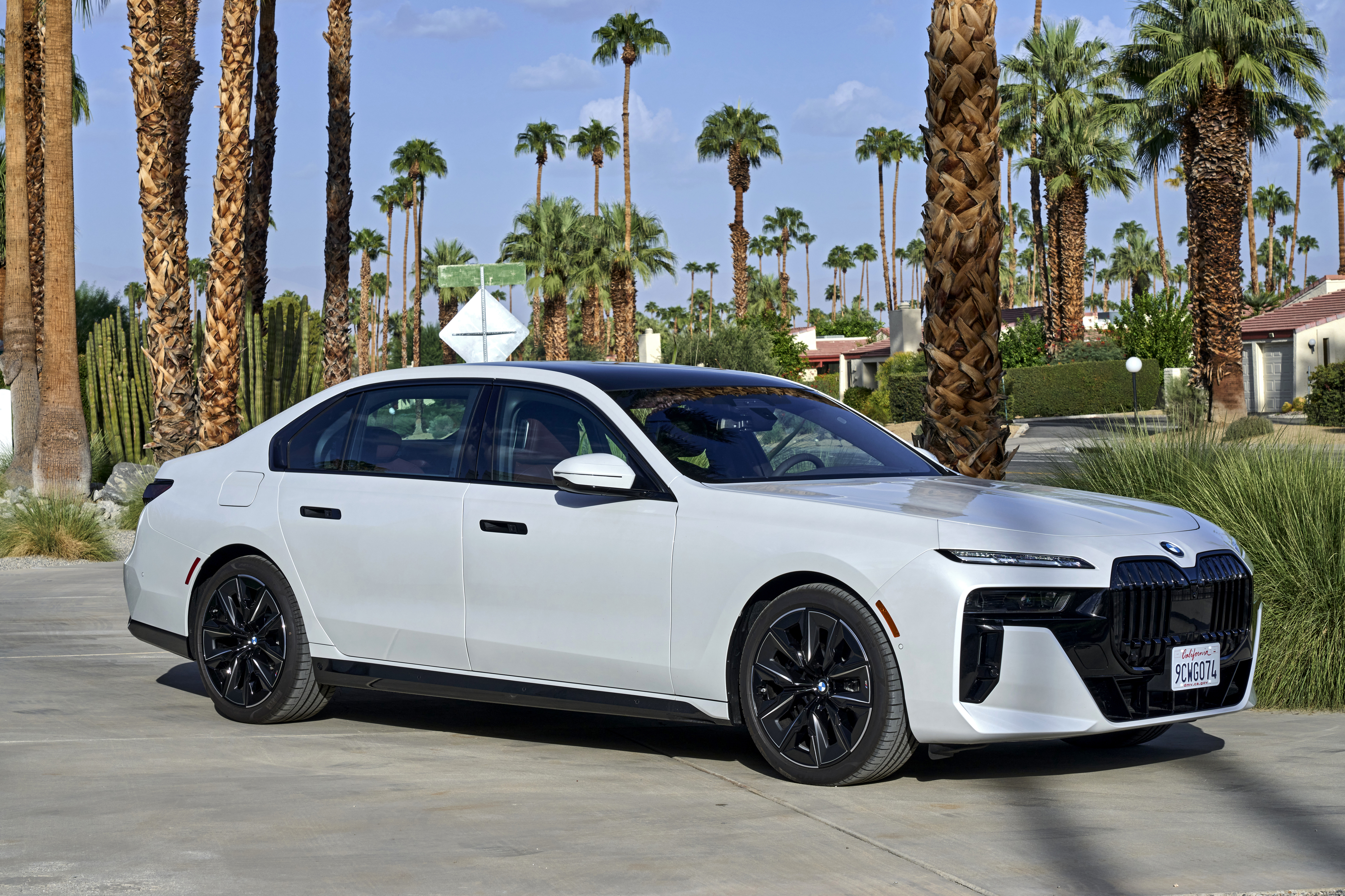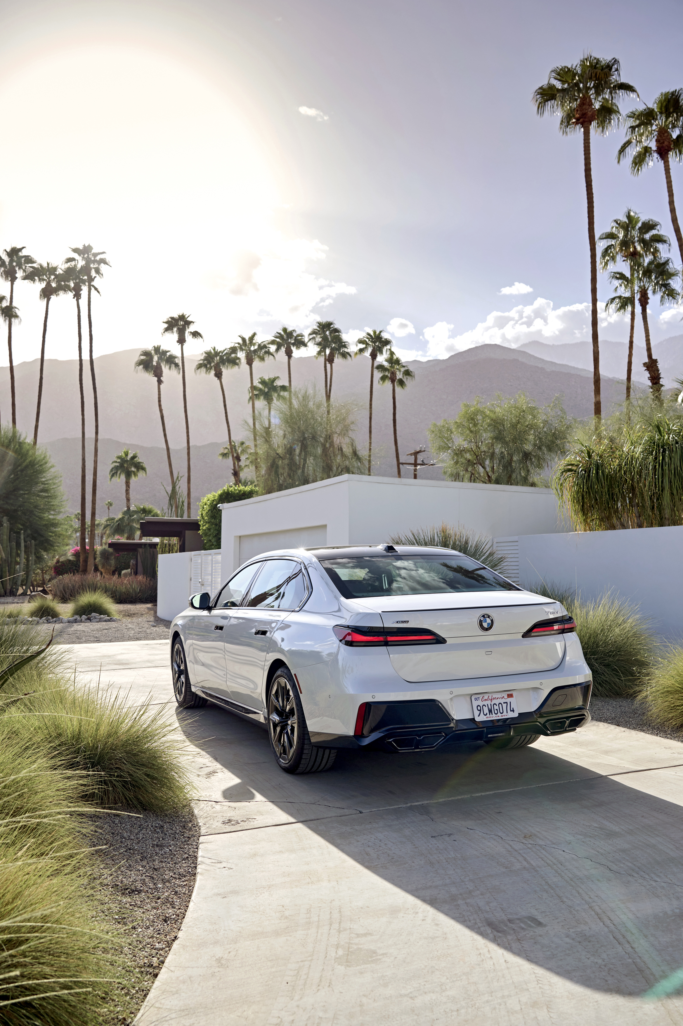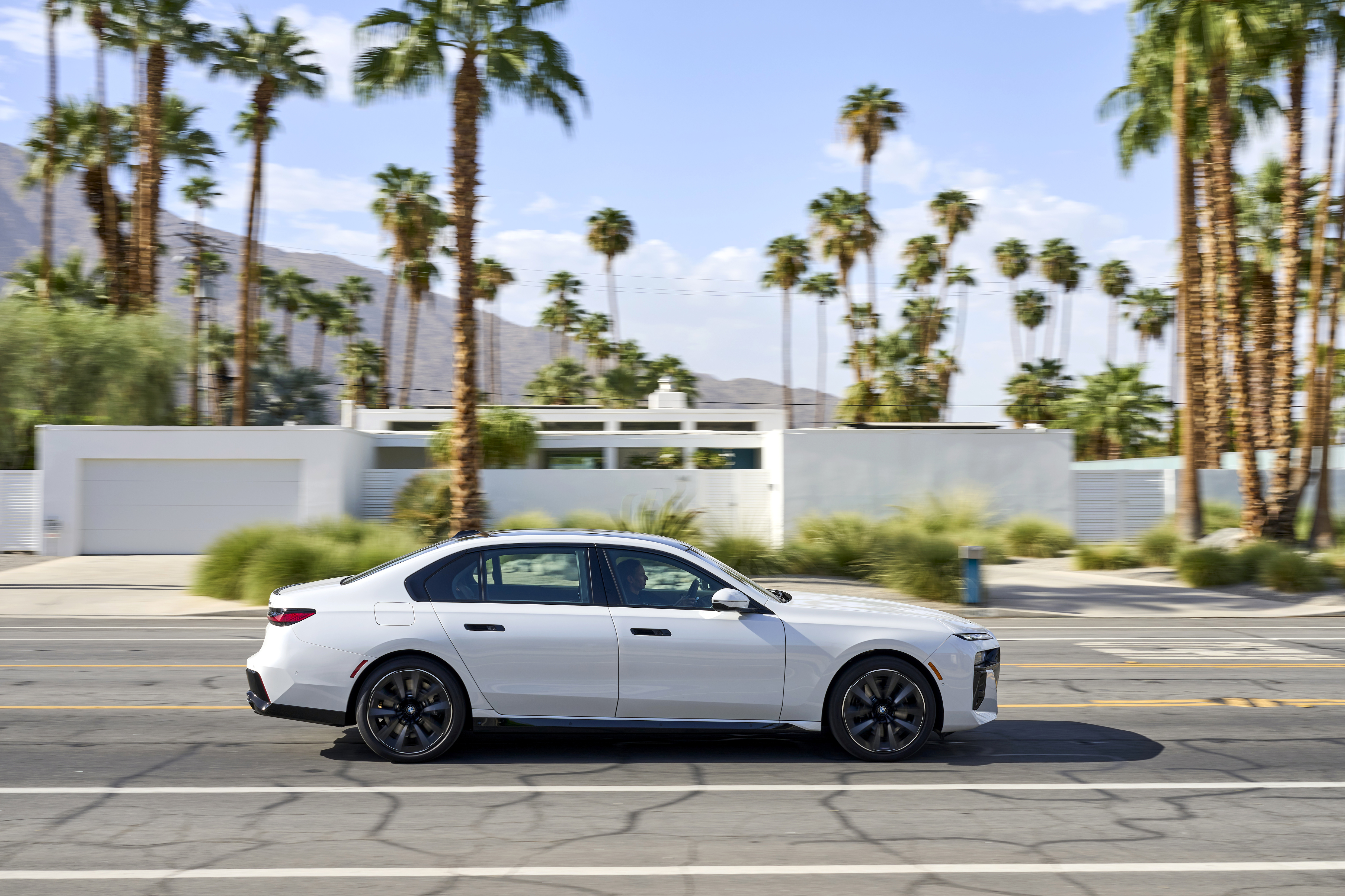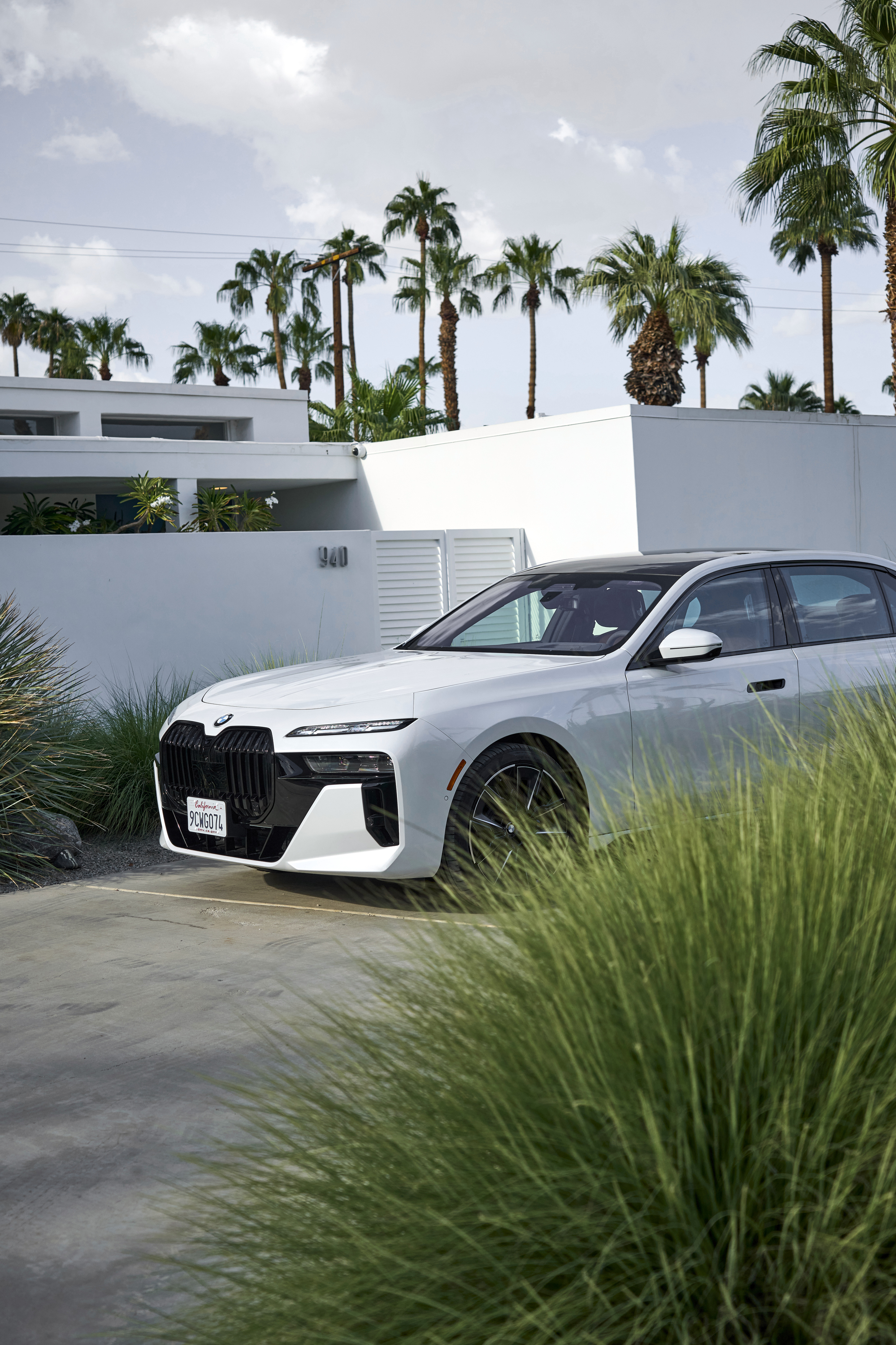 The new BMW 760i xDrive Mineral White Metallic On Location Palm Springs (10/2022).