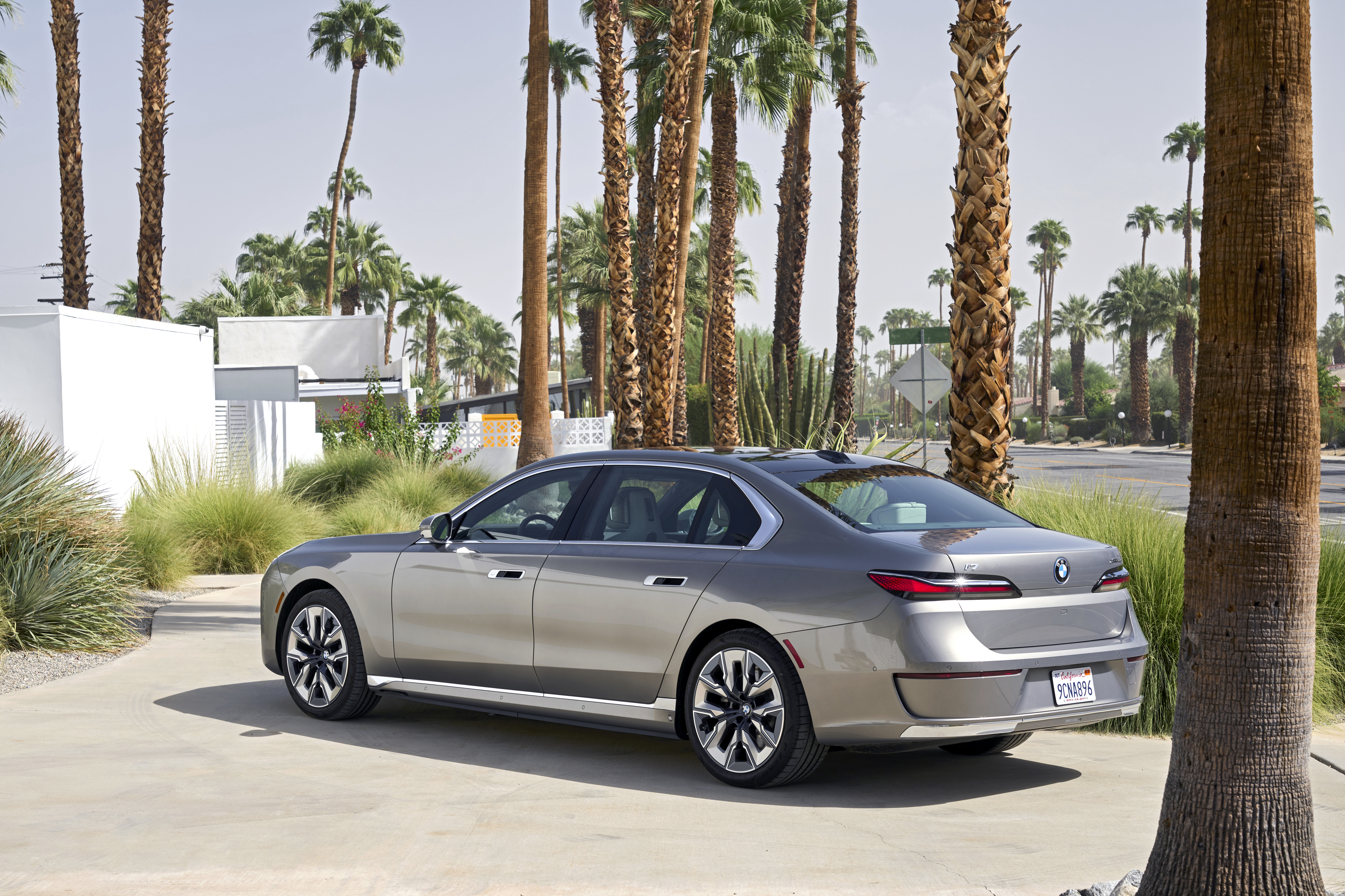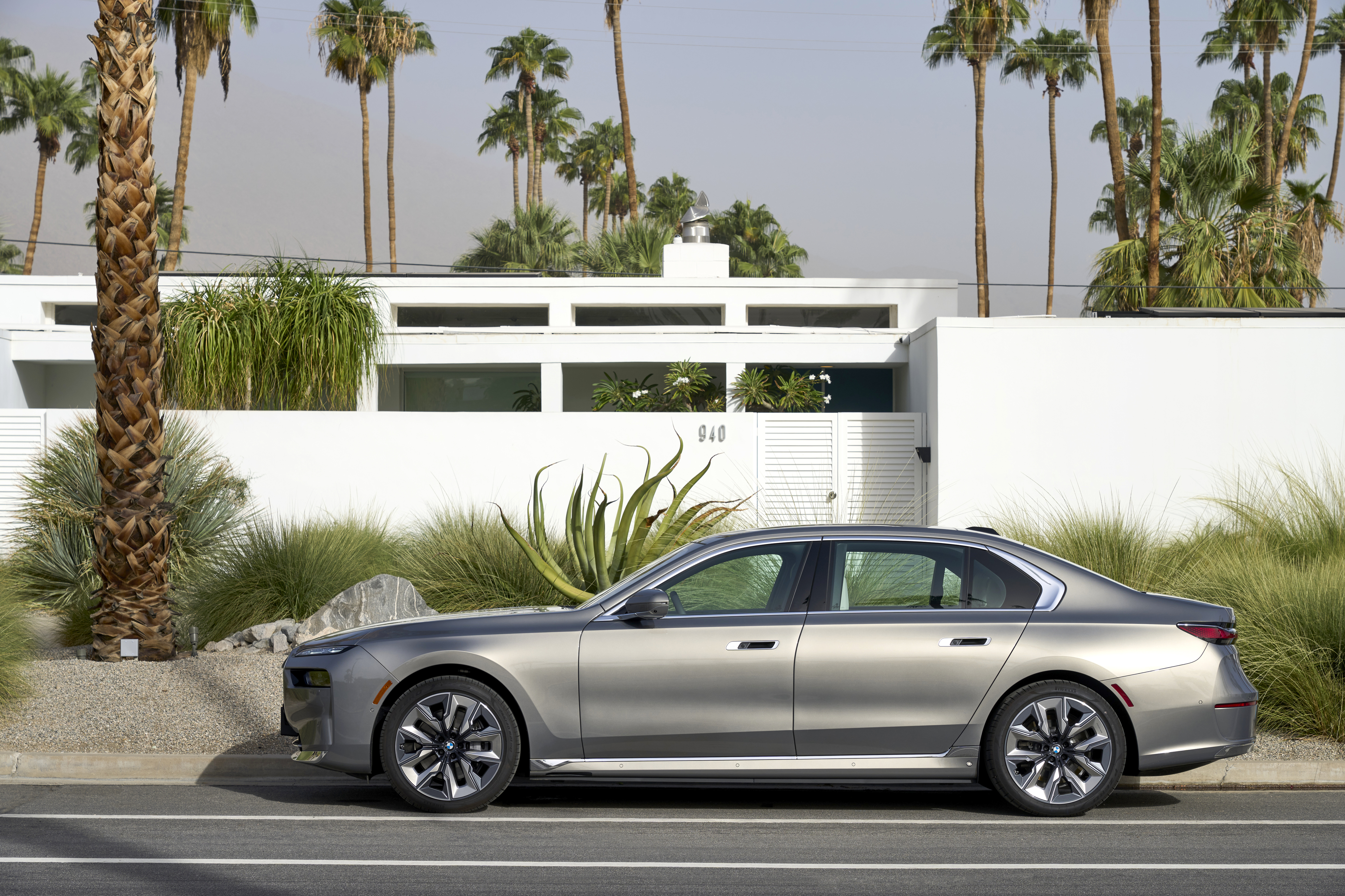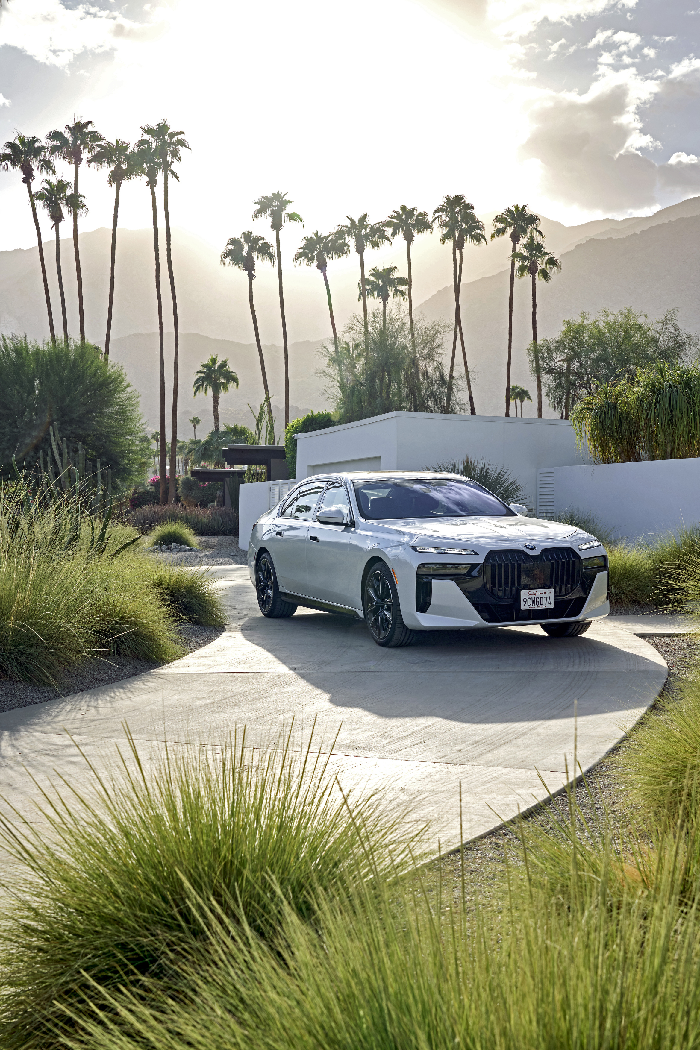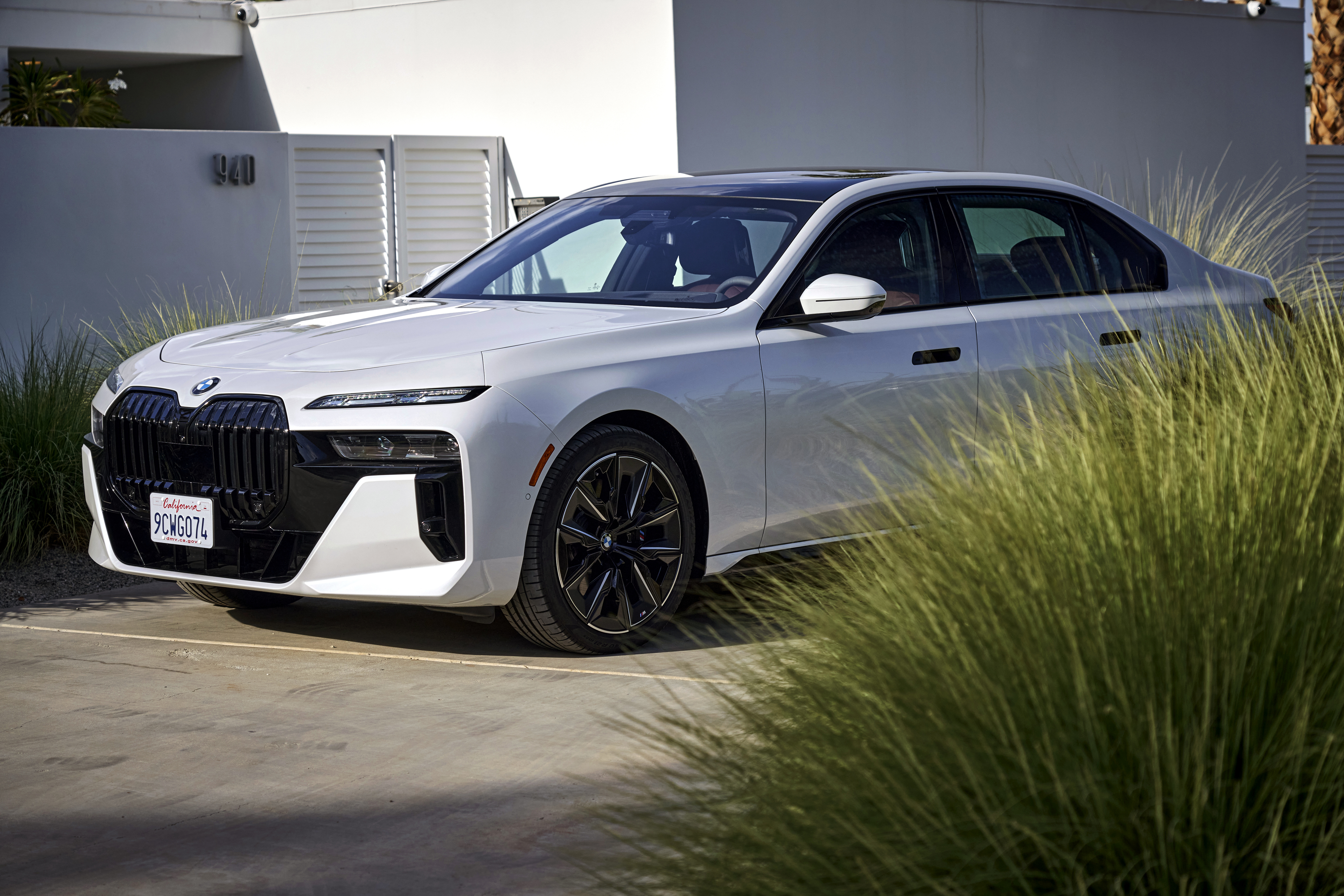 The new BMW 760i xDrive Mineral White Metallic On Location Palm Springs (10/2022).