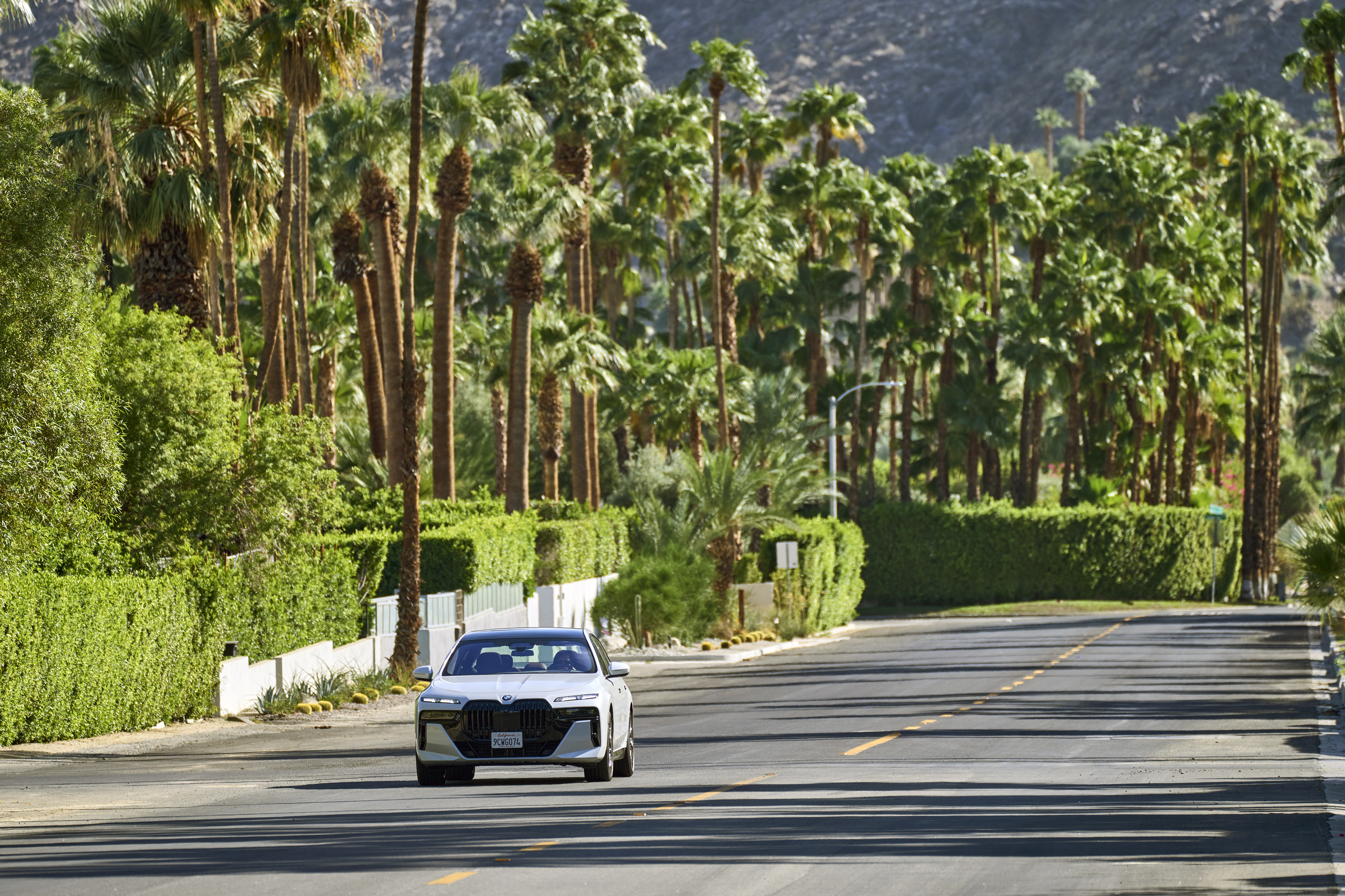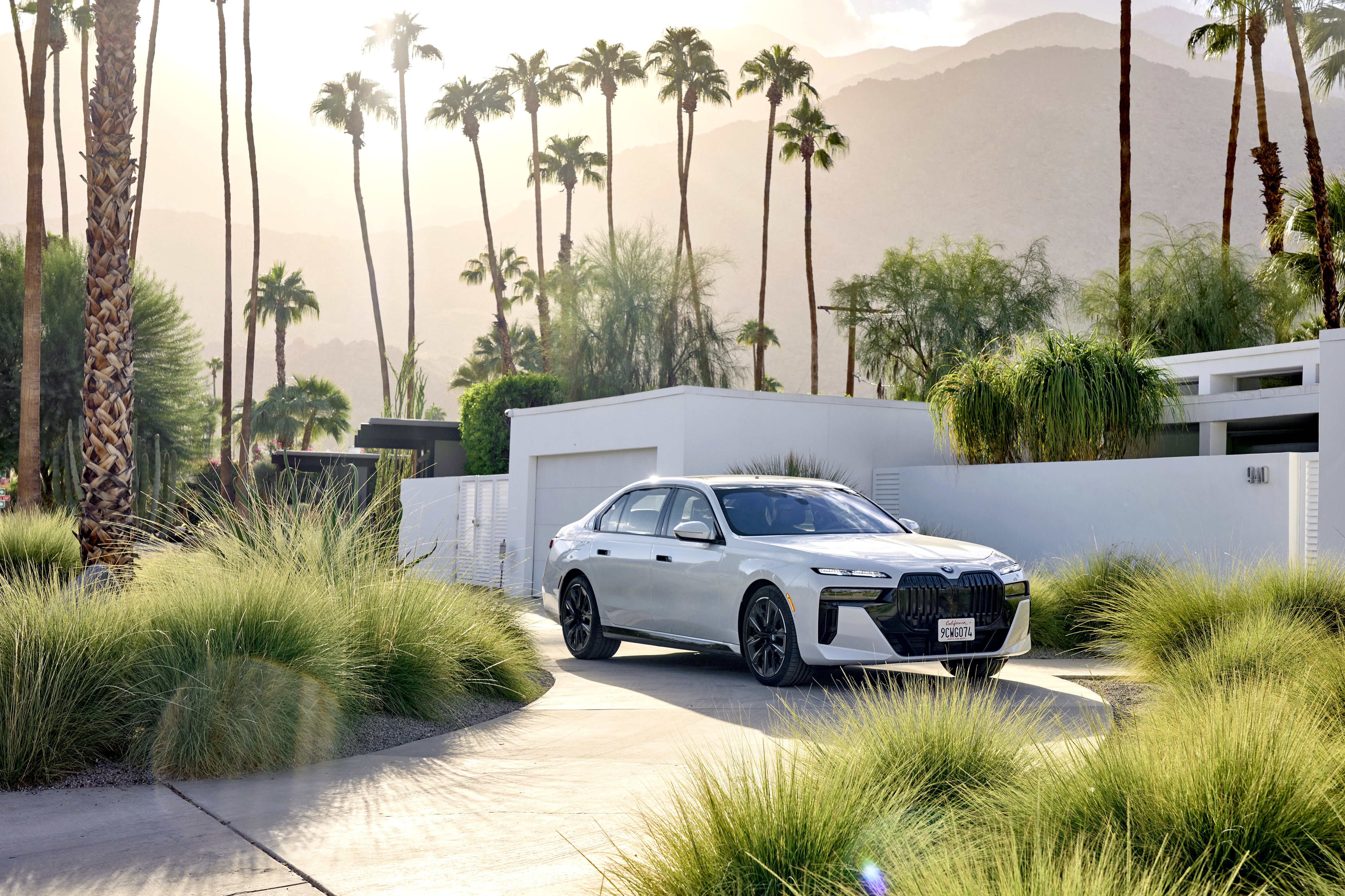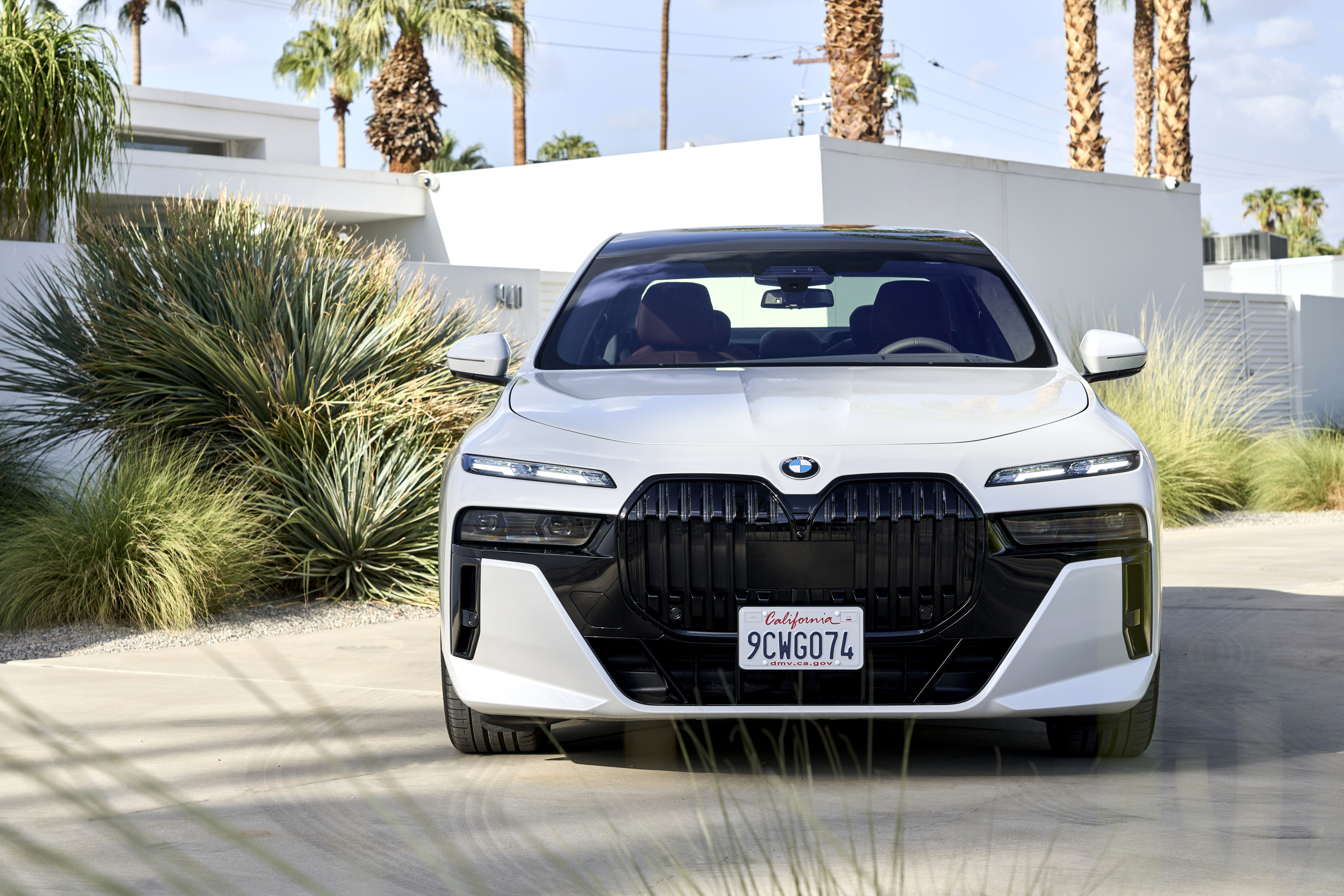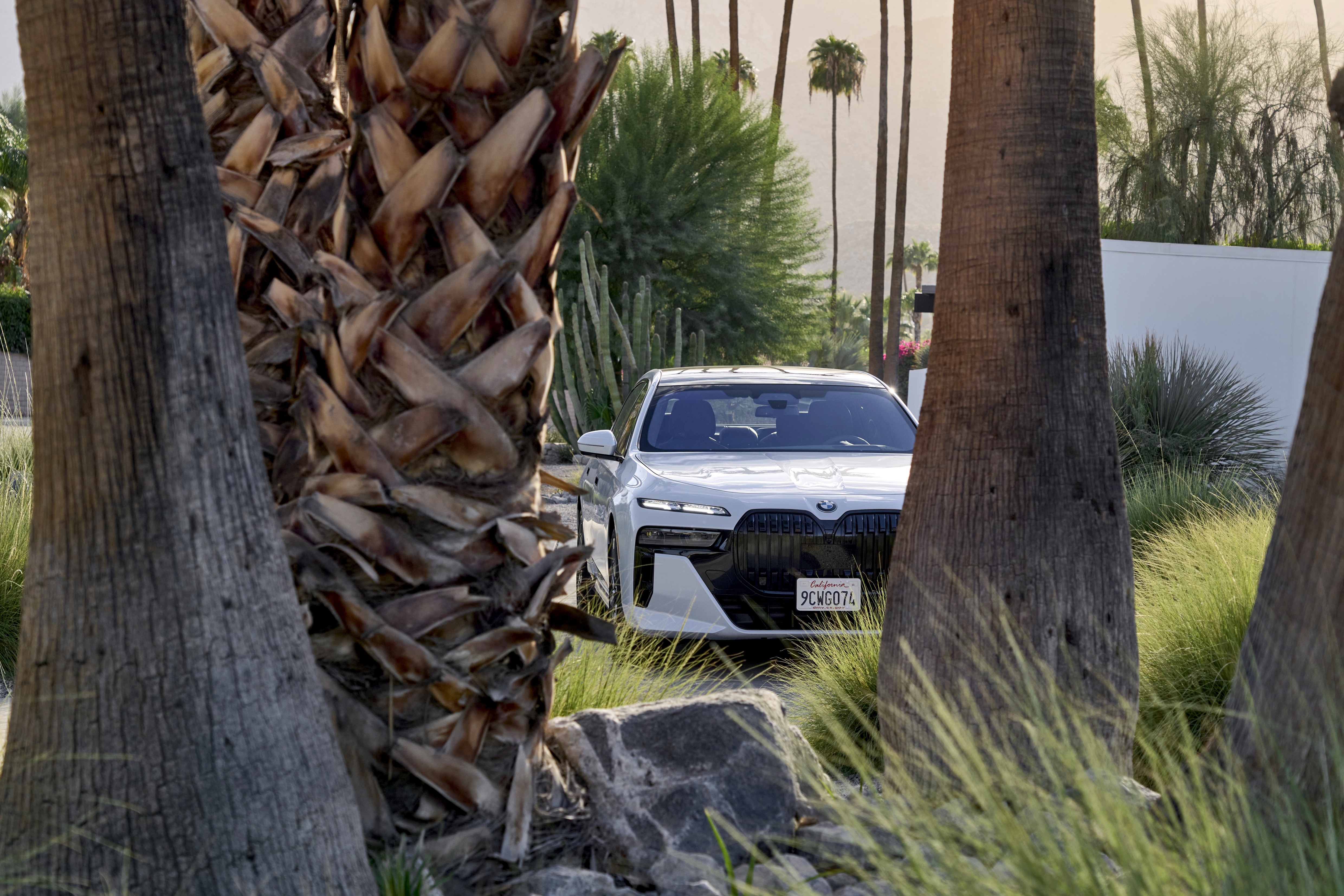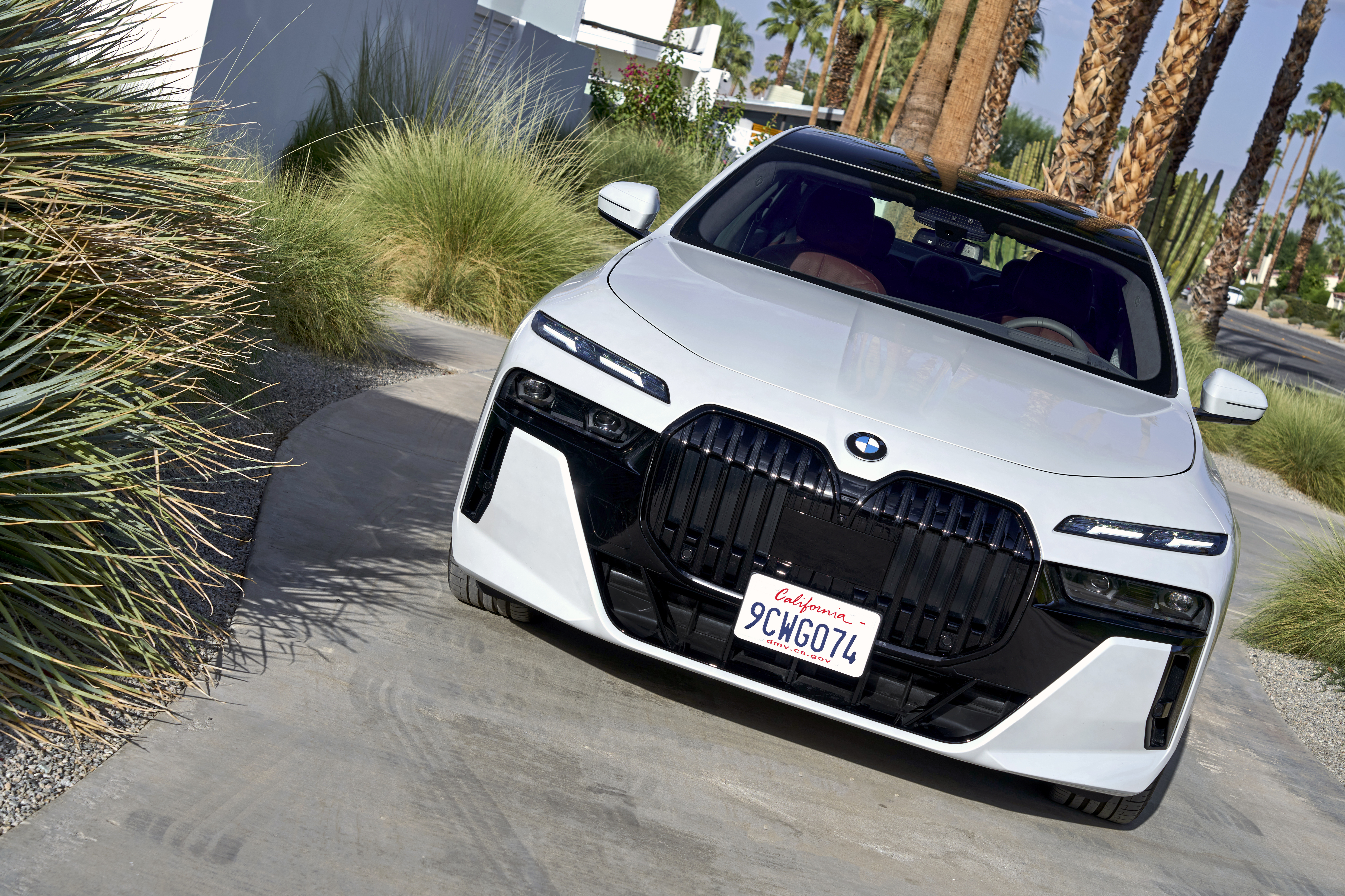 The new BMW 760i xDrive Mineral White Metallic On Location Palm Springs (10/2022).