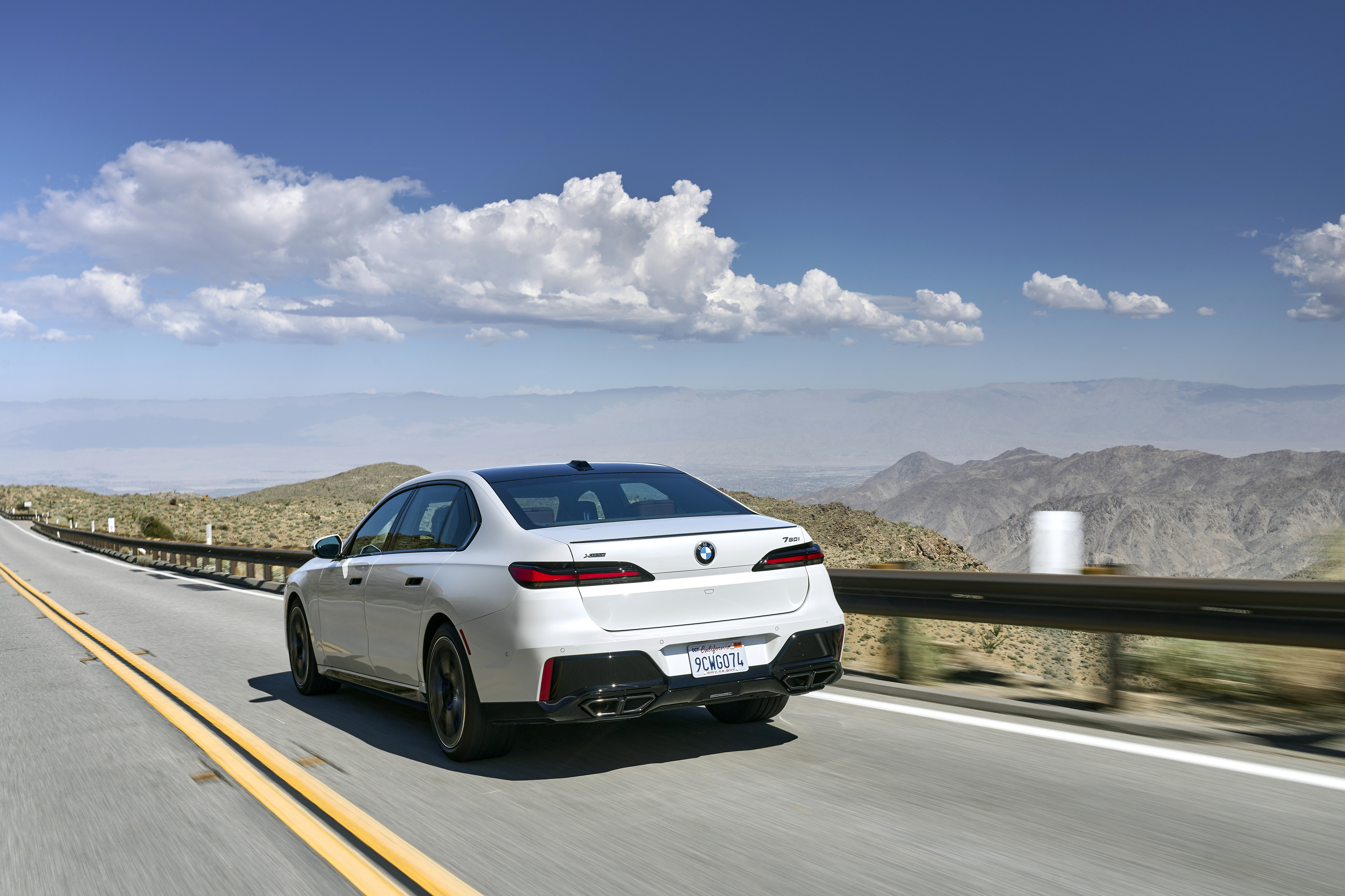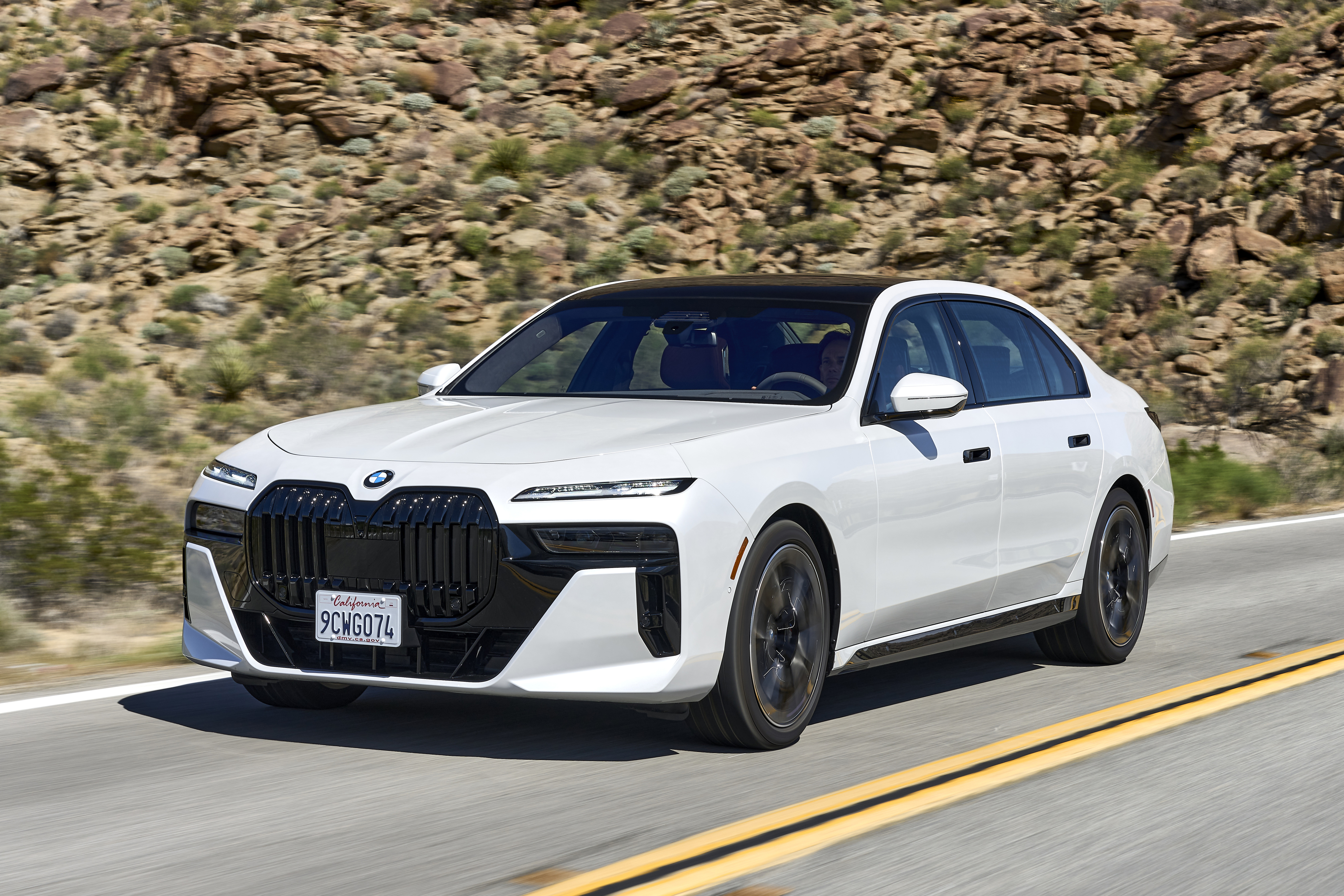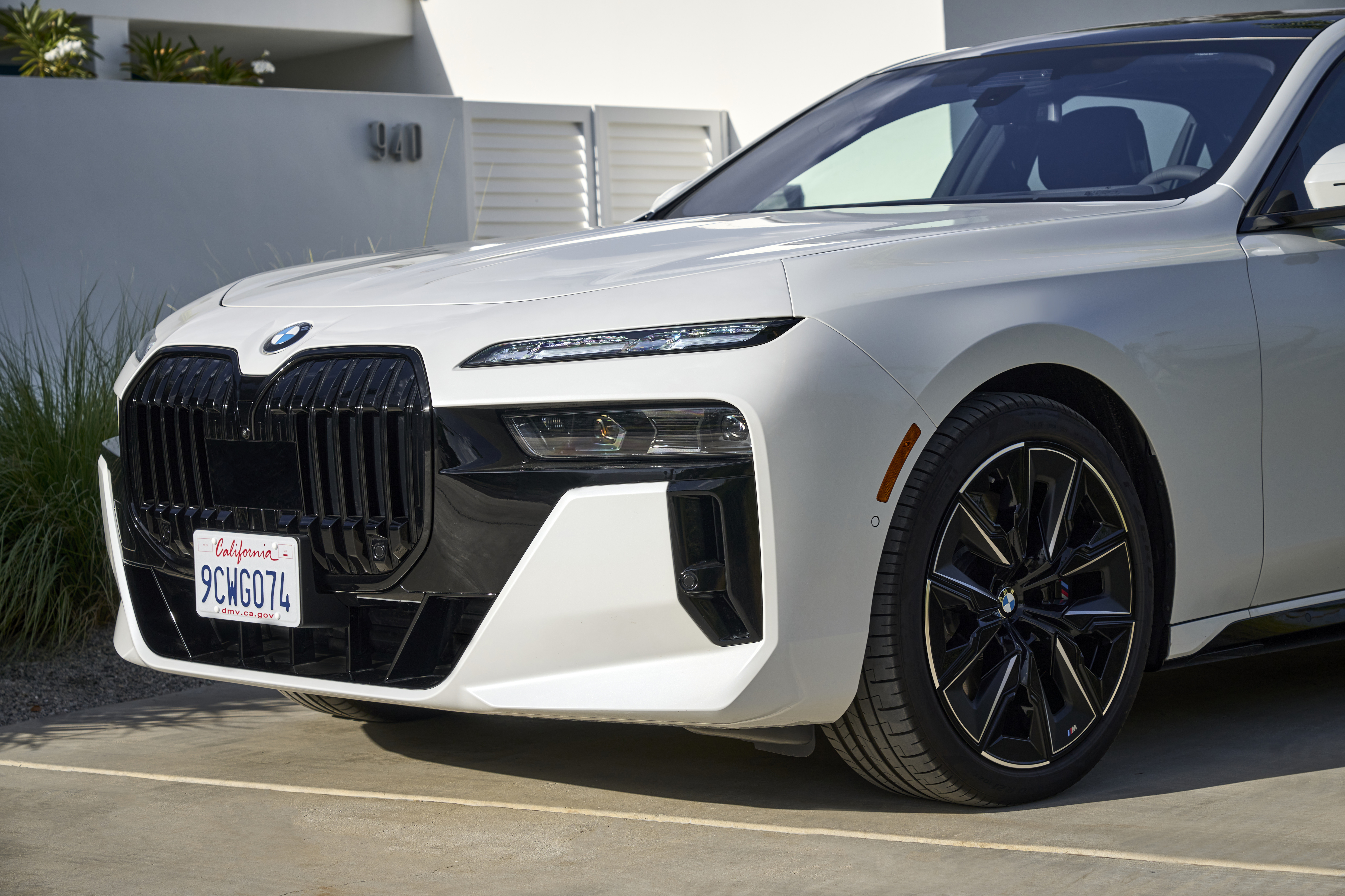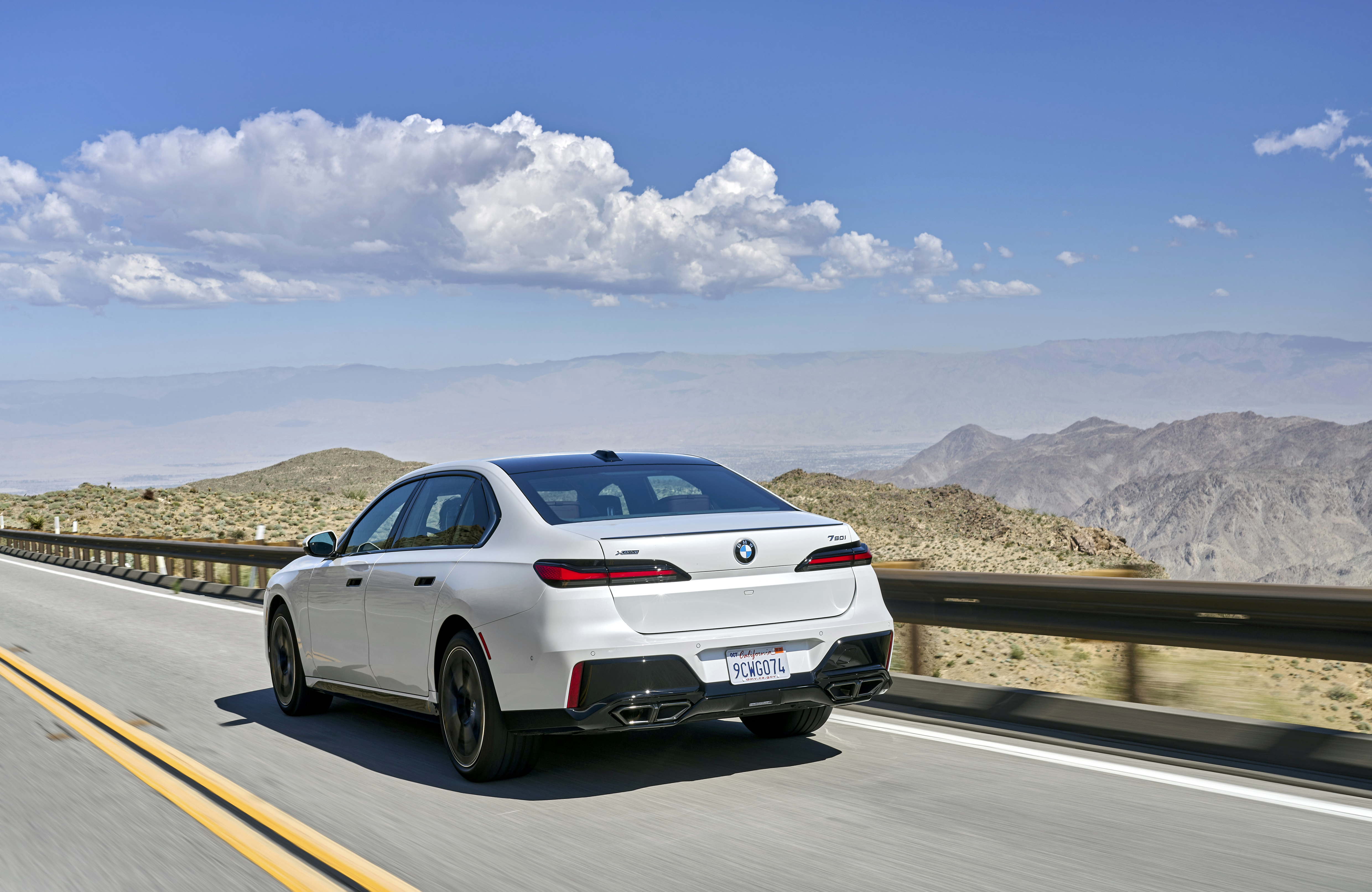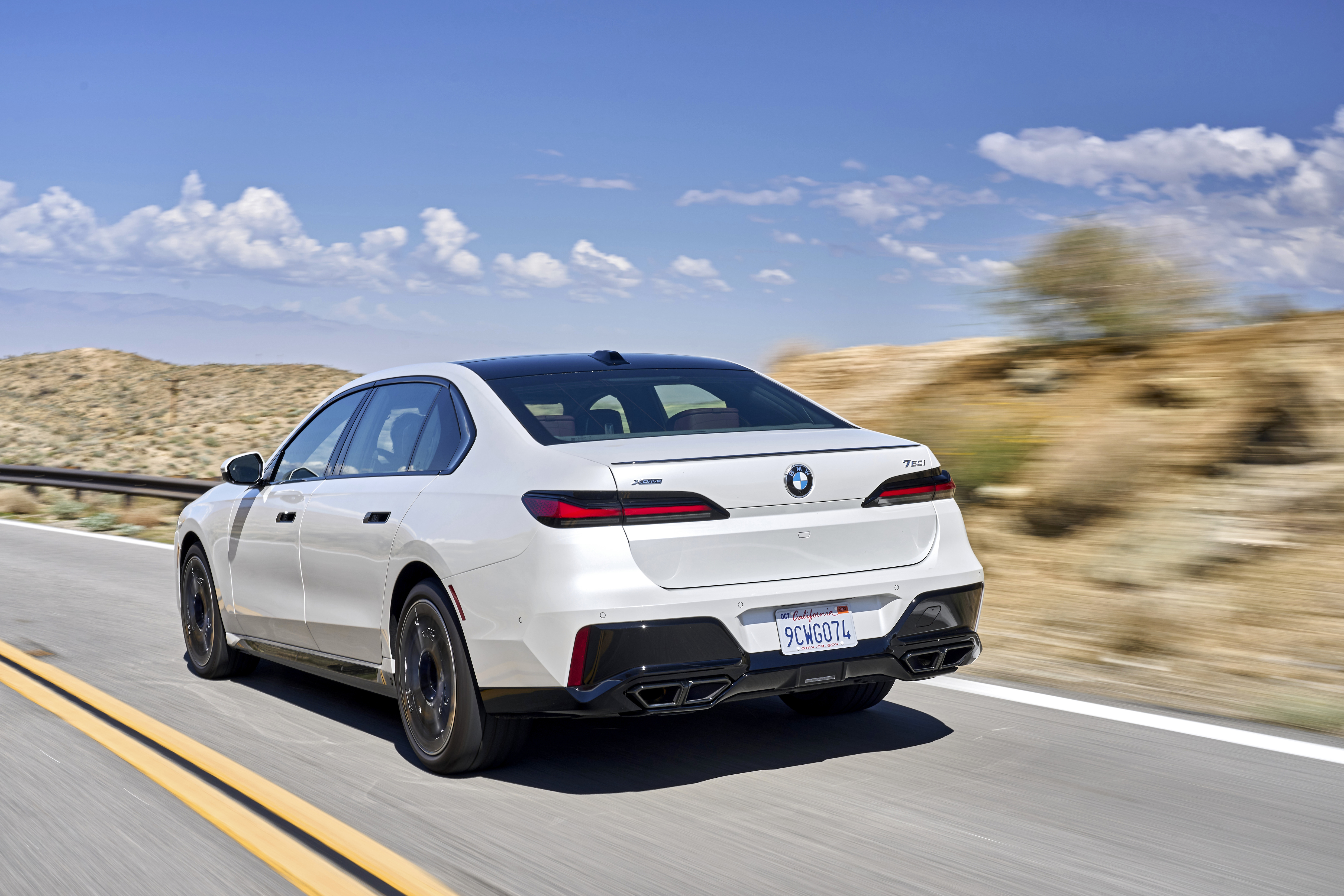 The new BMW 760i xDrive Mineral White Metallic On Location Palm Springs (10/2022).