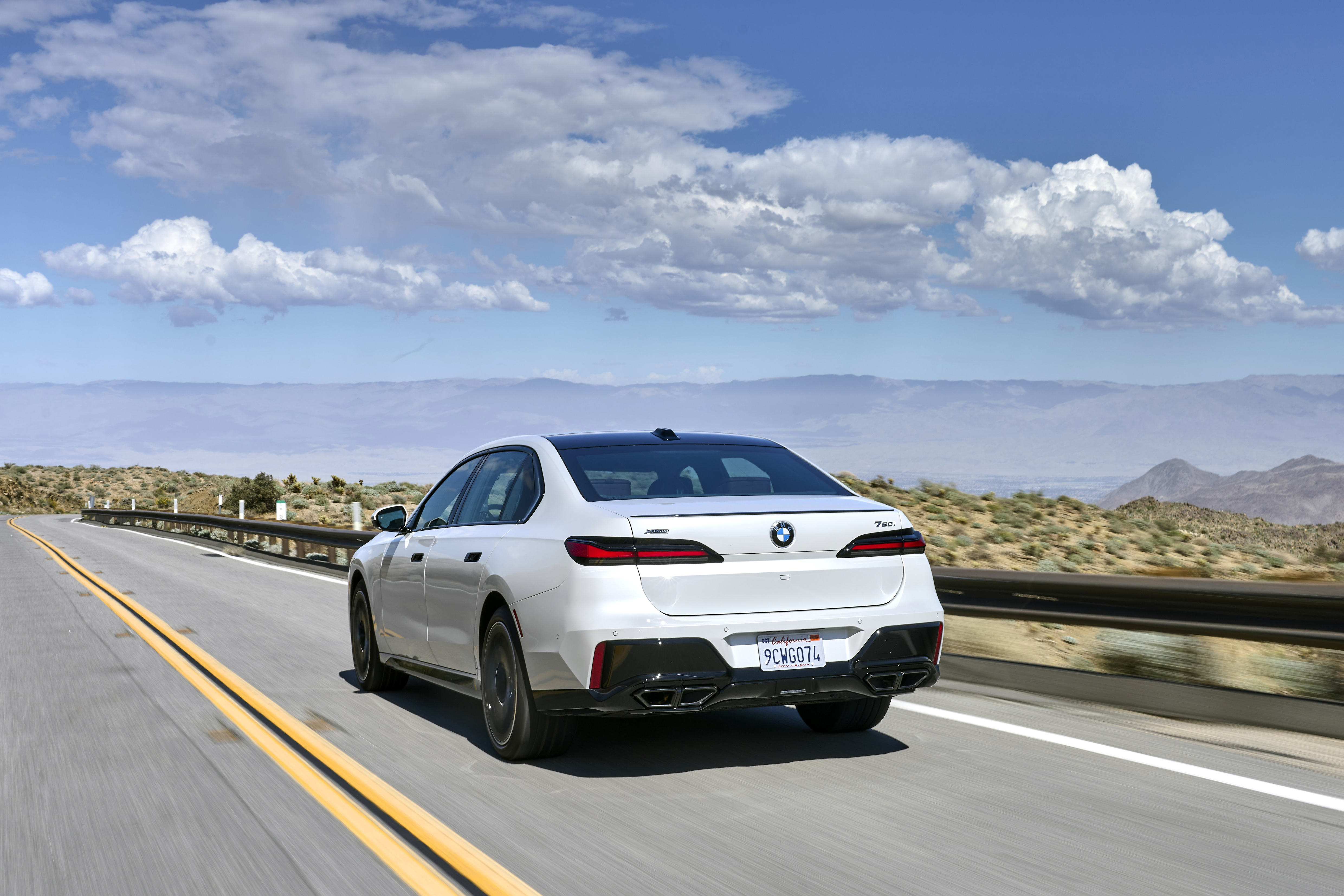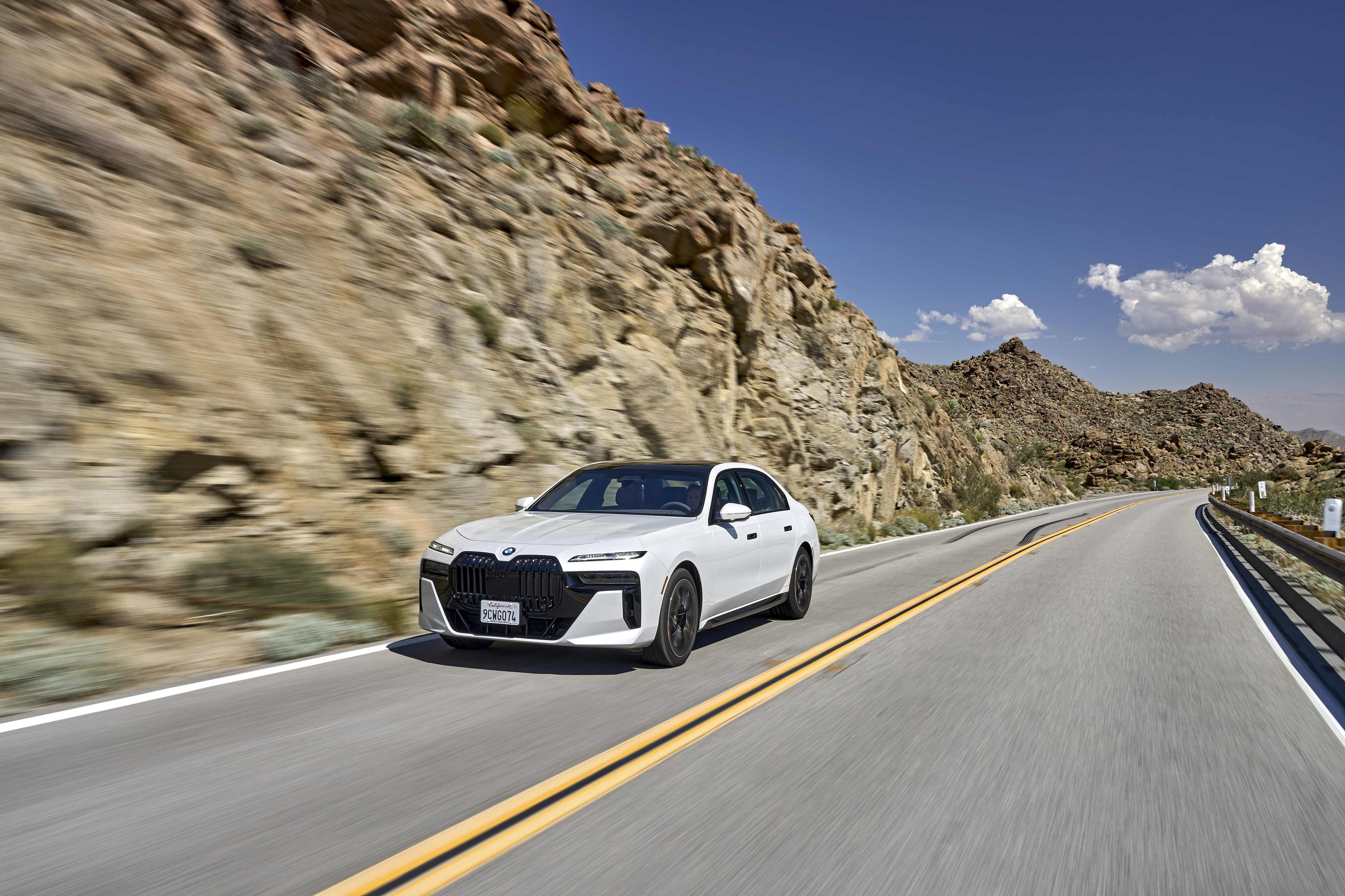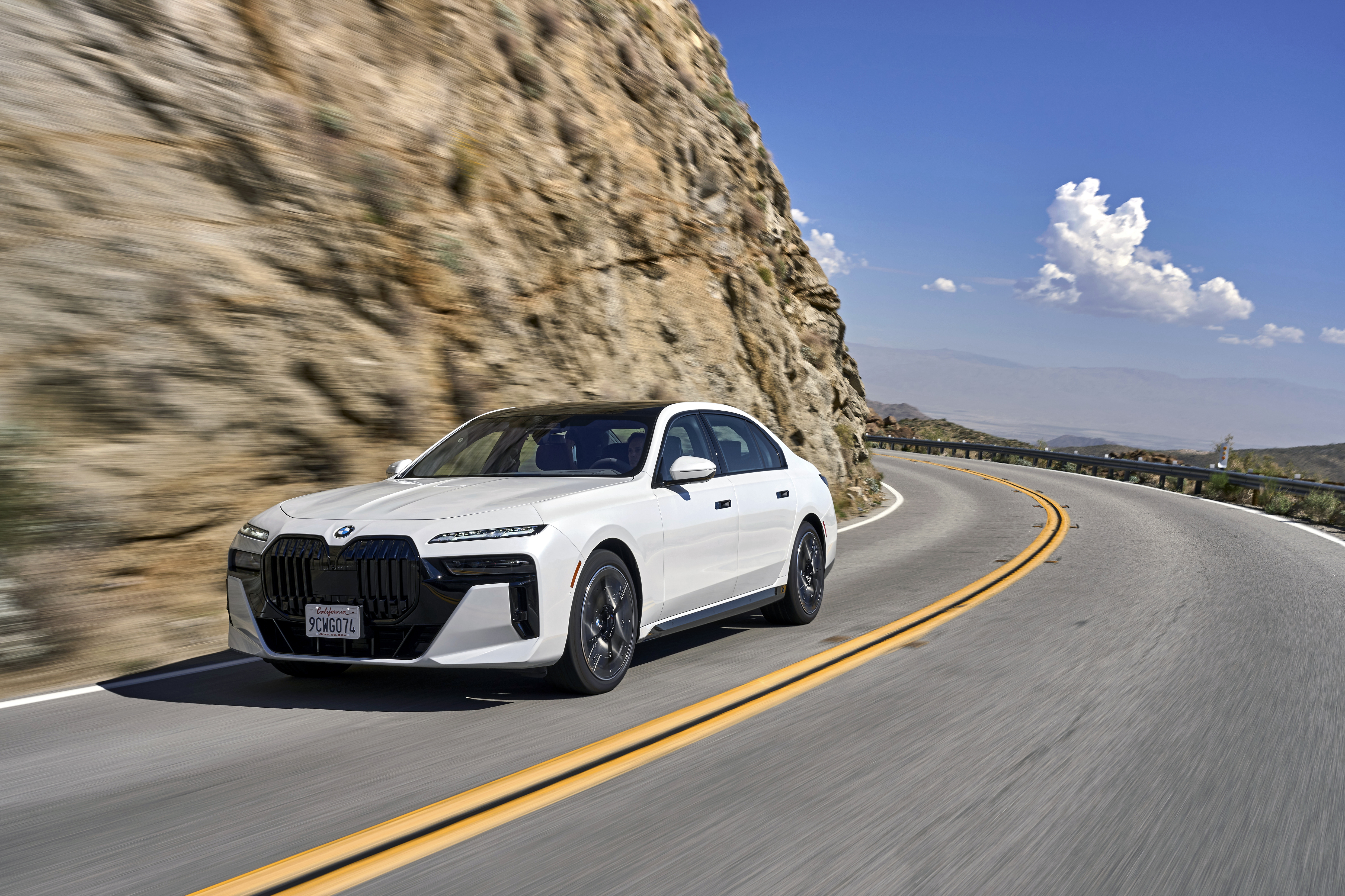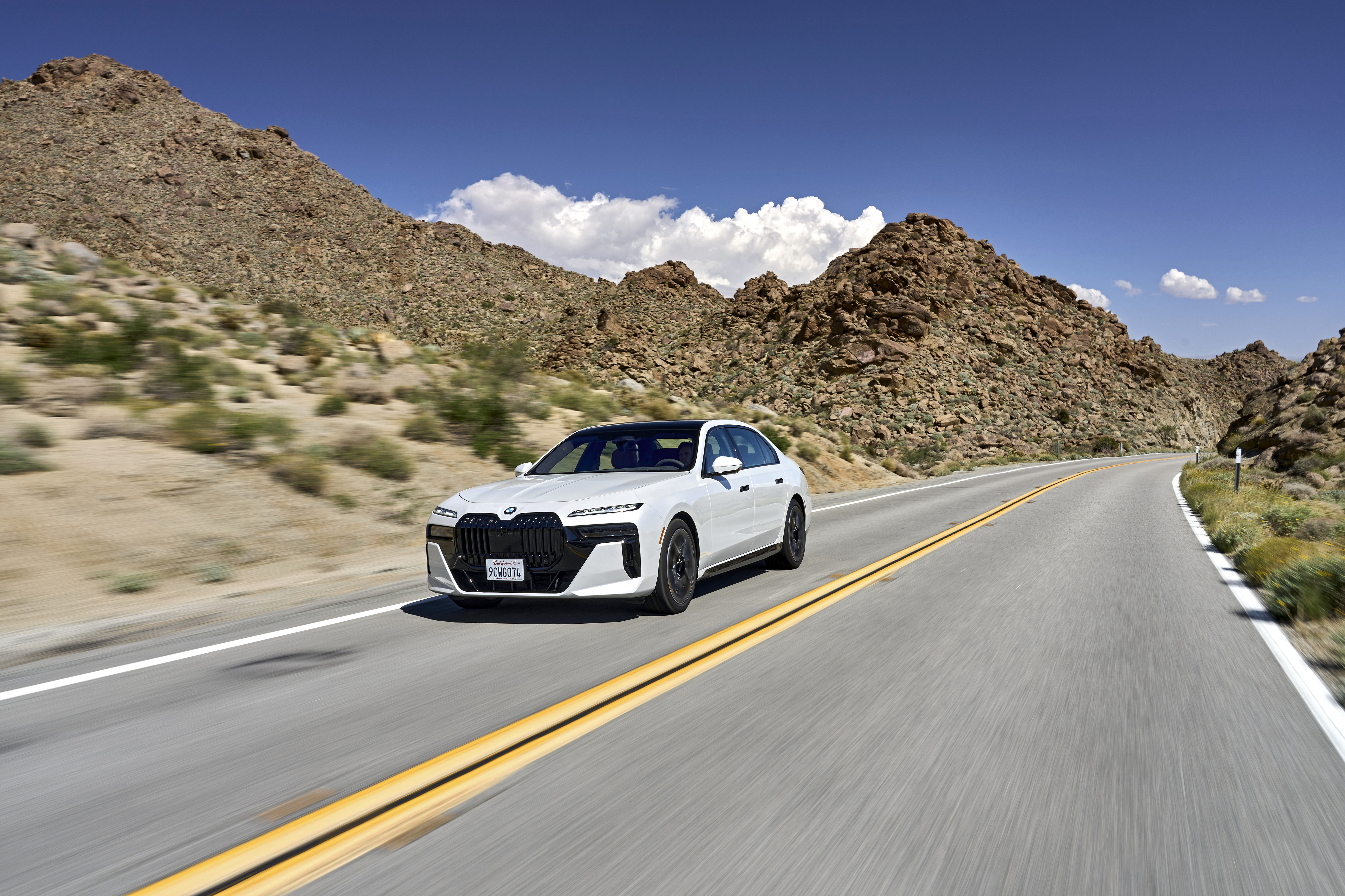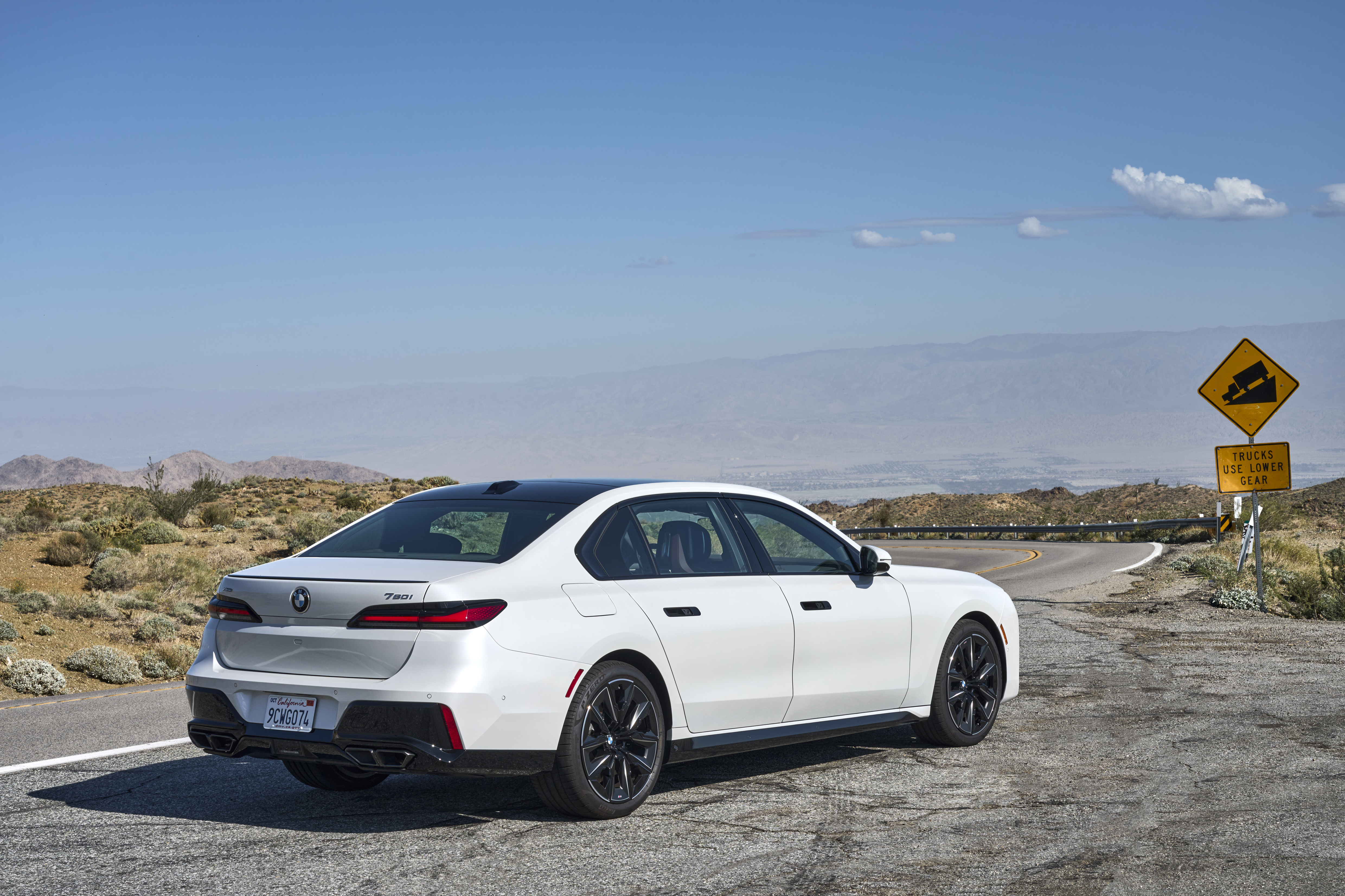 The new BMW 760i xDrive Mineral White Metallic On Location Palm Springs (10/2022).