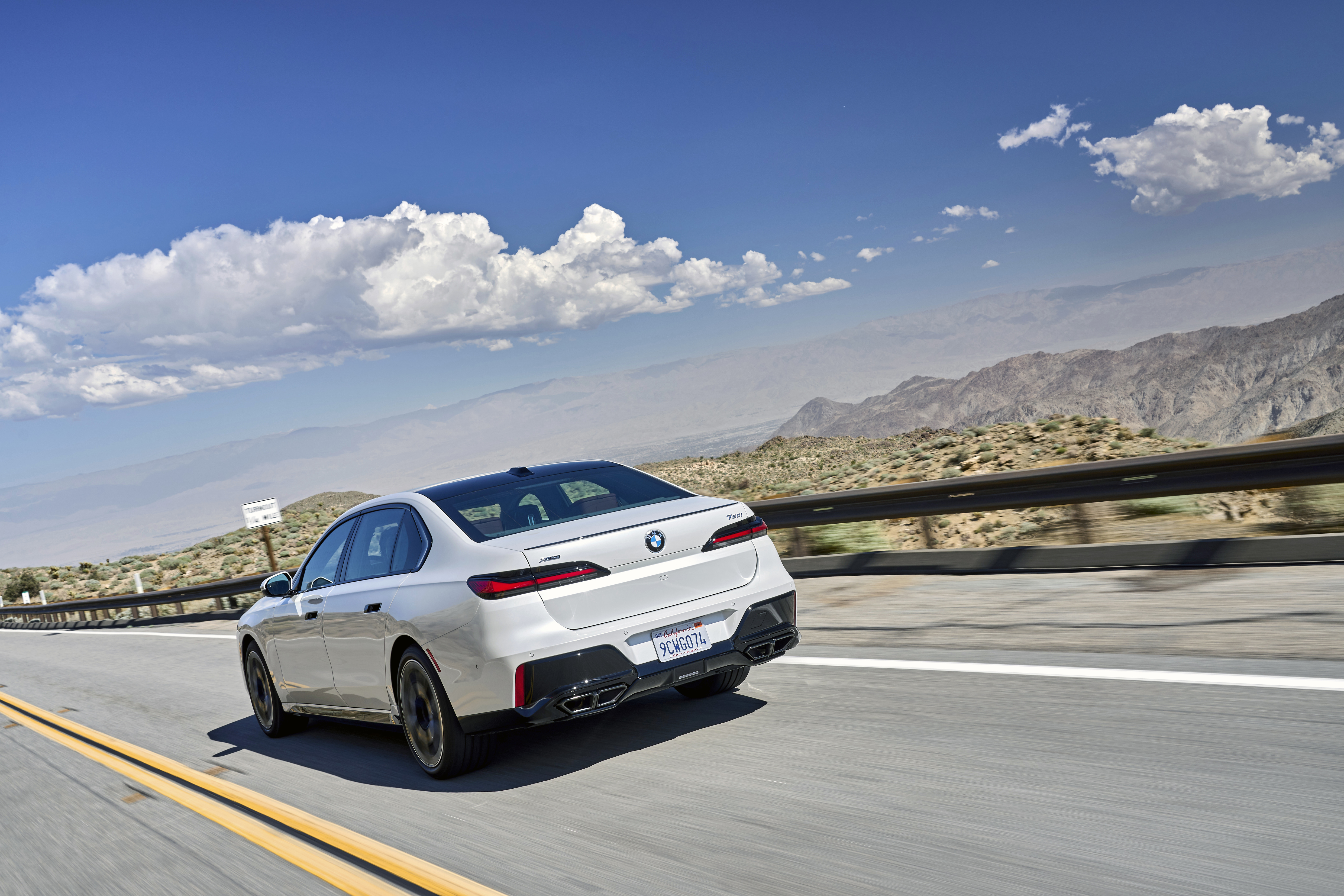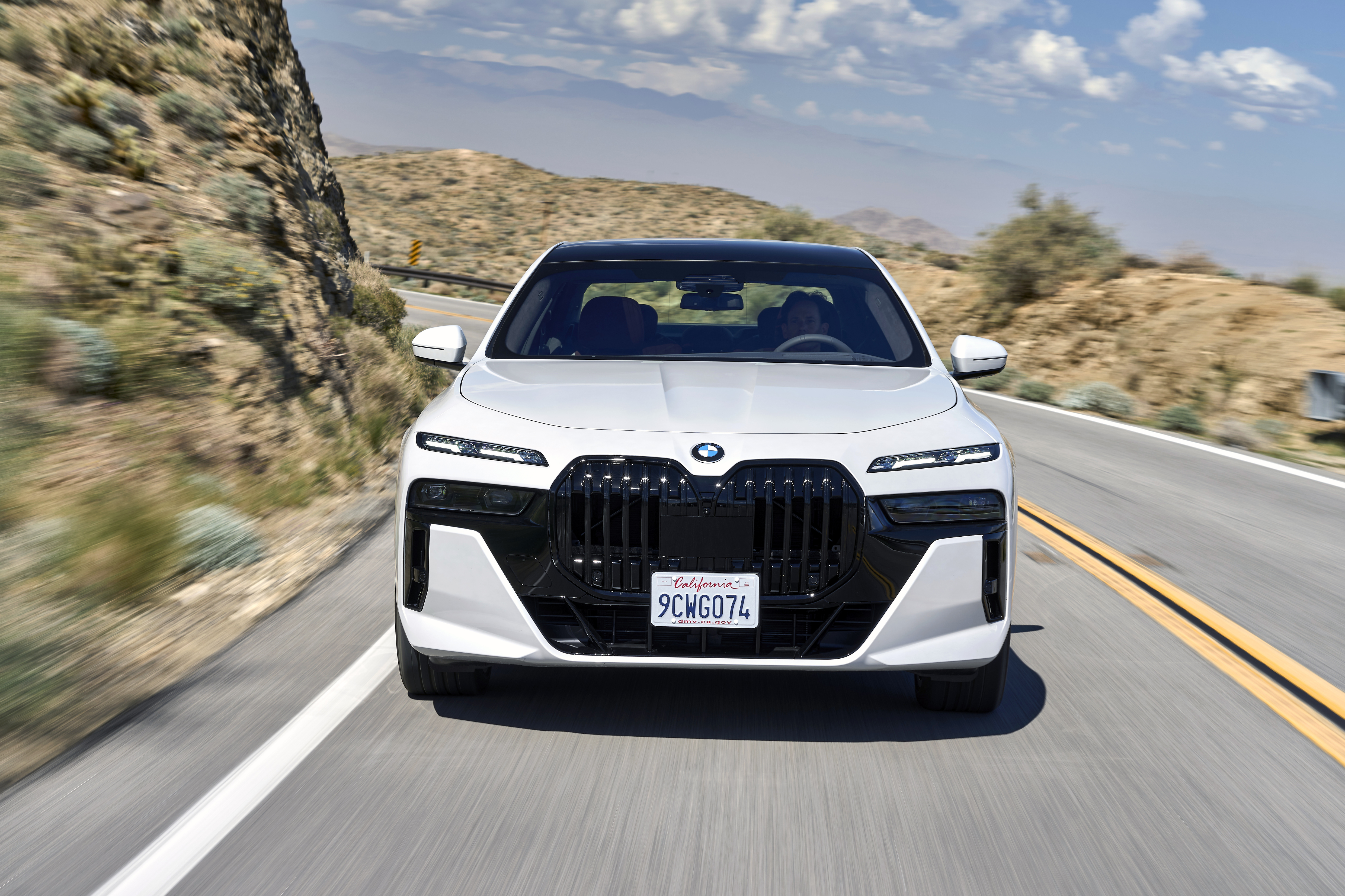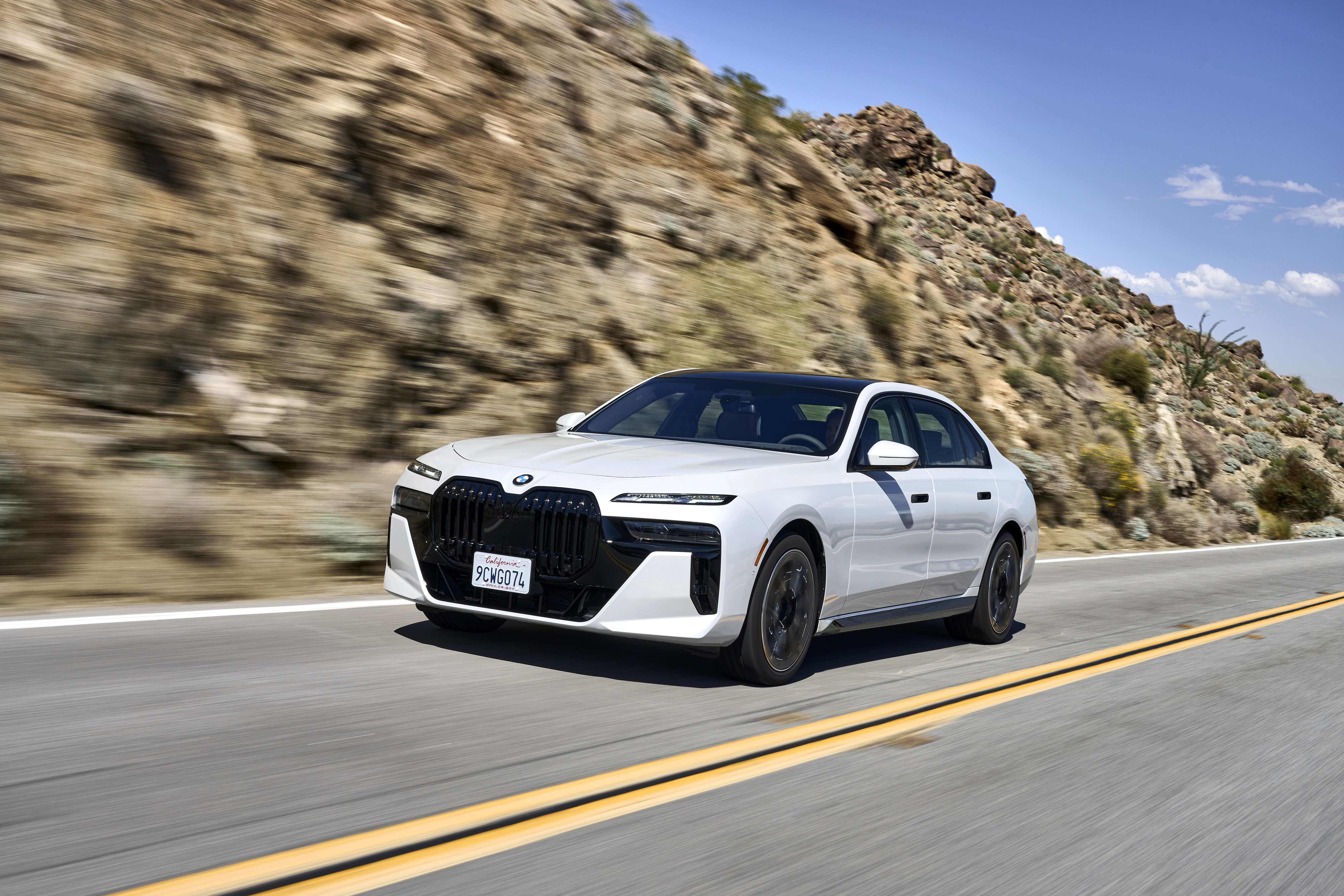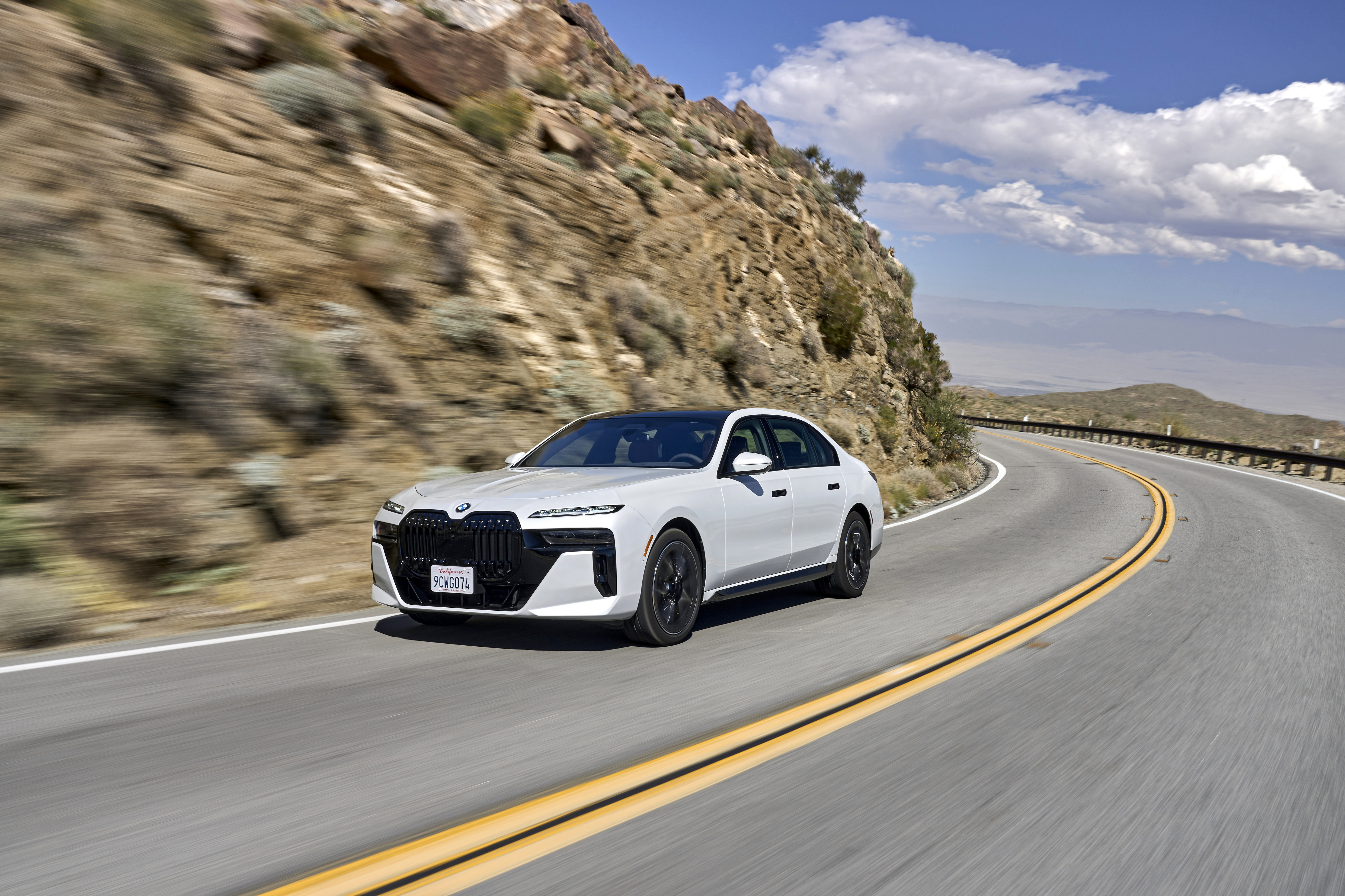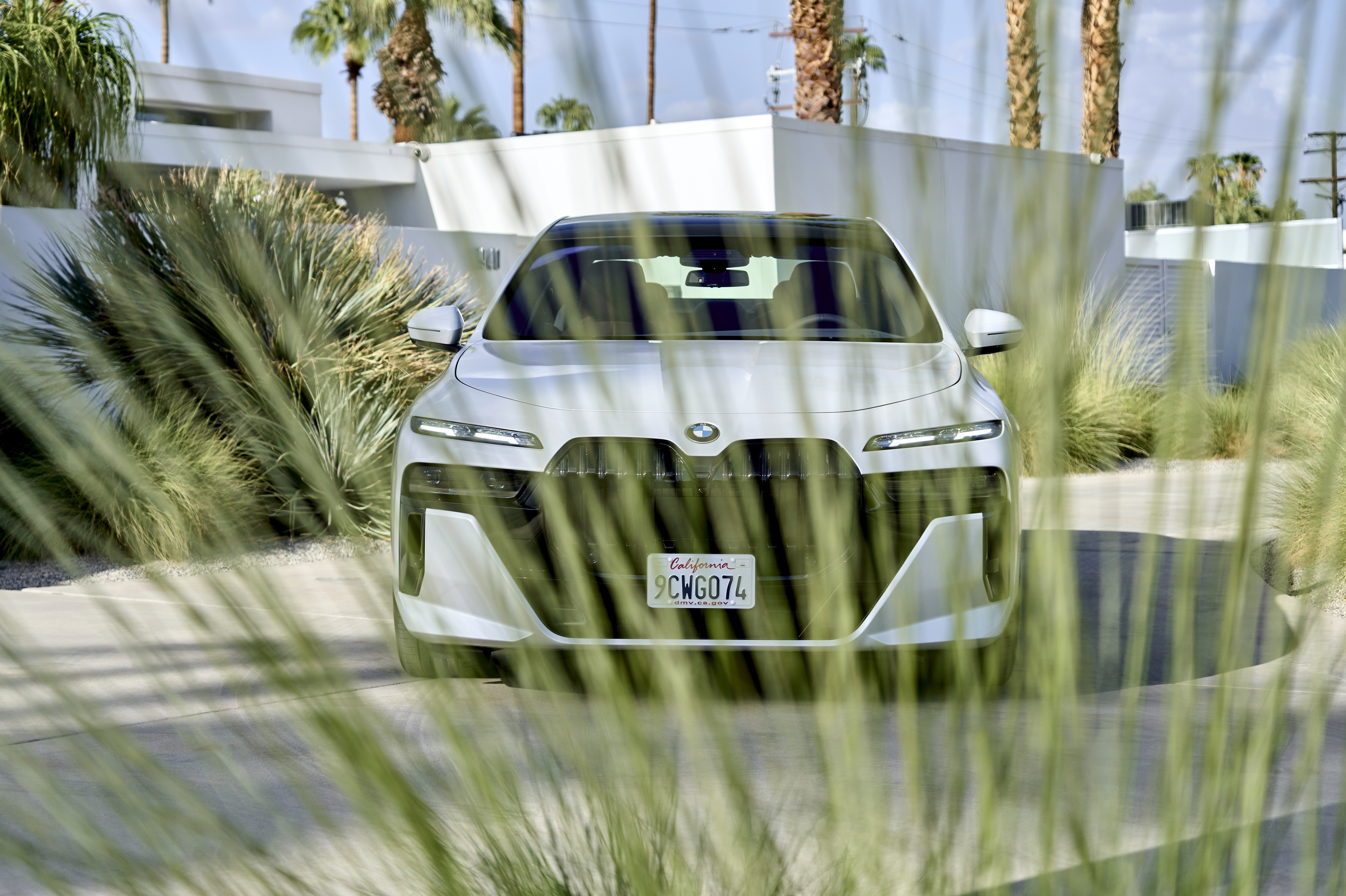 The new BMW 760i xDrive Mineral White Metallic On Location Palm Springs (10/2022).