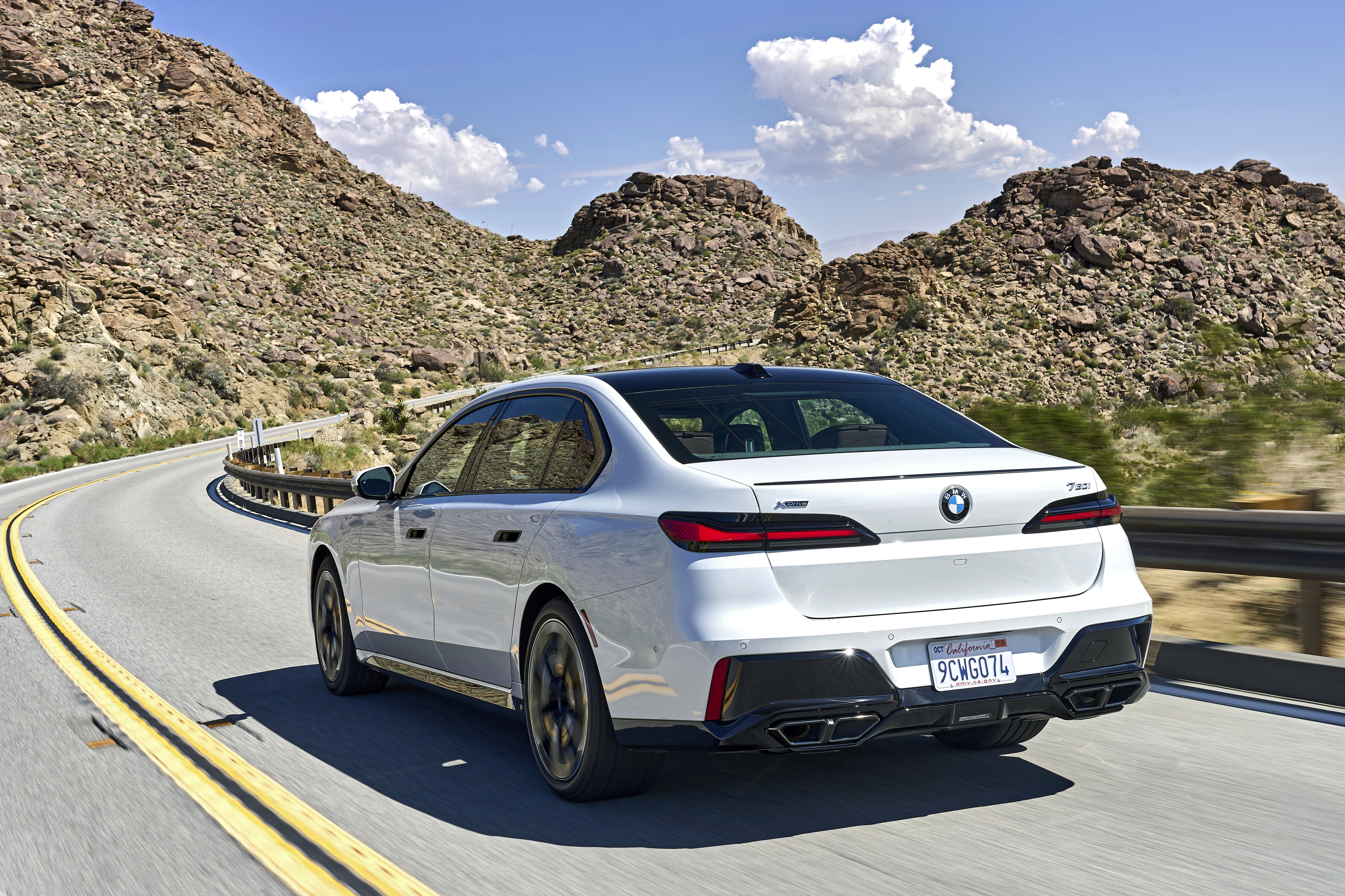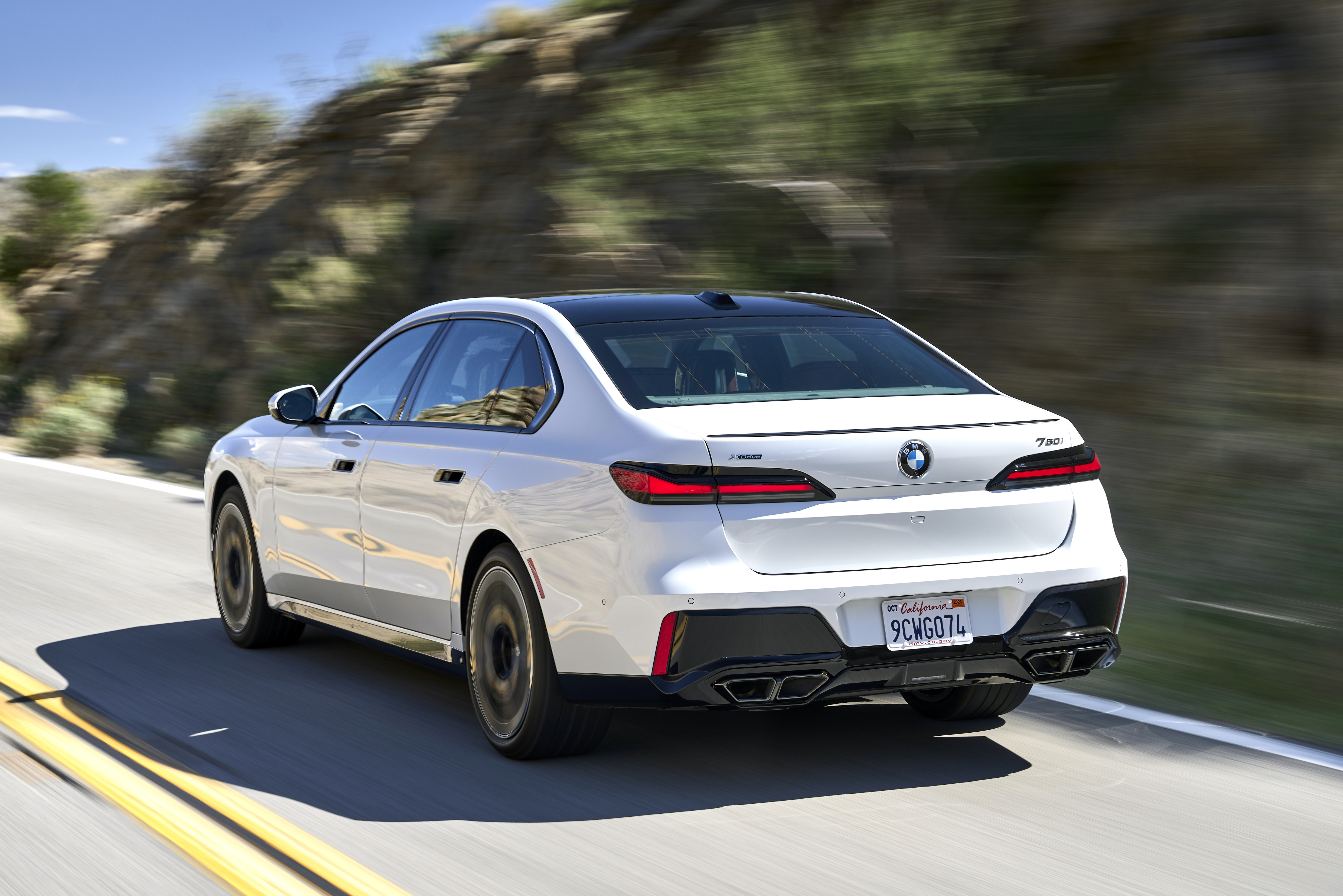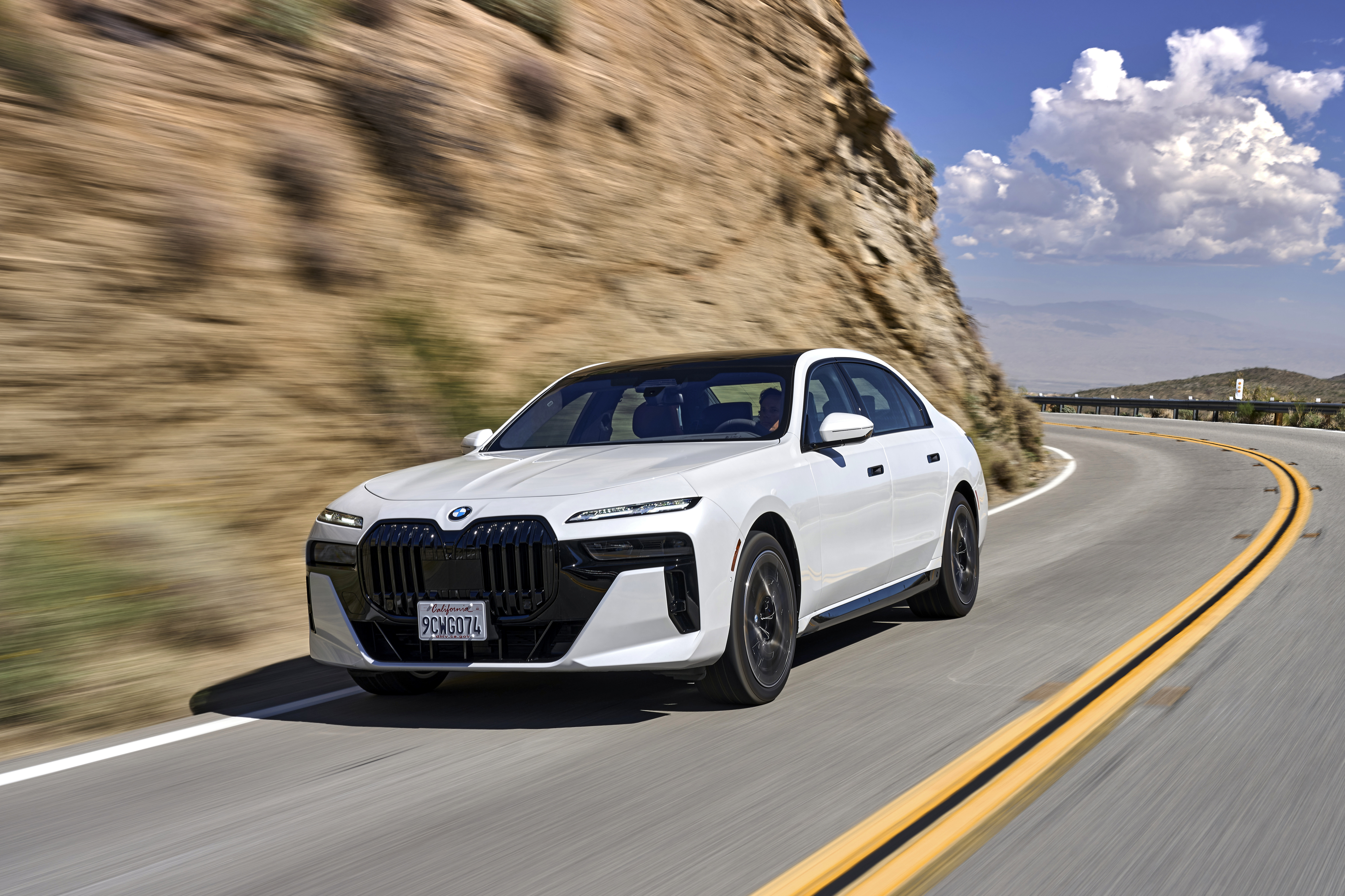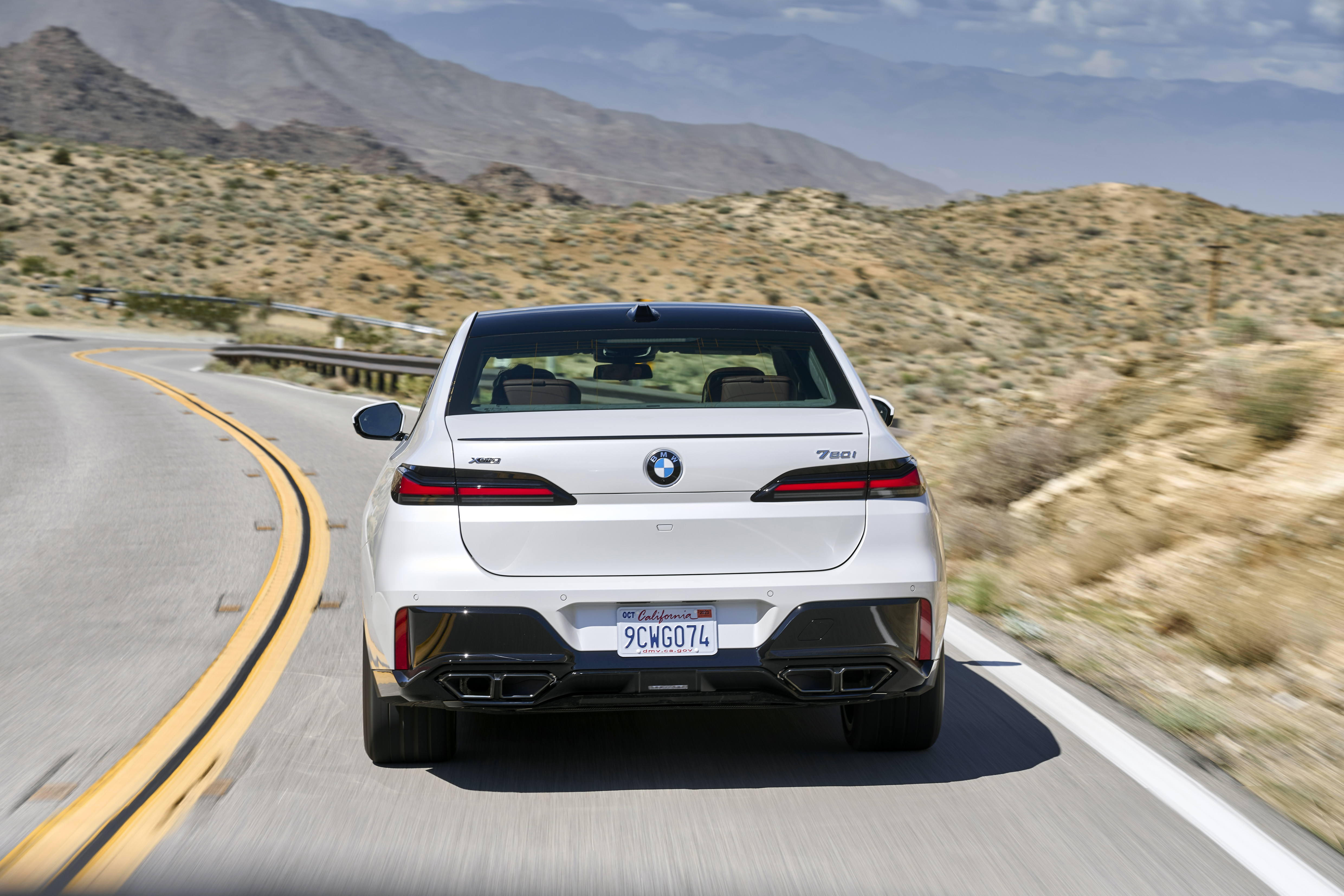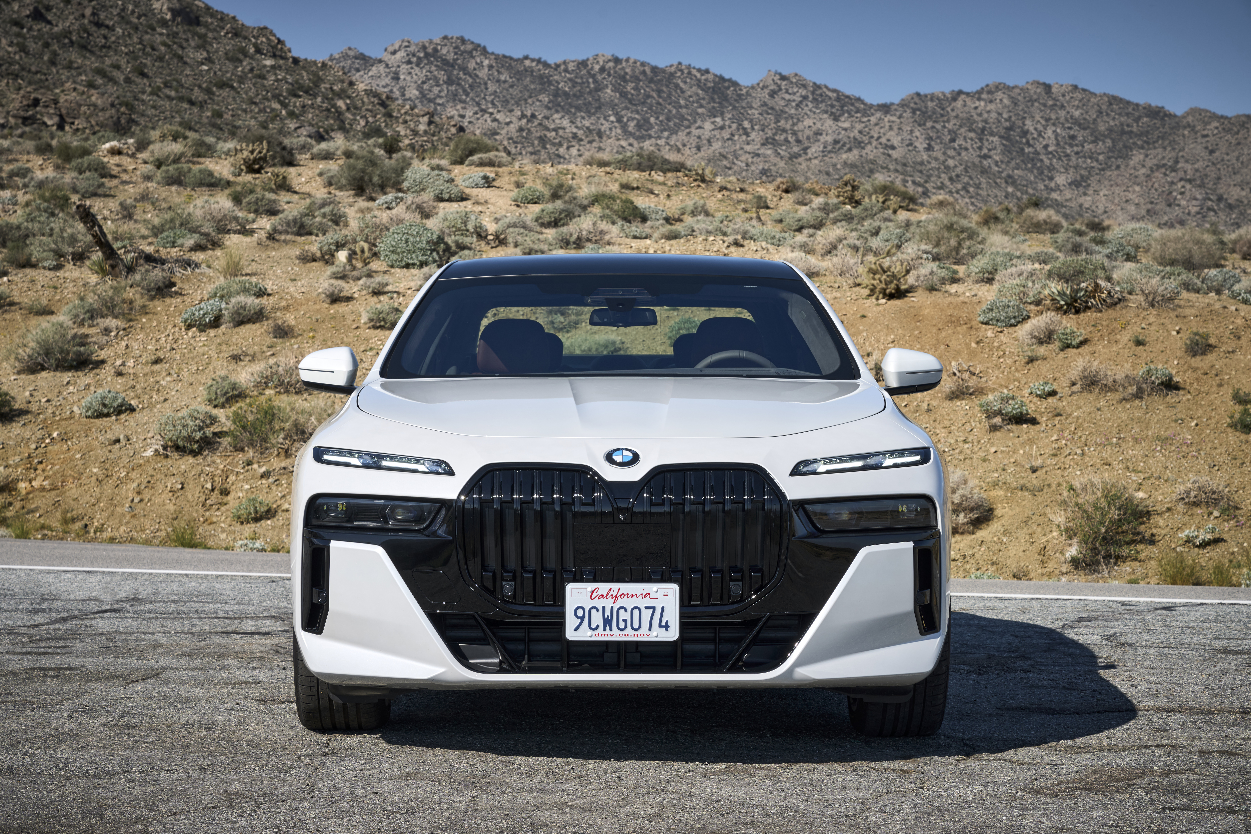 The new BMW 760i xDrive Mineral White Metallic On Location Palm Springs (10/2022).