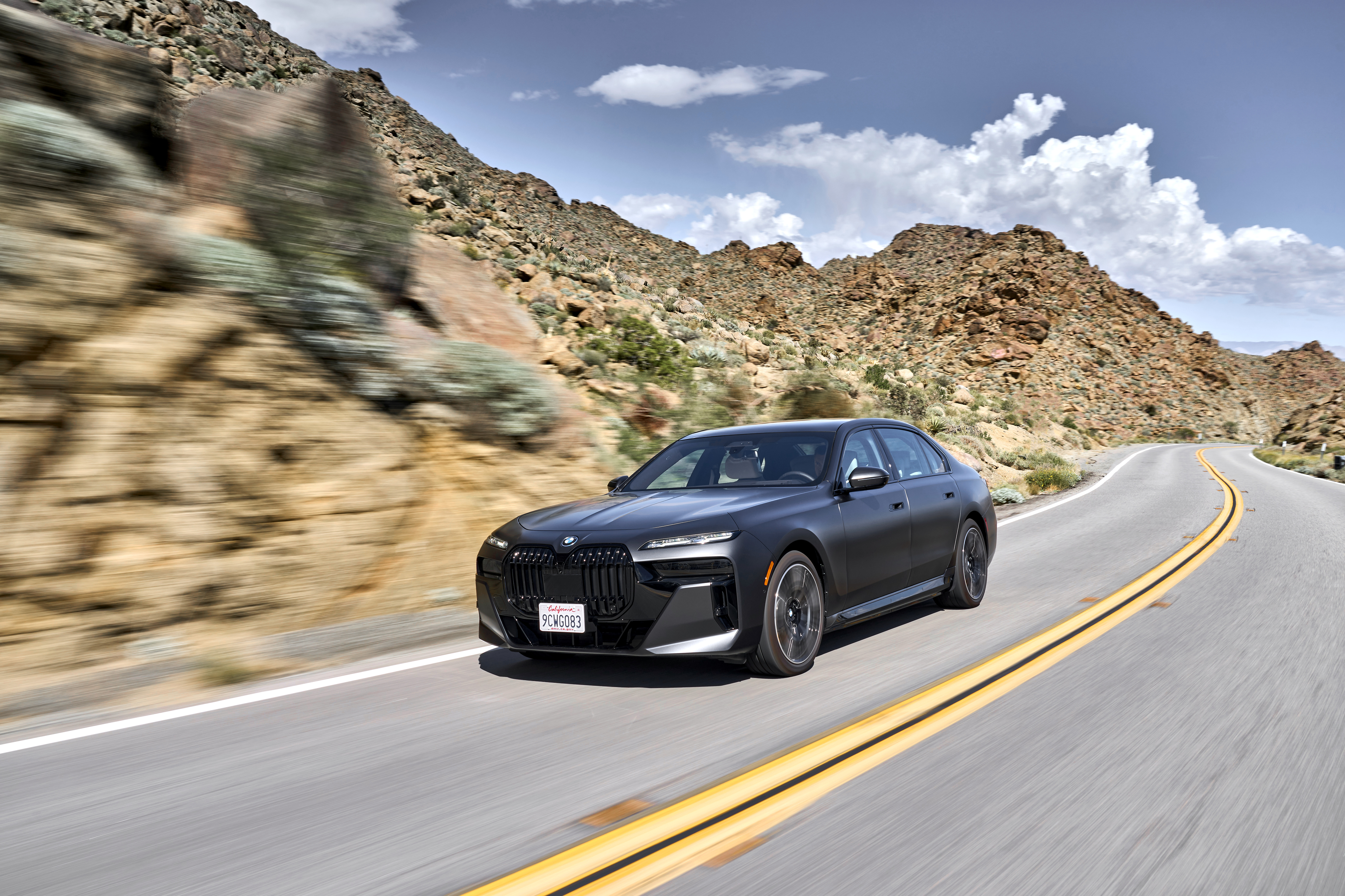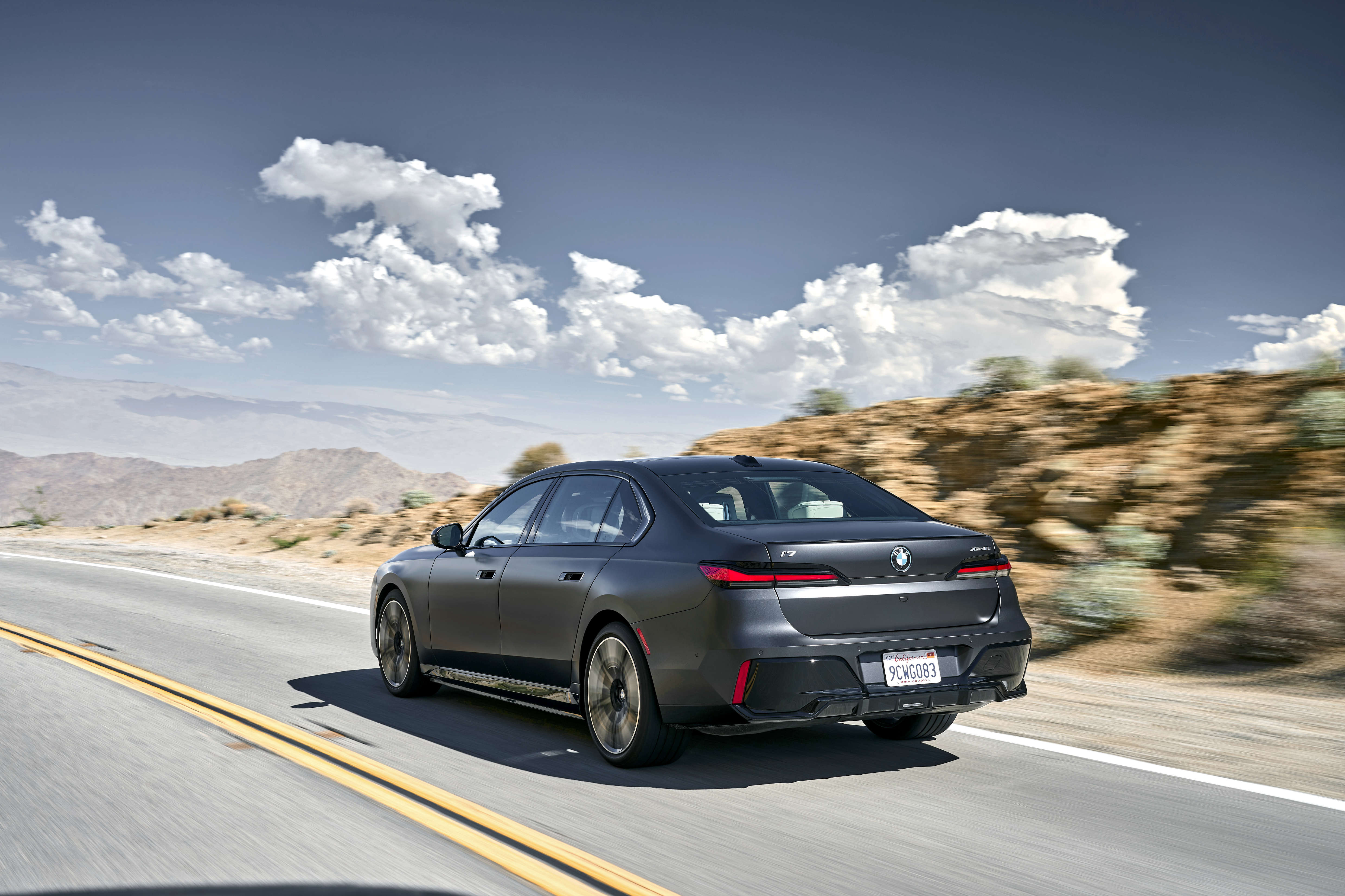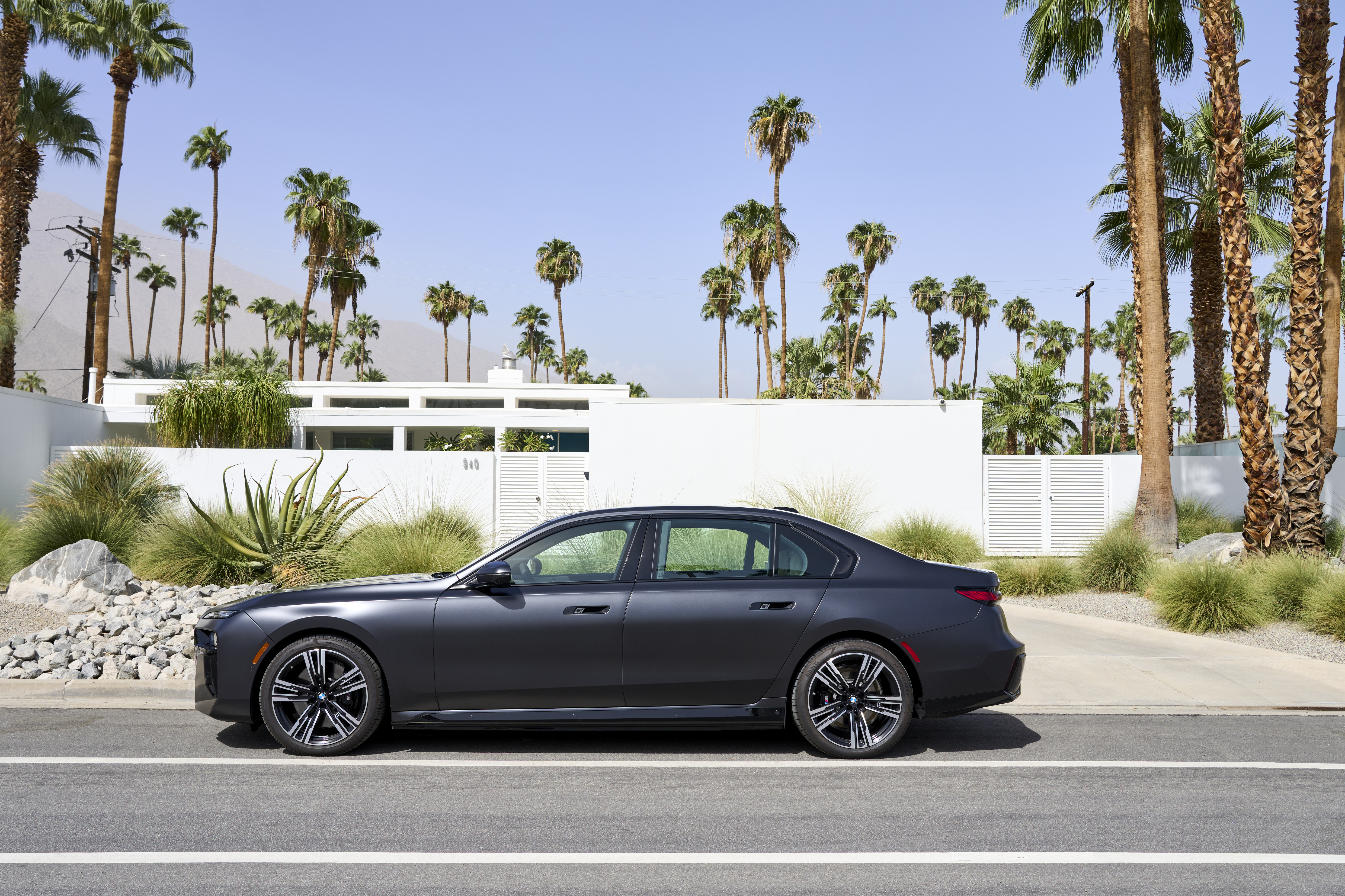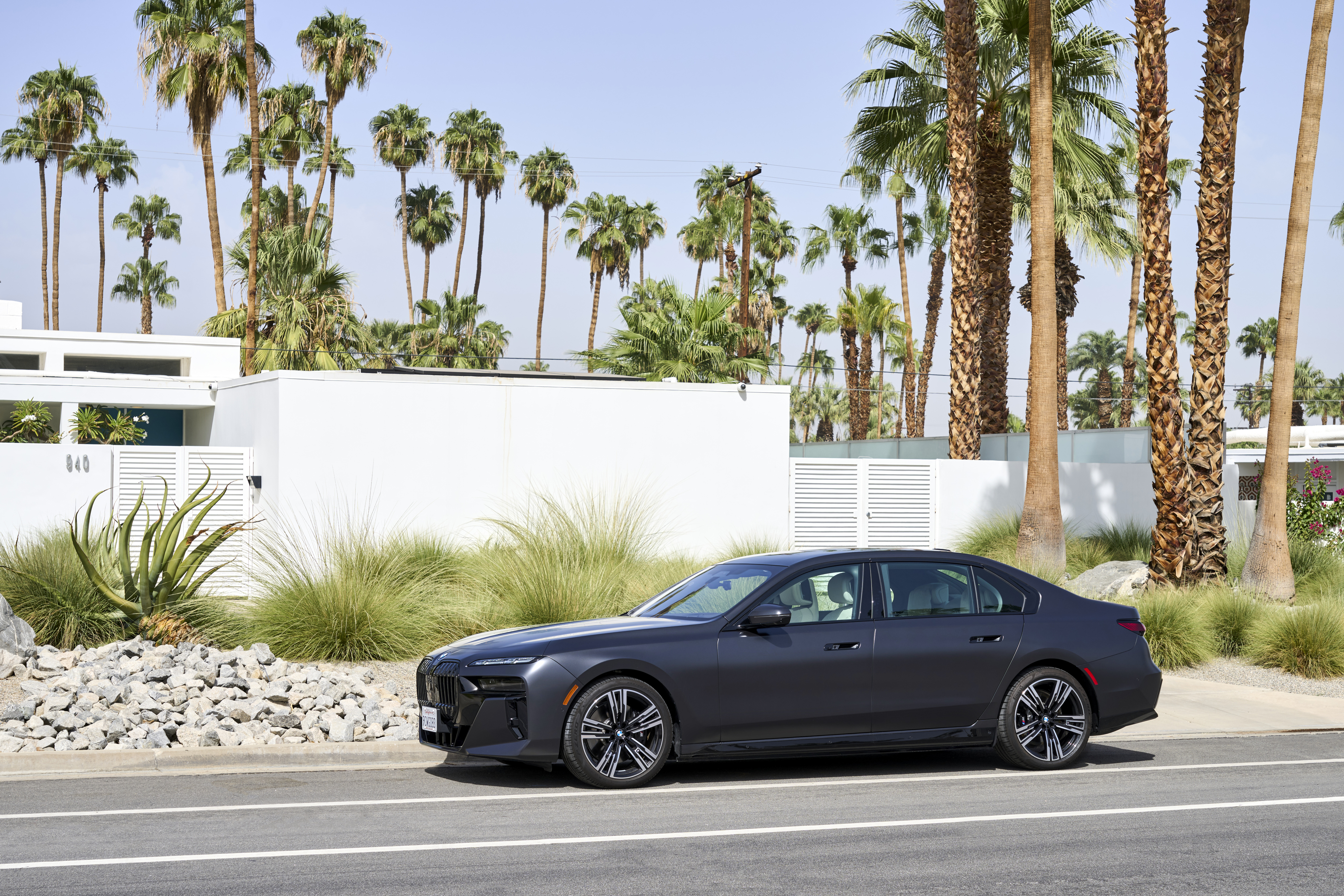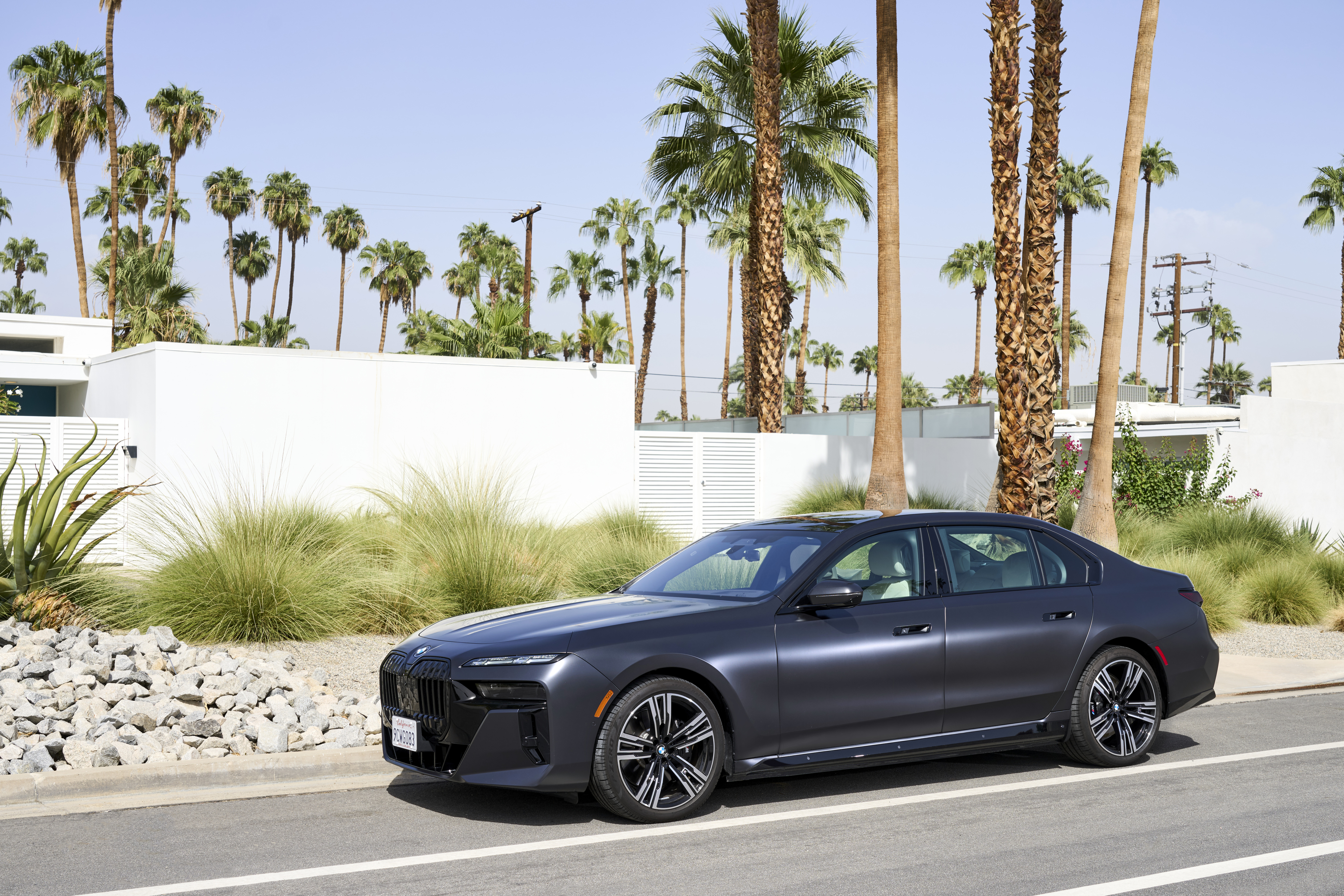 The new BMW i7 xDrive60 Frozen Deep Grey On Location Palm Springs (10/2022).