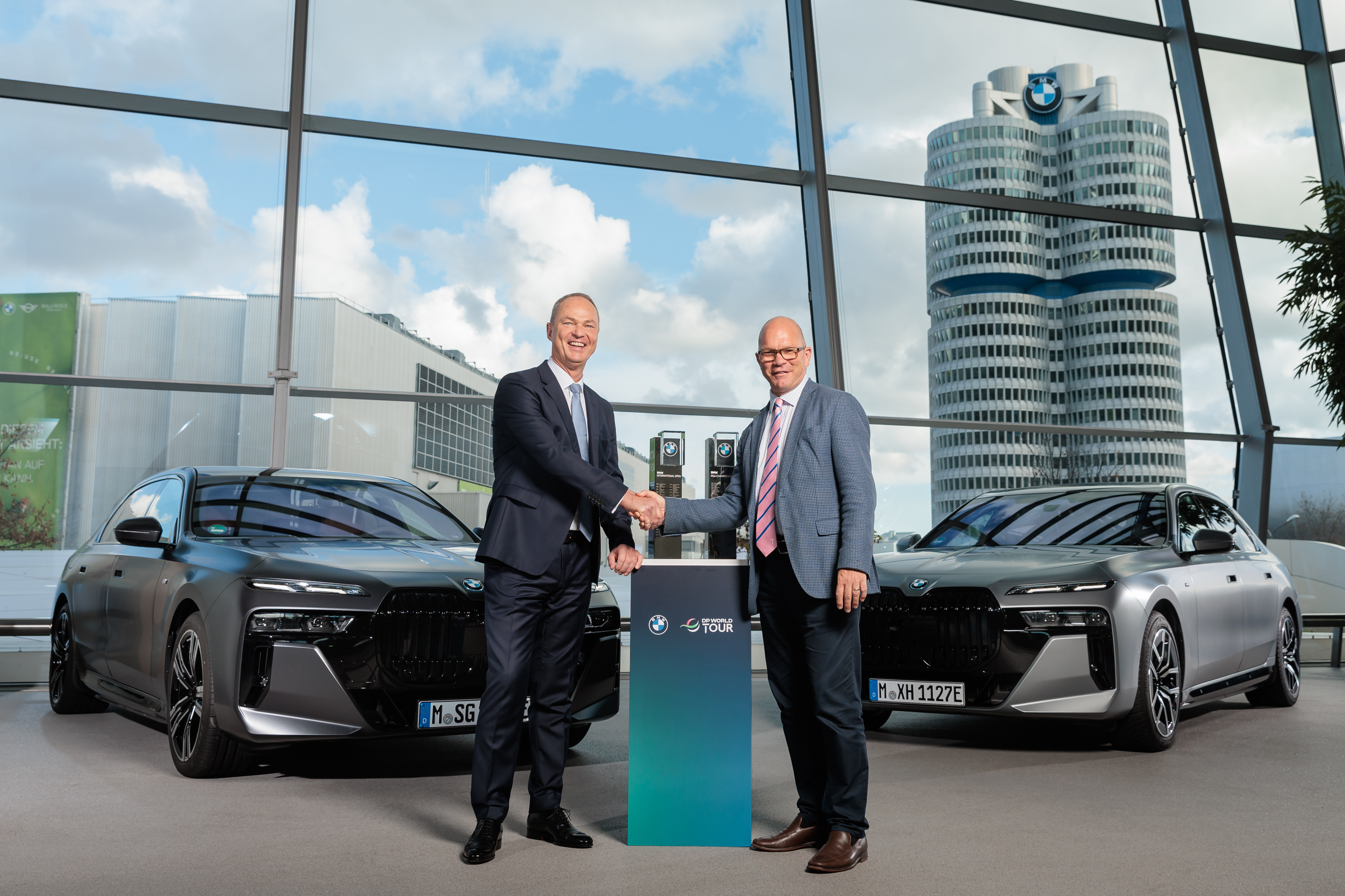 BMW Group and DP World Tour extend partnership. Bernhard Kuhnt (Head of BMW Group Europe), Guy Kinnings (Deputy Chief Executive and Chief Commercial Officer of the European Tour group)