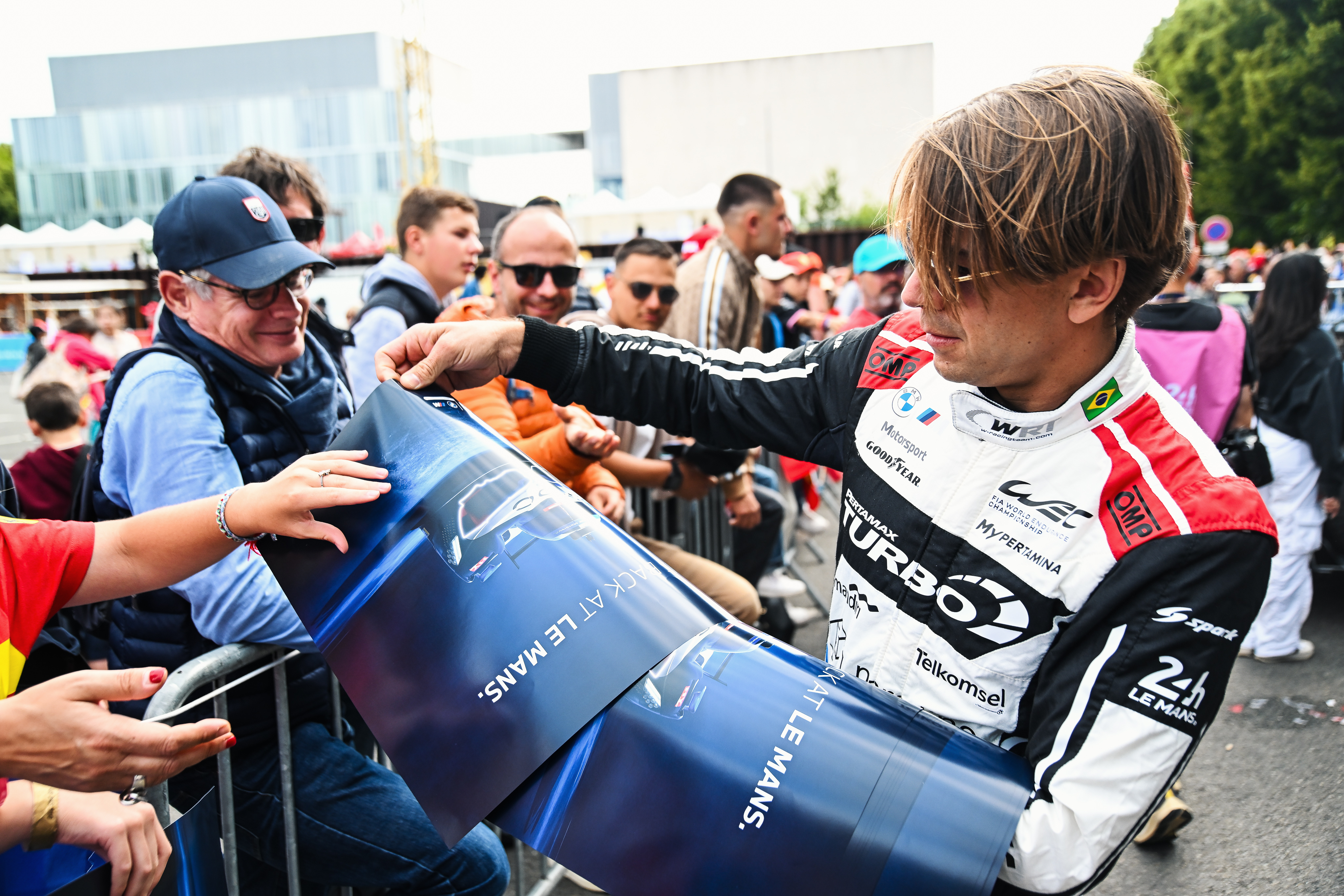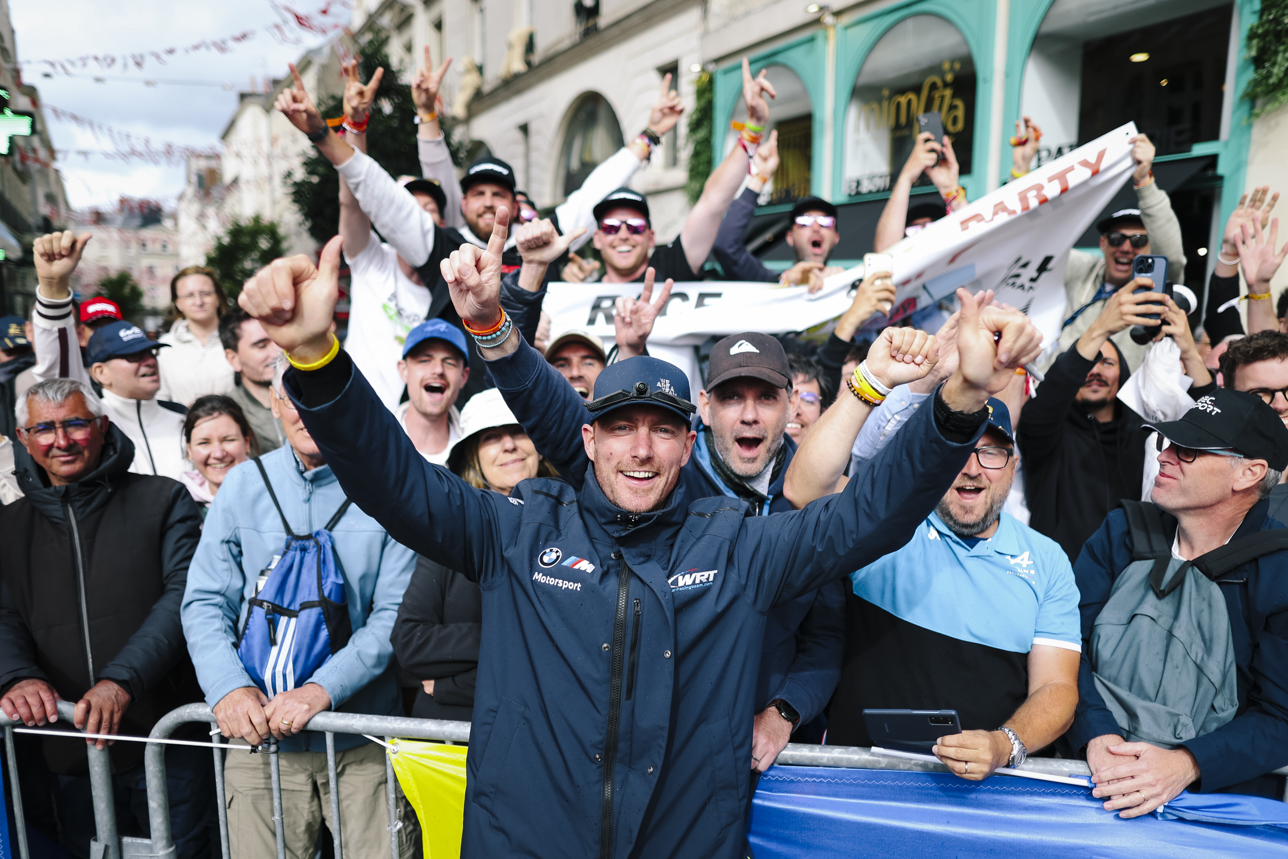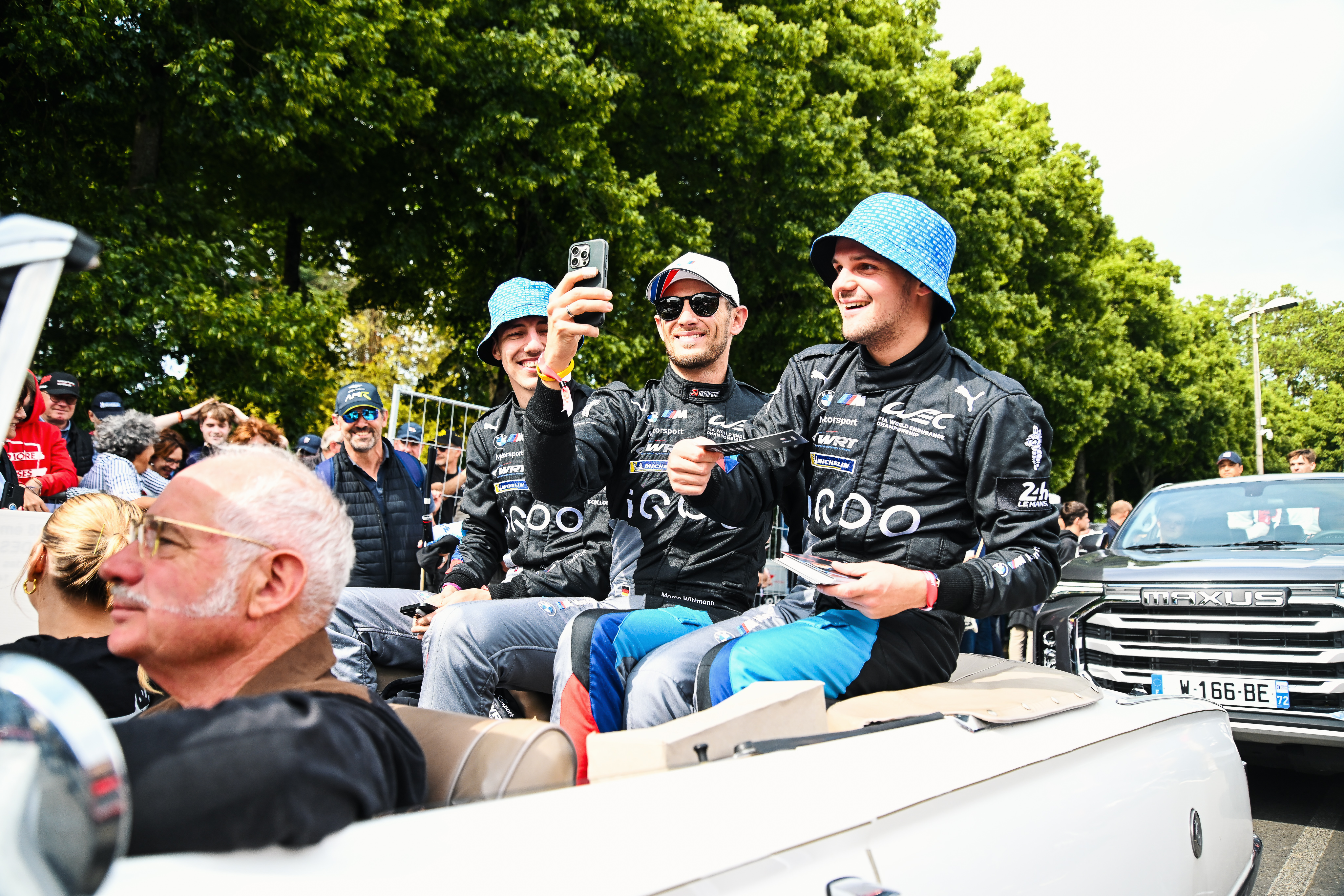 Le Mans (FRA), 7-16 June 2024. FIA World Endurance Championship, 24h Le Mans, BMW M Team WRT, Hypercar, LMDh, hybrid, #15 BMW M Hybrid V8, Raffaele Marciello, Dries Vanthoor, Marco Wittmann, Drivers Parade.