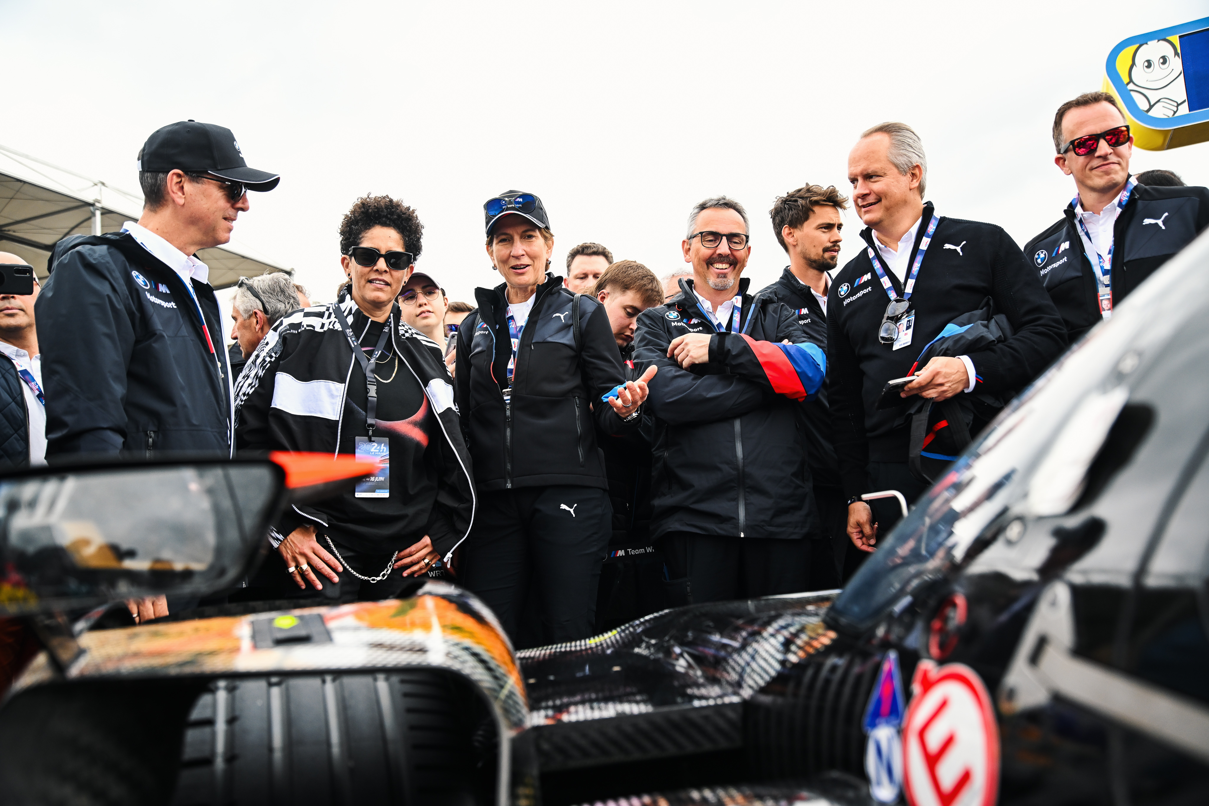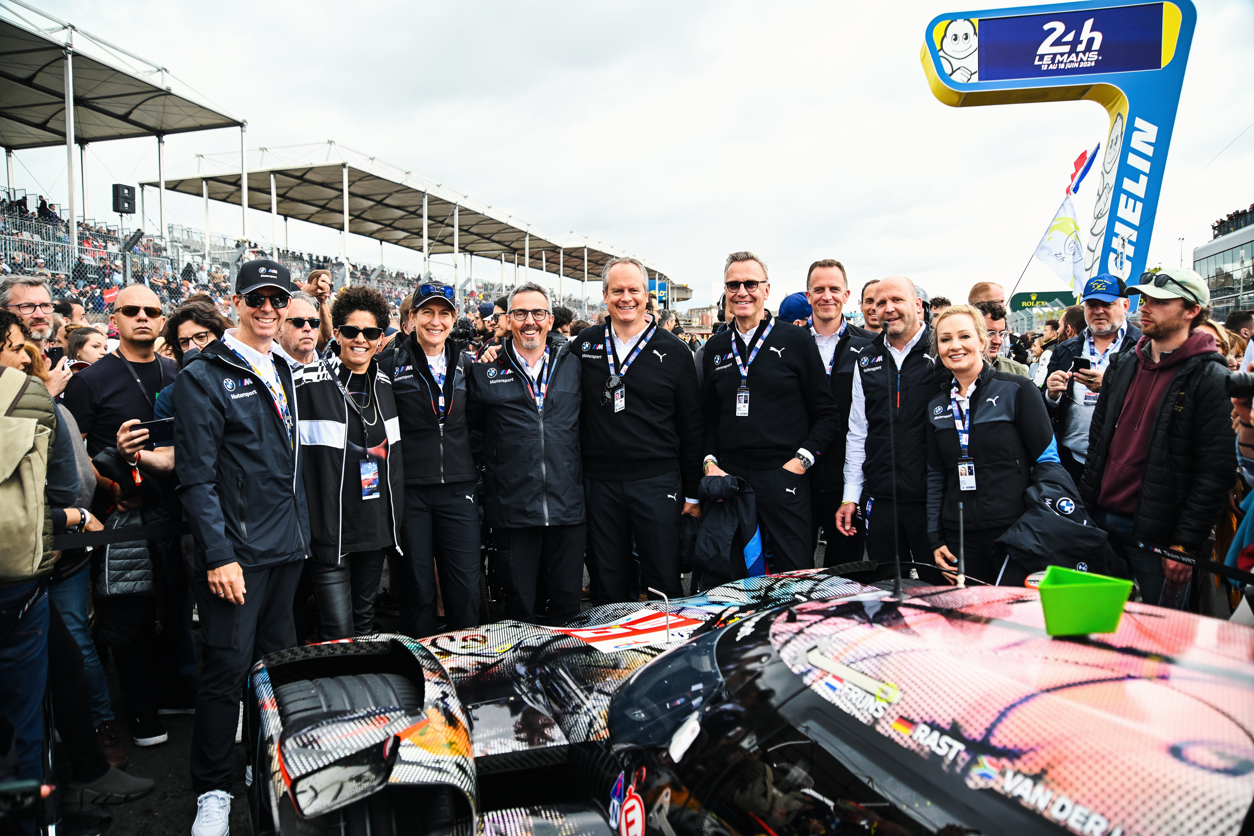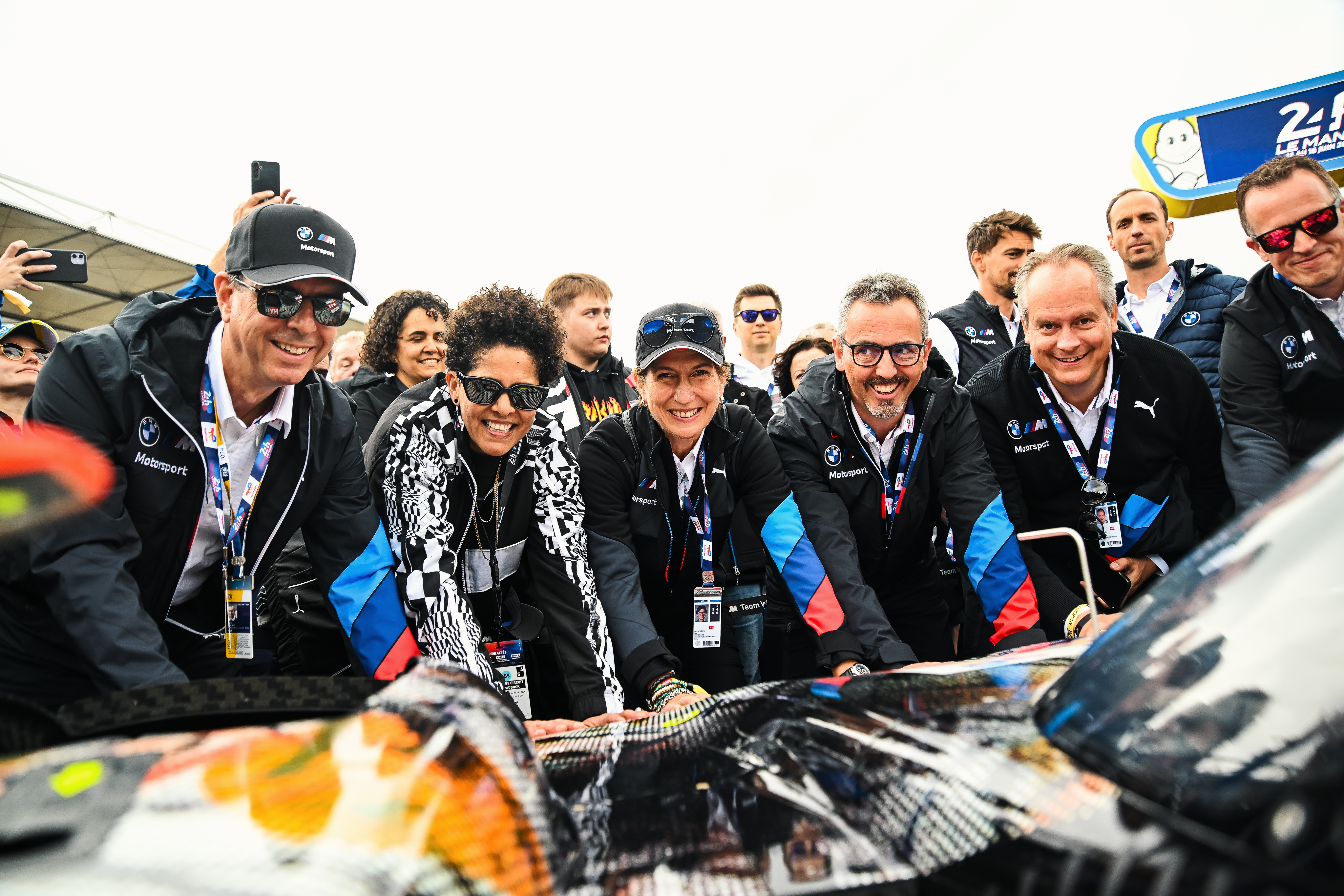Le Mans (FRA), 14 June 2024. BMW M Team WRT, BMW M Motorsport, BMW M Hybrid V8, Art Car, BMW M4 GT3, Ilka Horstmeier, Member of the Board of Management of BMW AG, Human Resources and Real Estate, Joachim Post, Member of the Board of Management, Purchasing and Supplier Network at BMW AG, Maximilian Schöberl, Head of BMW Group Corporate and Governmental Affairs and Executive Vice President, Julie Mehretu, artist, Franciscus van Meel, CEO of BMW M GmbH, Andreas Roos, Head of BMW M Motorsport.