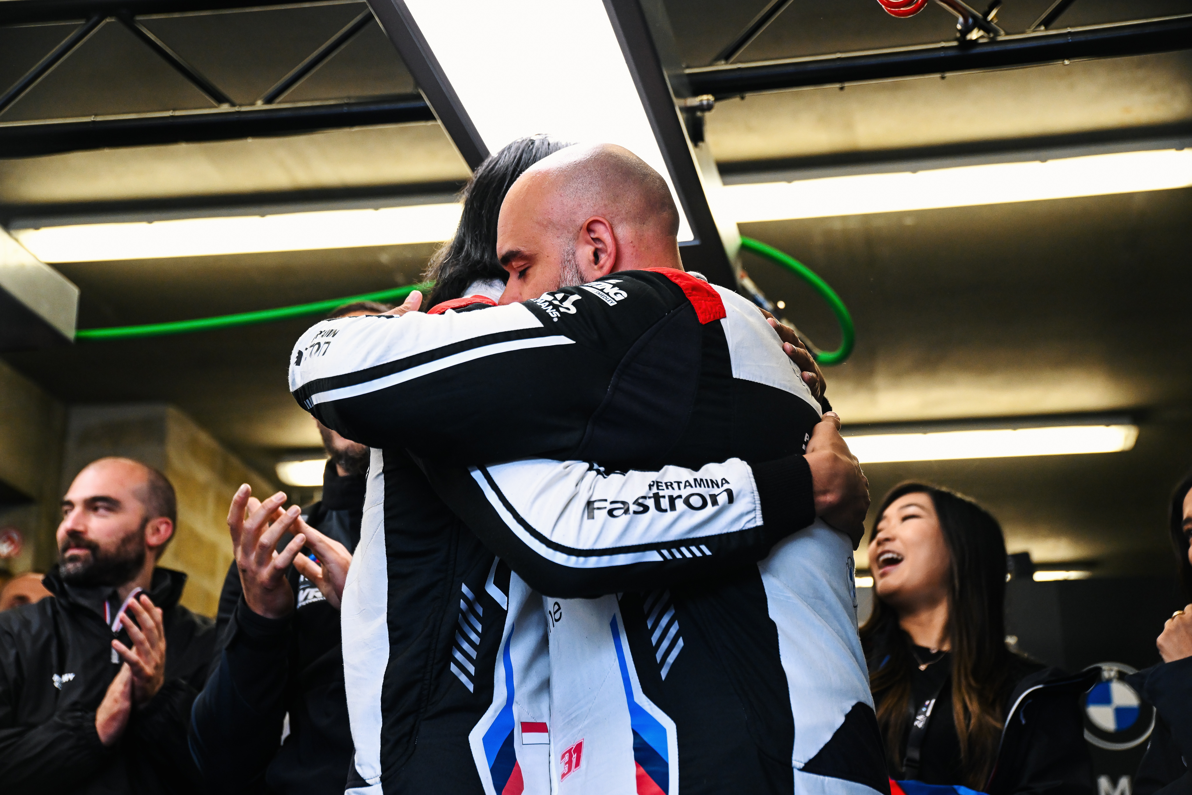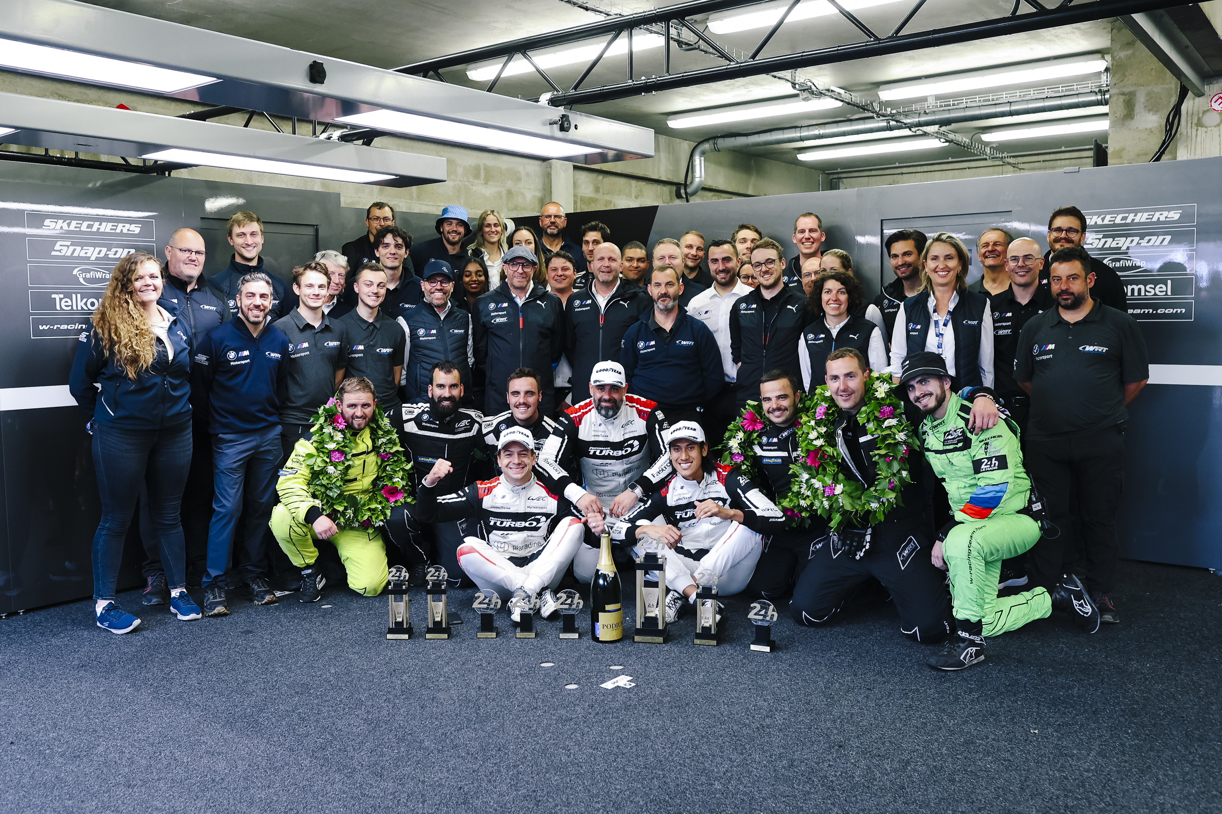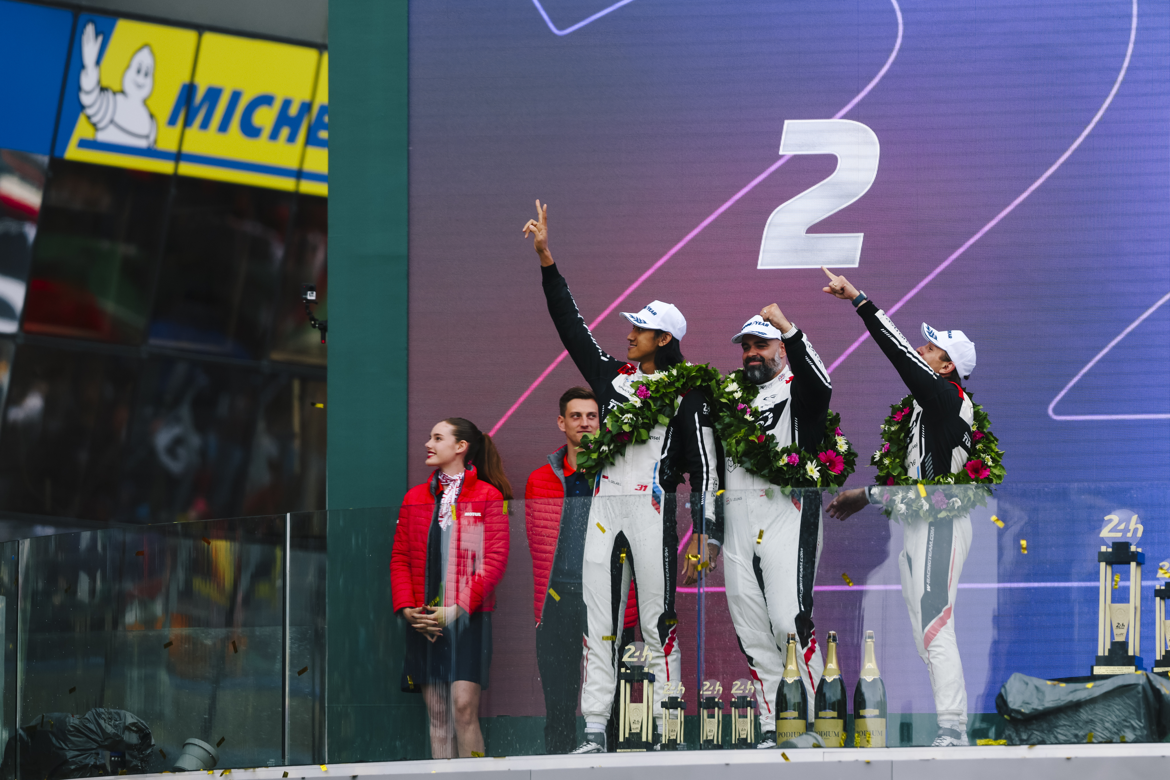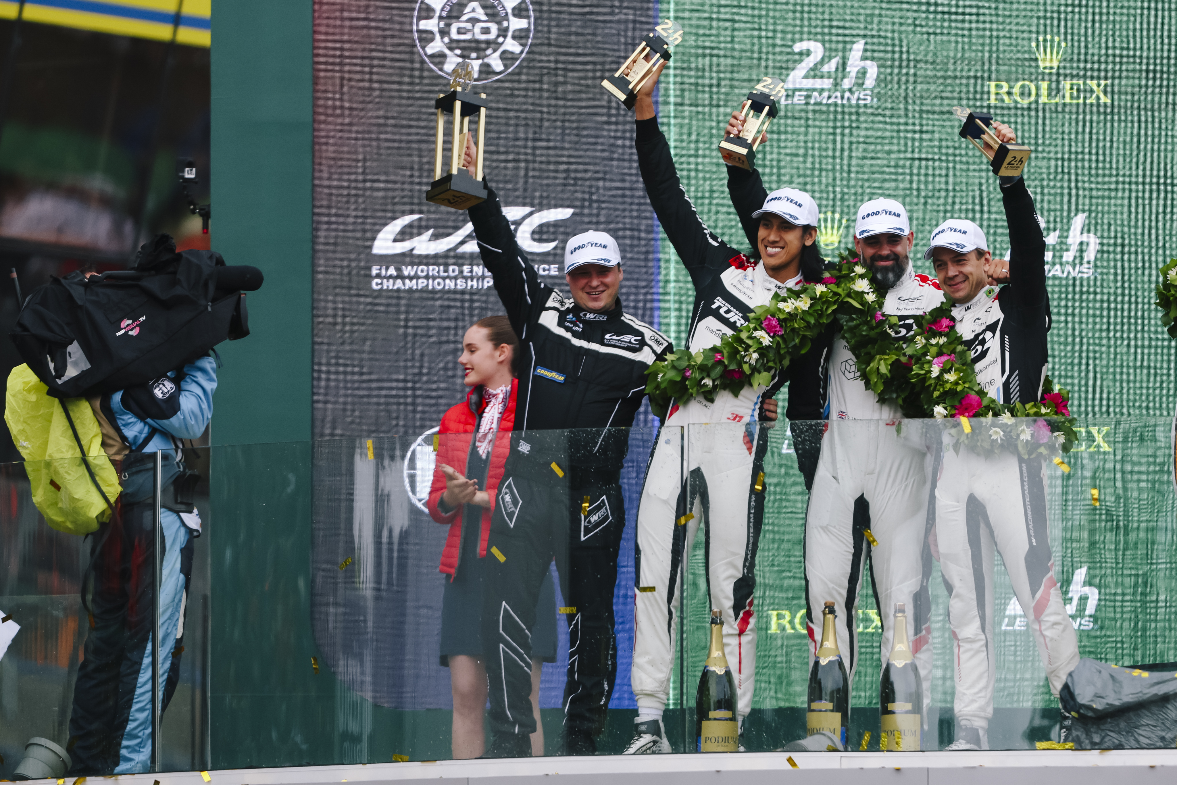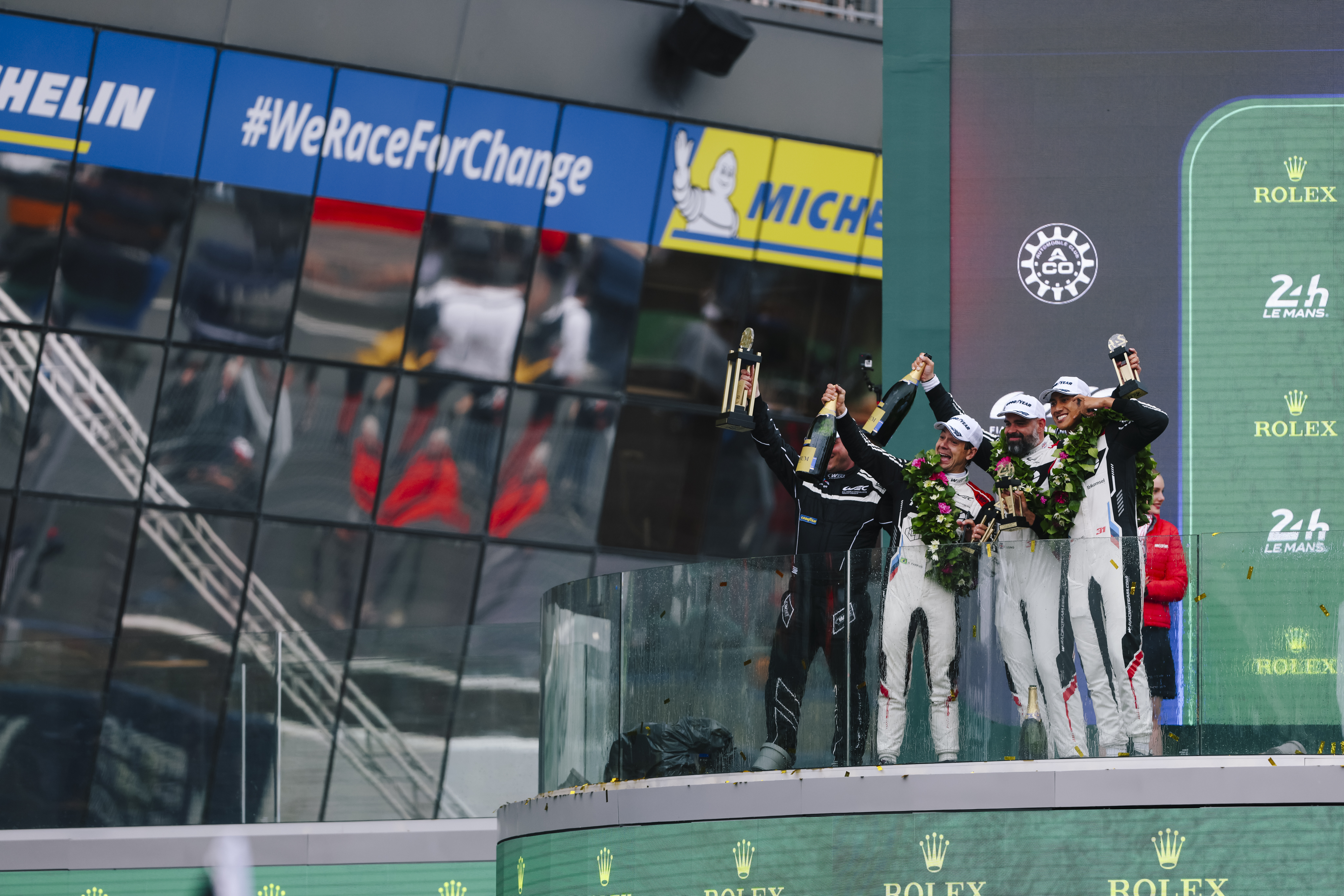 Le Mans (FRA), 7-16 June 2024. FIA World Endurance Championship, 24h Le Mans, Team WRT, LMGT3, #31 BMW M4 GT3, Augusto Farfus, Sean Gelael, Darren Leung, podium.