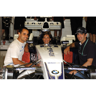 Juan Pablo Montoya BMW WilliamsF1 Team driver 2003 Marc Gene BMW WilliamsF1 Team test driver 2003 and Arancxa Sanchez Vicario