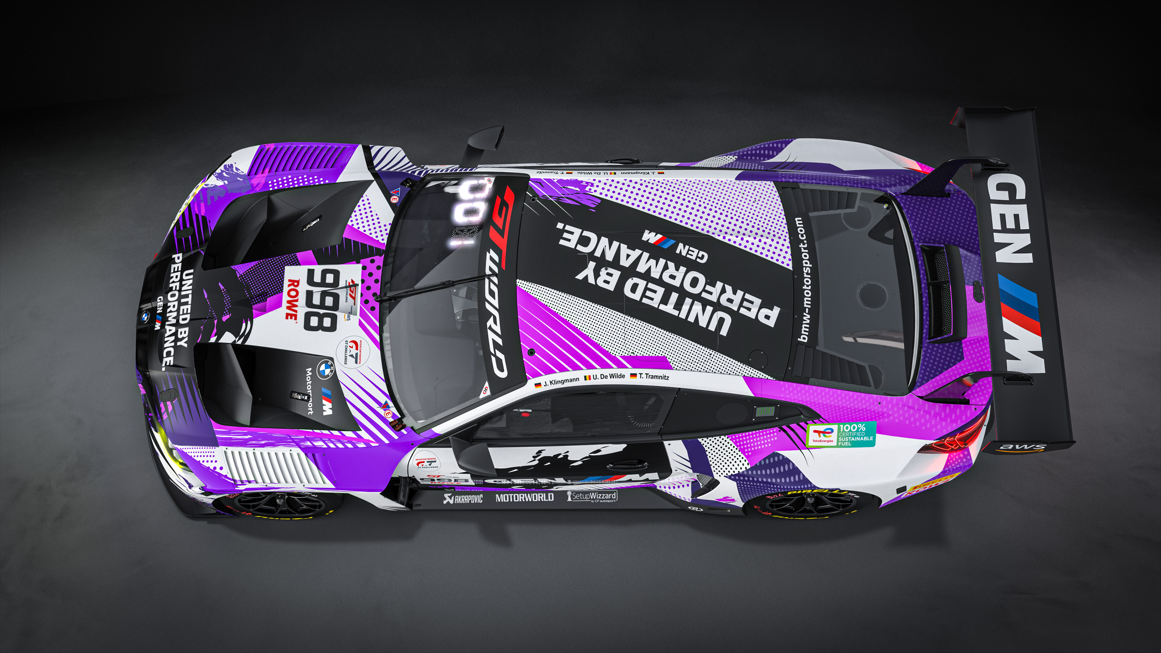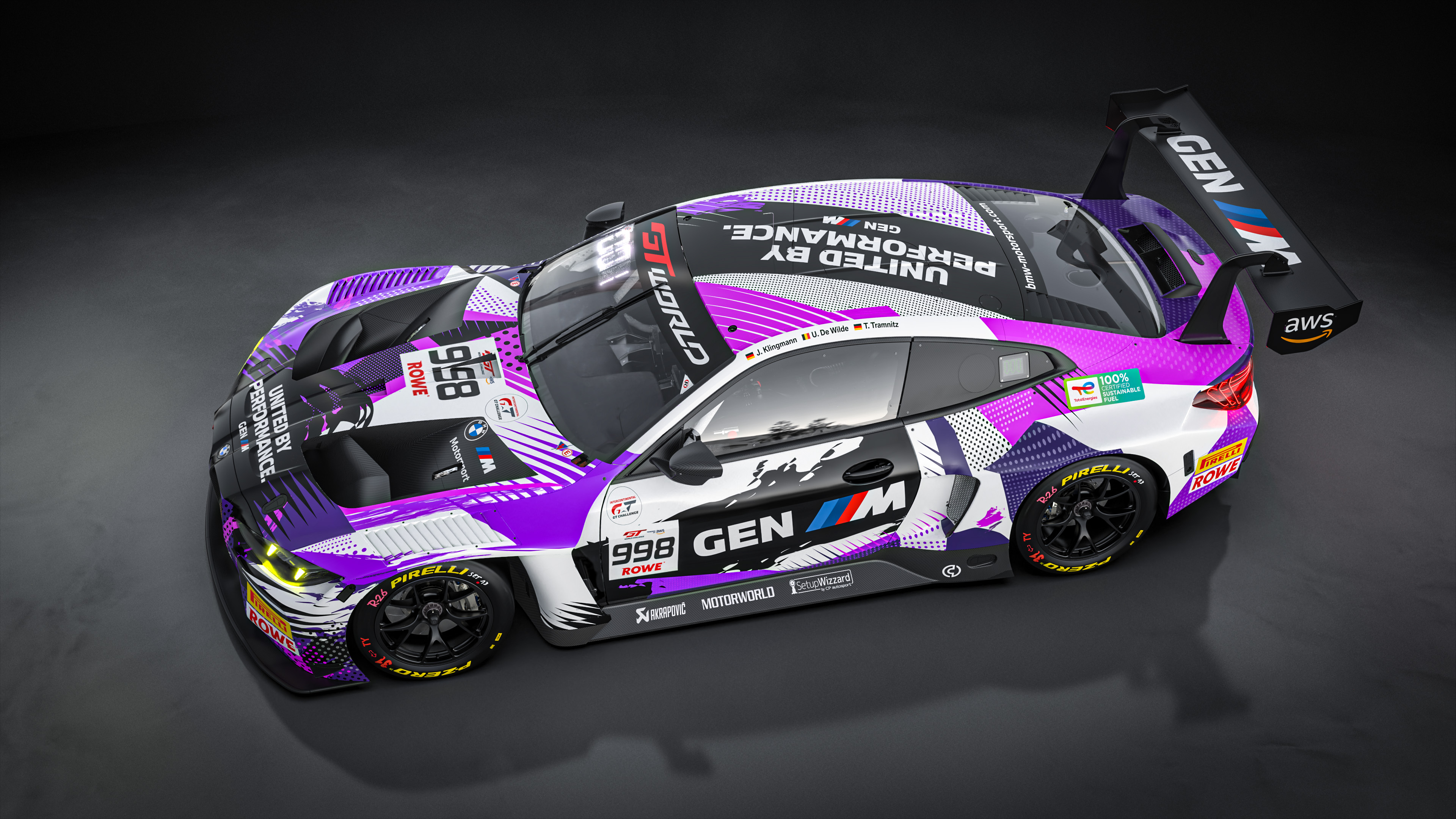 Munich (GER), 2 April 2026. #998 BMW M4 GT3 EVO, GEN M, United by Performance, ROWE Racing, GT World Challenge Europe powered by AWS, Jens Klingmann, Ugo de Wilde, Tim Tramnitz, livery, design.
