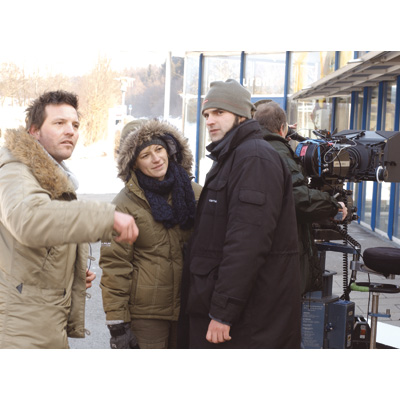 BMW Short Film Award 2006 "Fahrgemeinschaft: Assistant Director Sebastian Sorger with the winners and directors Laura Lackmann Popescu-Zeletin and ...