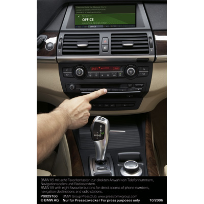 BMW X5 with eight favourite buttons for direct access of phone numbers, navigation destinations and radio stations (10/2006)