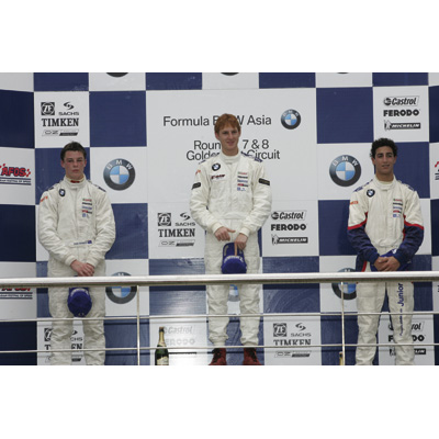 Formula BMW Asia, Round 7, Bejing (CHN), Goldenport Circuit, 10th June 2006, Podium, Sam Abay, AUS, Team E-Rain, Dominic Storey, NZL, Eurasia Motorsport, Daniel Ricciardo, AUS, Eurasia Motorsport (08/2006)