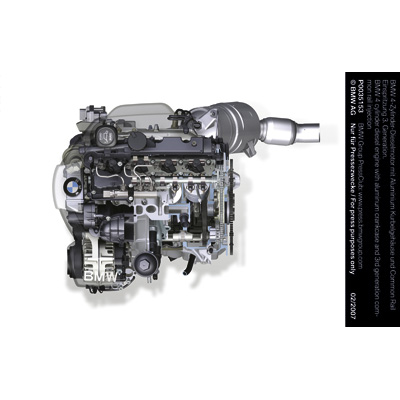 BMW 4 cylinder diesel engine with aluminum crankcase and 3rd generation common rail injection (02/2007)