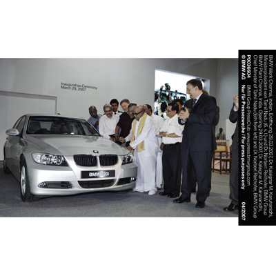 BMW Plant Chennai, India. Opening 20.03.2007, Dr. Kalaignar M. Karunanidhi, Chief Minister of Tamil Nadu (6th from left) and Dr. Norbert Reithofer, Chairman of the Board of Management of BMW AG (right) (04/2007)