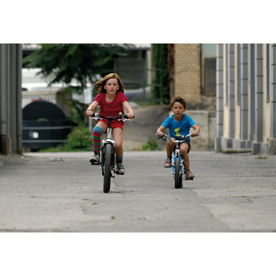 Scene from the feature film "Lilli the Witch": The main character Lilli (Alina Freund) on a BMW Cruise Bike Junior with her younger brother Leon (Sami Herzog) on a BMW Kidsbike (08/2007)