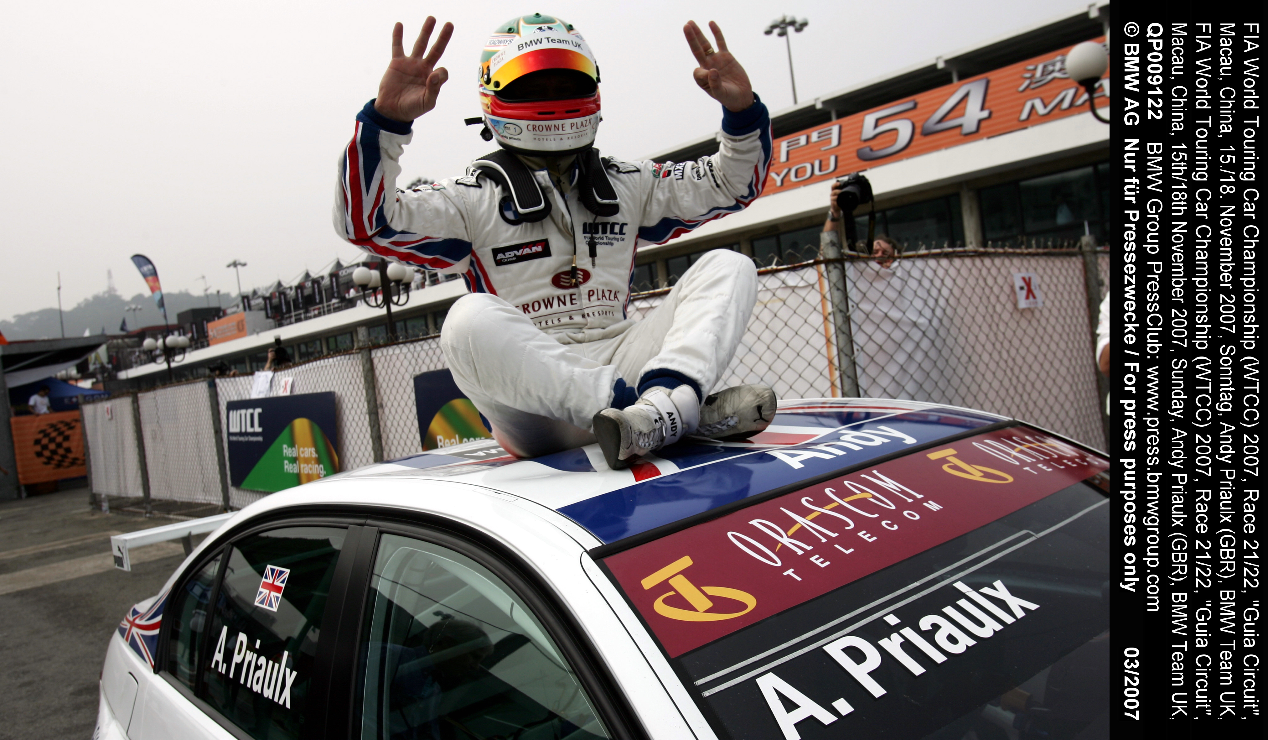 FIA World Touring Car Championship (WTCC) 2007, Race 21/22, "Guia Circuit", Macau, China, 15th/18th November 2007, Sunday, Andy Priaulx (GBR), BMW Team UK, BMW 320si WTCC celebrates his world champion