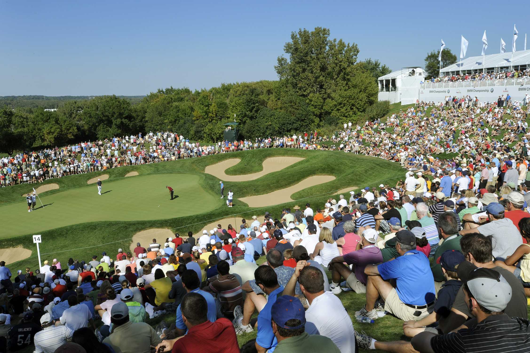 LEMONT, IL - SEPTEMBER 13: Tiger Woods hits his putt at the 14th green during the final round of the BMW Championship held at Cog Hill Golf & Country ...