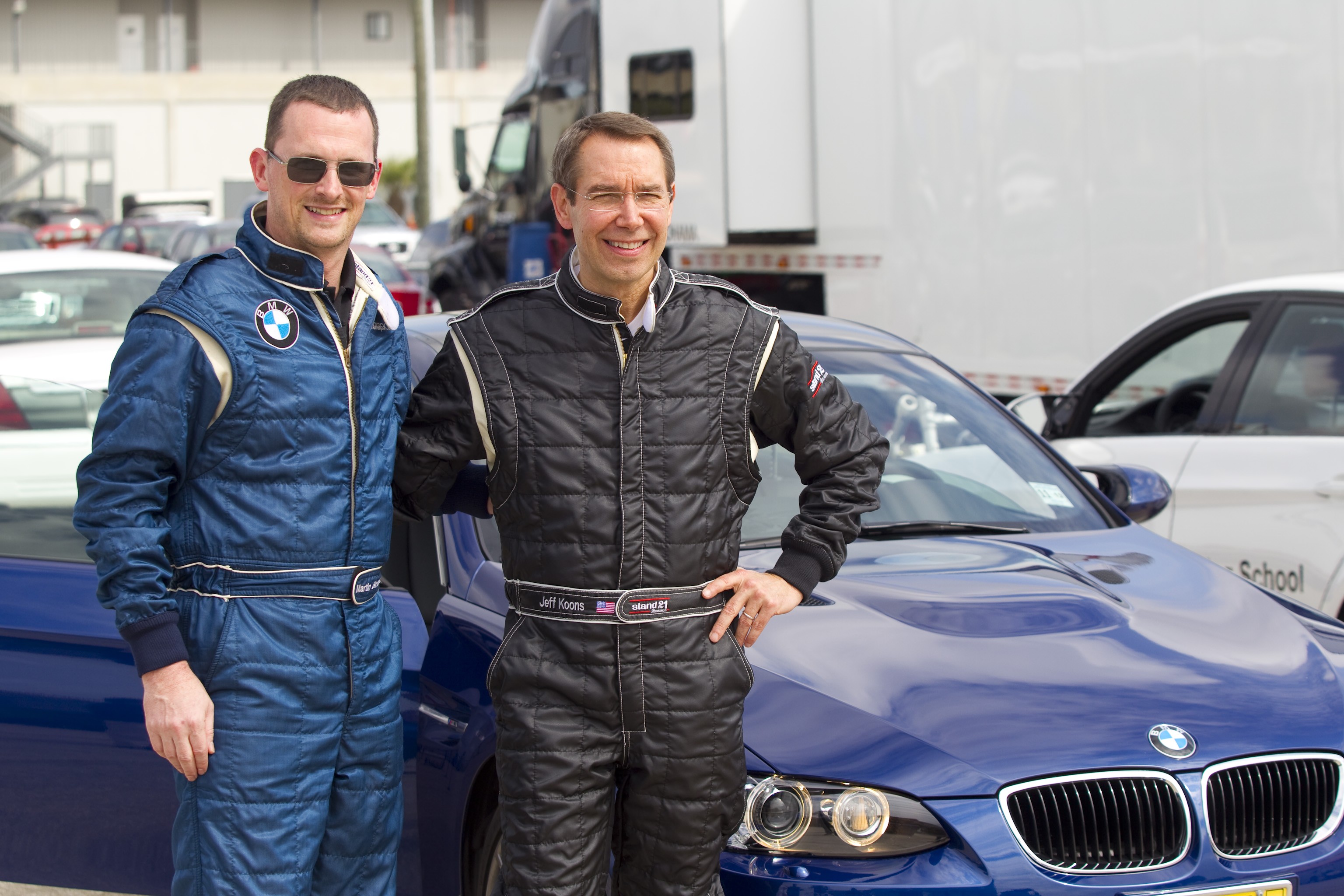 Jeff Koons und der Motorsport Manager BMW of North America, Martin Birkmann in at Sebring International Raceway on February 23, 2010 (02/2010)