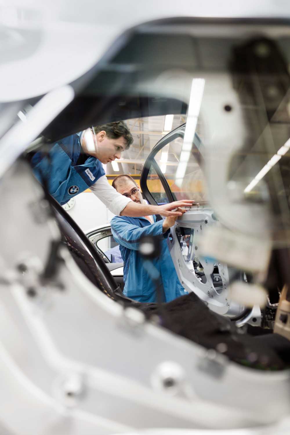 Employees running test cubing in pre-production for the new BMW 3 Series. (09/2012)