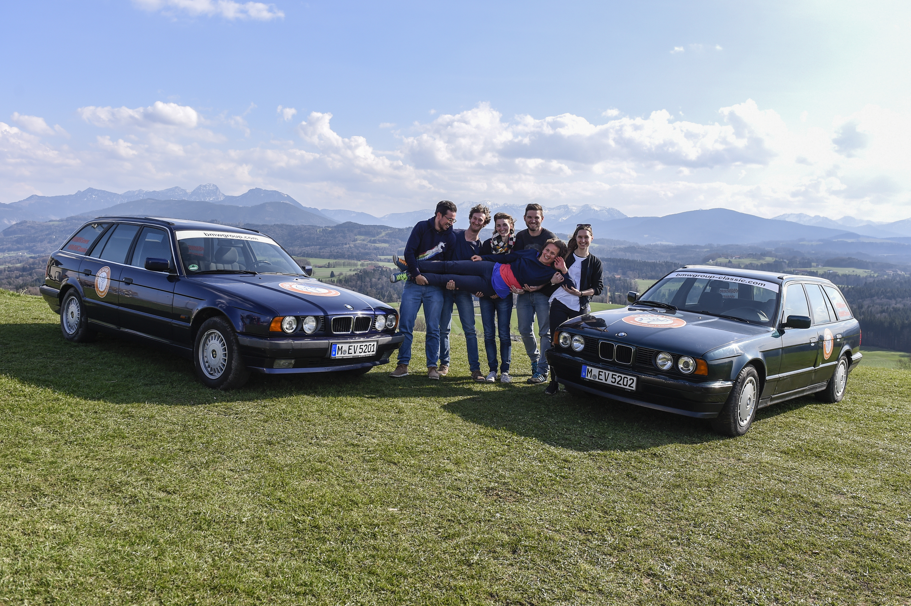 Team presentation of the "5ever" Team with the BMW 520i touring as a competitor in the Allgäu Orient Rally 2017 (04/2017).