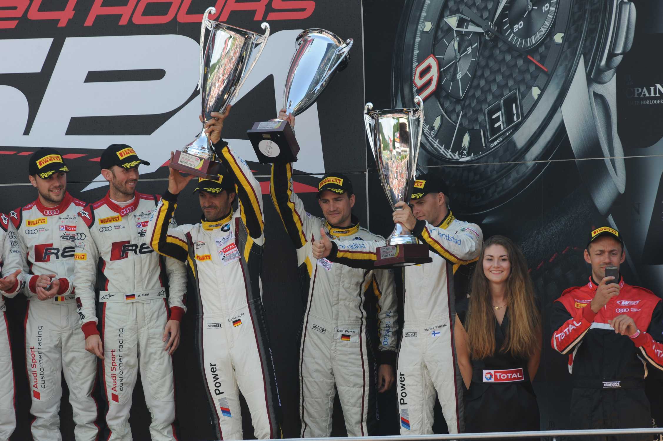 Spa-Francorchamps (BE), 27th July 2014, 24-hour race, BMW Sports Trophy Team Marc VDS, Lucas Luhr, Dirk Werner, Markus Palttala, podium. This image is copyright free for editorial use. © Copyright: BMW AG