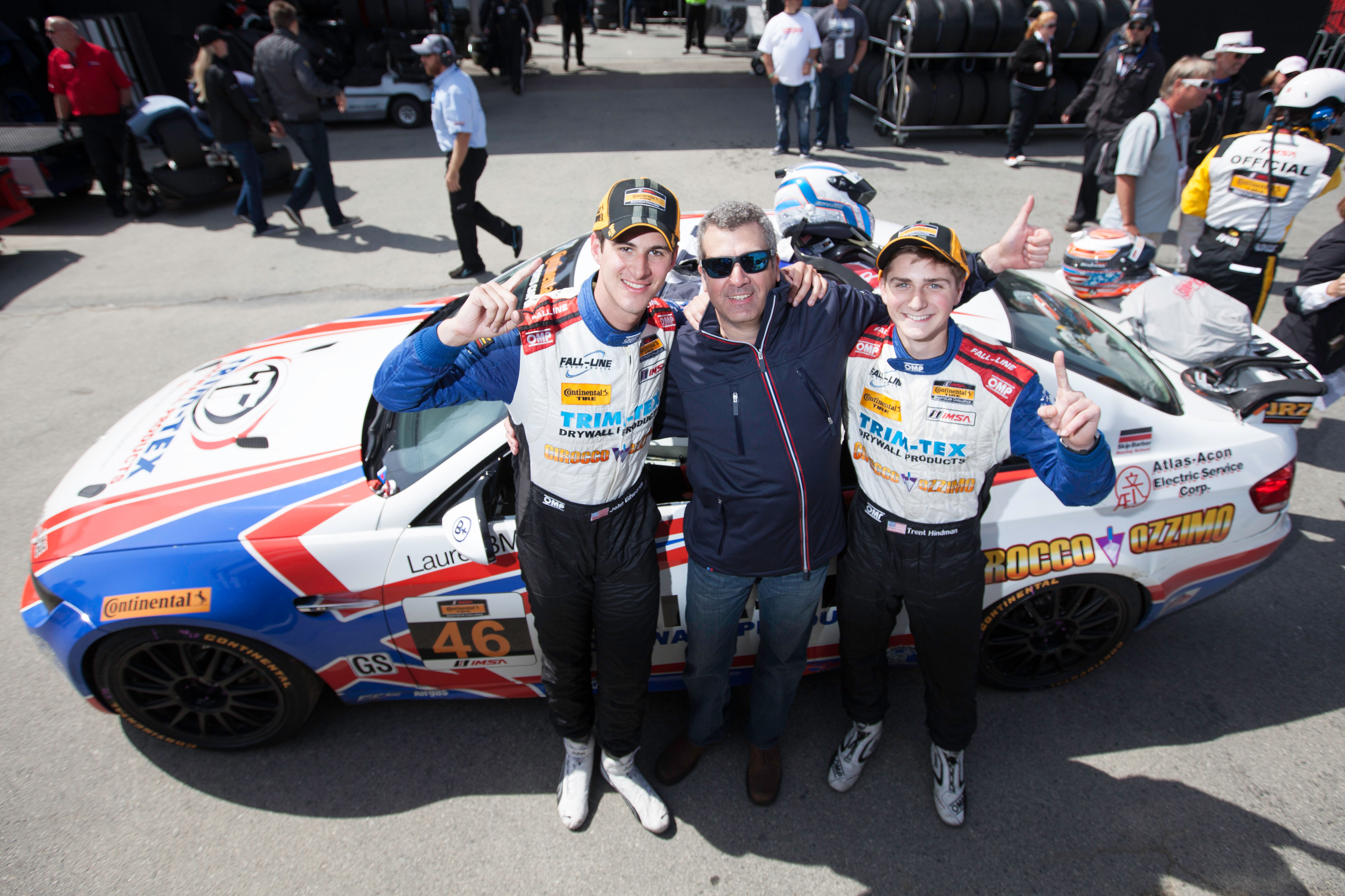 Fall-Line Motorsport - (L-R) John Edwards, Mark Boden (team principal), Trent Hindman after a win at Laguna Seca.