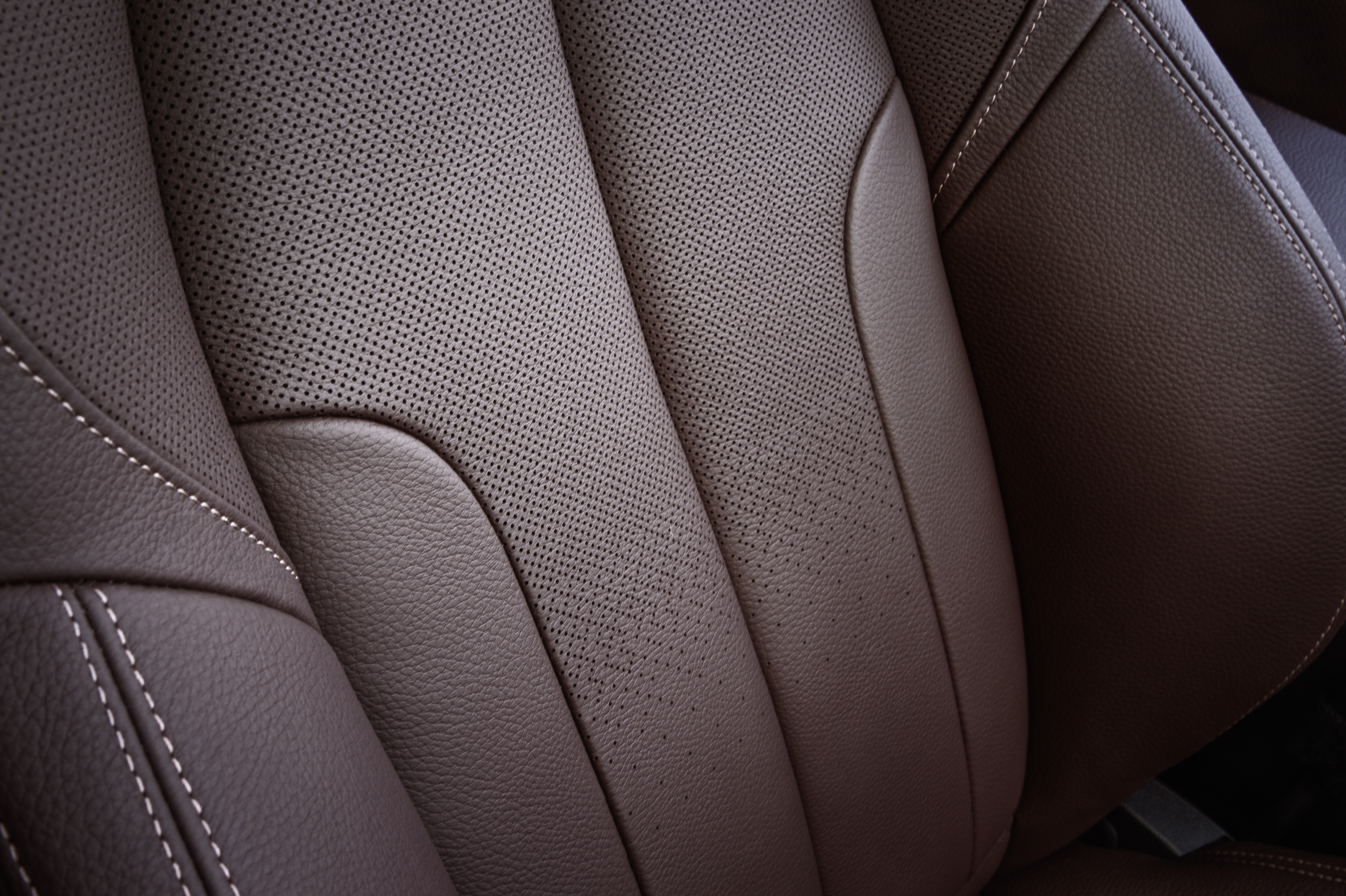 The new BMW X1. xLine - Mineral White metallic - Light-alloy wheels Y-spoke 511 - Interior, Dakota leather Mocca with perforation - Interior trim, Oak wood with Pearl-gloss Chrome accent line.