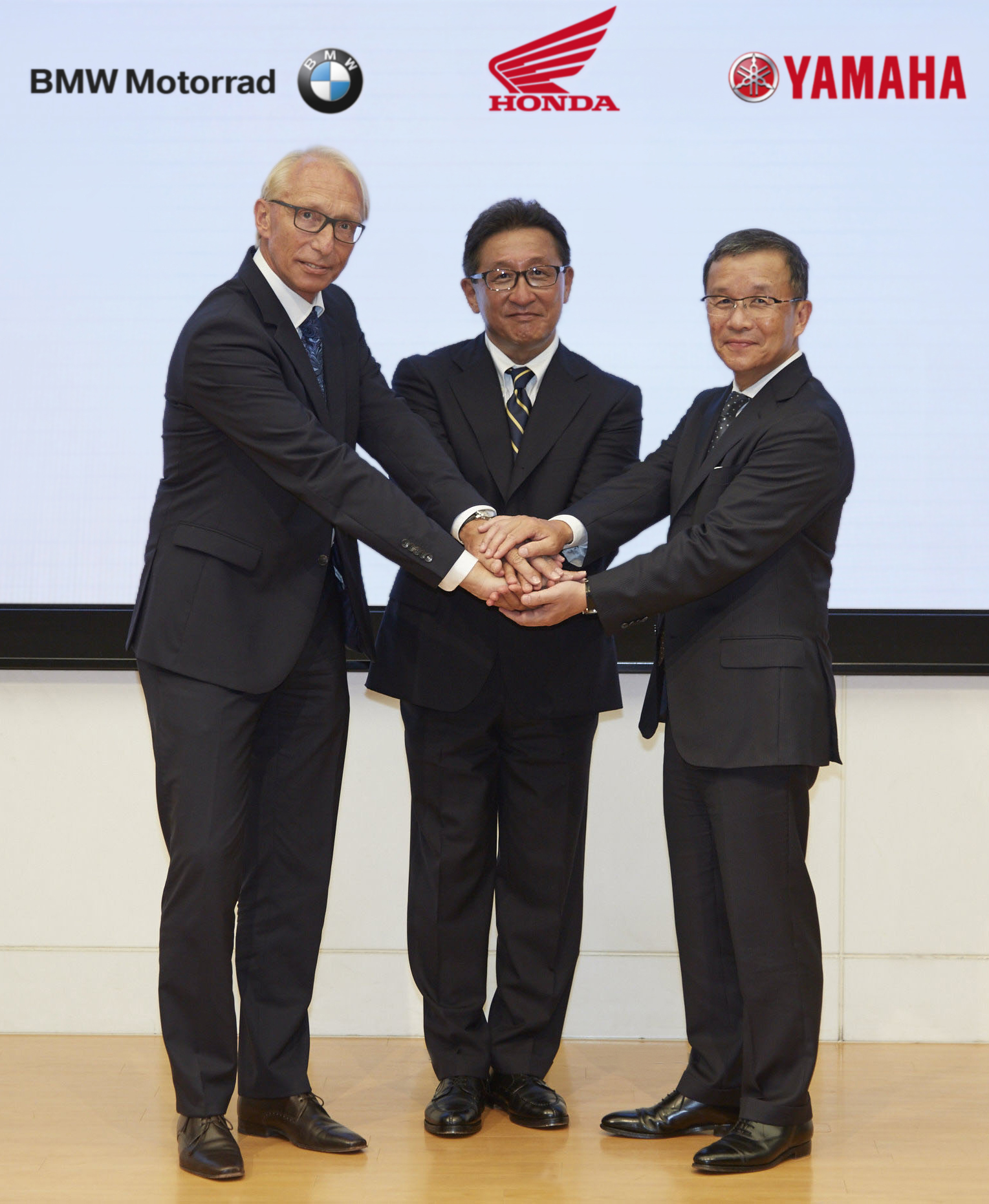 Karl Viktor Schaller (BMW Motorrad), Tetsuo Suzuki (Honda Motor Co. , Ltd.), Takaaki Kimura (Yamaha Motor Co. , Ltd.) (10/2015)