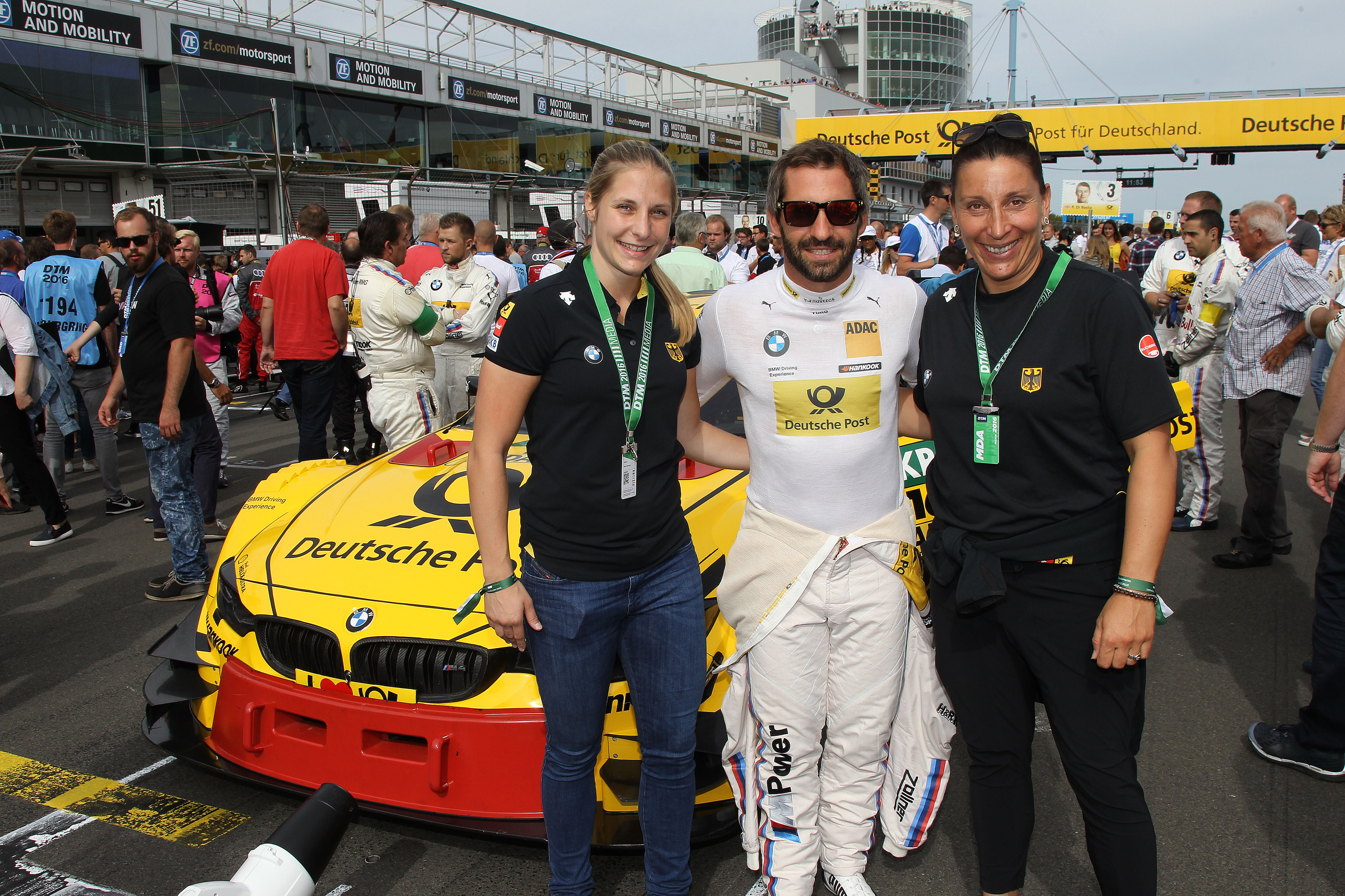 Nuerburgring (DE) 11th September 2016. BMW Motorsport, Race 14, Skeleton athlete Tina Herrmann (DE), Timo Glock (DE) BMW Works Driver and Bobsleigh athlete Anja Schneiderheinze (DE).