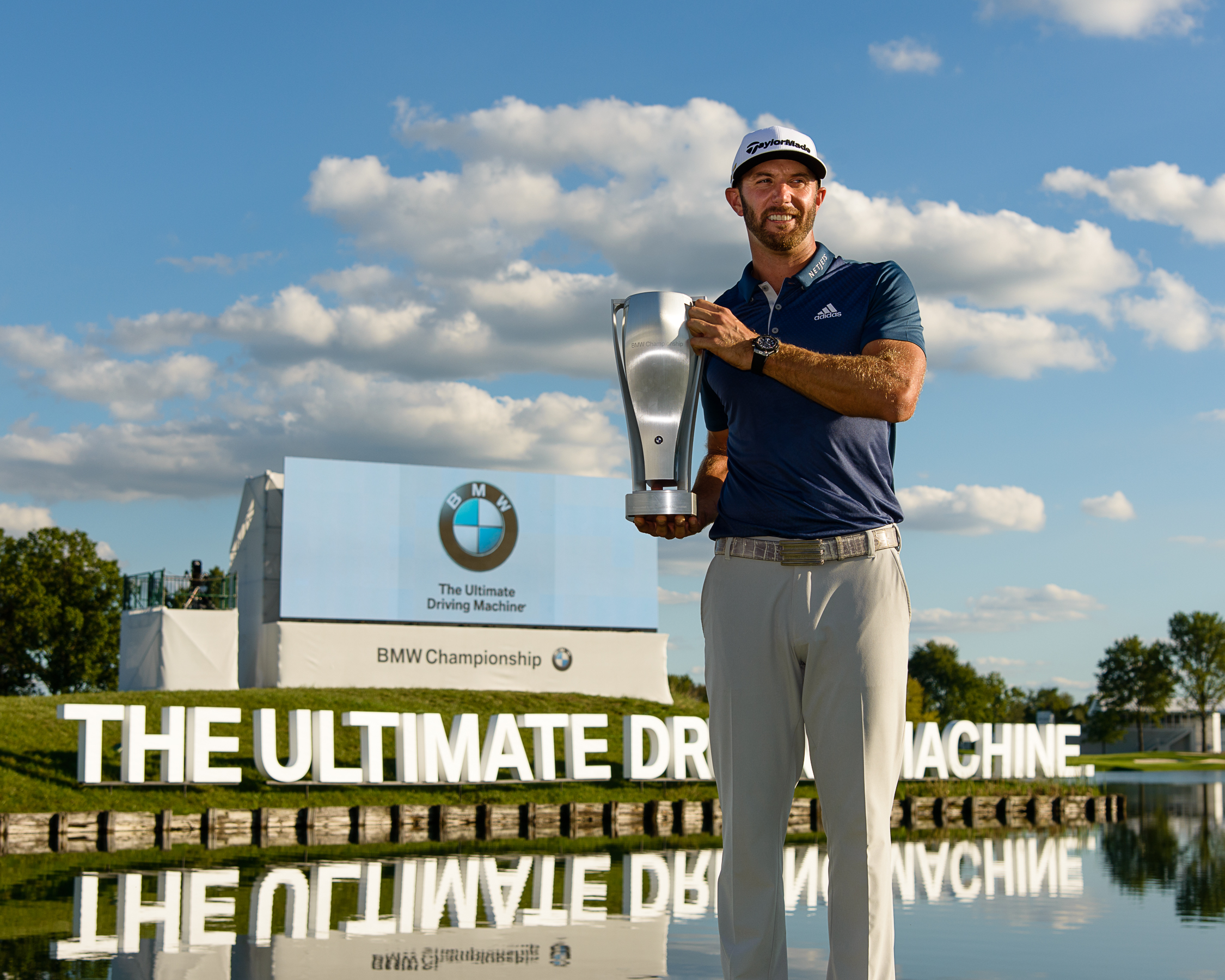 2016 BMW Championship winner Dustin Johnson with the BMW Championship trophy on Sunday, September 11, 2016 at Crooked Stick Golf Club in Carmel, IN. Johnson finished play 23-under-par, winning the BMW Championship for the second time since 2010. (09/2016)